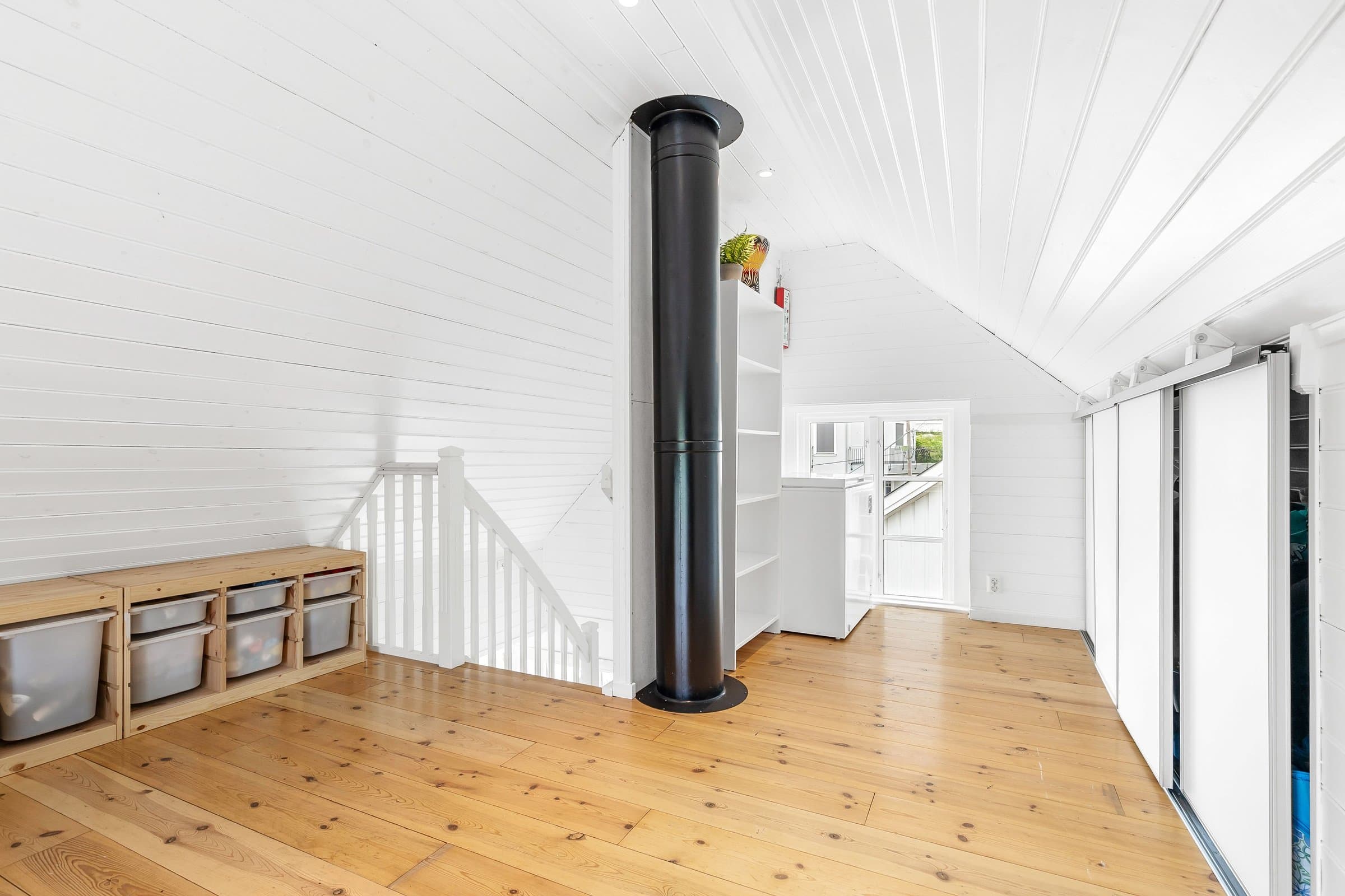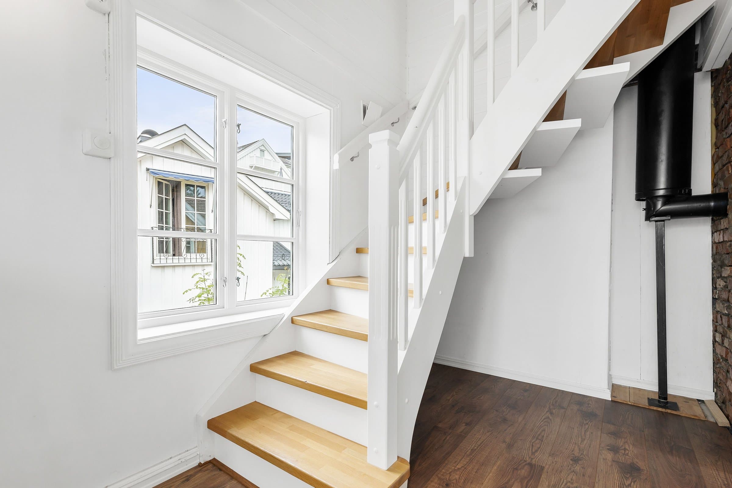 Velkommen til et påkostet og flott hjem i Bergstien 77 i Bragernesåsen, med god utsikt utover Drammen by. Leiligheten ligger i Johan Gottfried Schwenckes gamle brenneribygning fra 1804, som var Norges første potetbrennevinsbrenneri. Leiligheten ligger i hovedbygget fra 1804 og i tilbygget som ble bygd i 1911. Leiligheten går over tre plan med inngang i 1. etasje med stor gang, hovedplan i 2. etasje og innredet loft på 16m² (ikke godkjent for varig opphold). Hovedetasjen måler 102m² og består av gang, kjøkken/spisestue, stue, to bad, to soverom og ett innredet rom. Svært påkostet de siste årene: -2 nye bad i desember 2022. -nye vannrør. -ny smart varmtvannsbereder som gir både energibesparelse og brukervennlighet. -Nytt elektrisk anlegg. -Ble montert 8 nye vinduer i 2022. -Kjøkkenet ble totalrenovert i 2023 og fremstår som både stilfullt og funksjonelt, perfekt for matlaging og sosiale sammenkomster. -ny himling med trepanel og nye downlightsspotter i stue og kjøkken i 2023. -nytt laminatgulv gjennomgående i hele 2.etasjen 2023. -Forsterket takkonstruksjonen på tilbygget samt etterisolert og ny himling på soverom og begge bad. -Forsterkning av underliggende tverrgående bærebjelke under badet. -Montert ny varmepumpe/aircondition på soverom Mai 2022. Tatt service på begge varmepumper mai 2024. -Utført rørinspeksjon av avløp september 2021. -opparbeidet gårdsplass 2025, med plass til 2 biler.