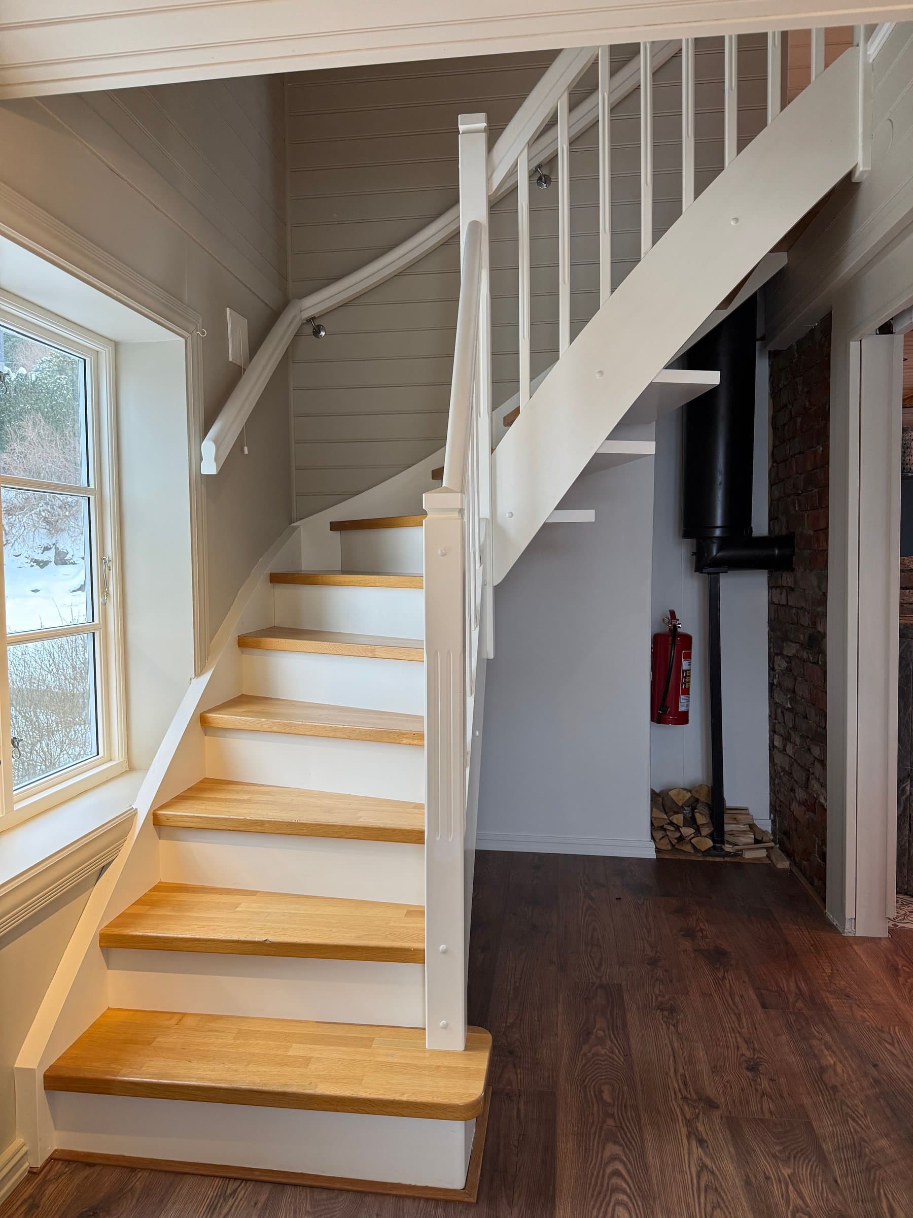 Velkommen til et påkostet og flott hjem i Bergstien 77 i Bragernesåsen, med god utsikt utover Drammen by. Leiligheten ligger i Johan Gottfried Schwenckes gamle brenneribygning fra 1804, som var Norges første potetbrennevinsbrenneri. Leiligheten ligger i hovedbygget fra 1804 og i tilbygget som ble bygd i 1911. Leiligheten går over tre plan med inngang i 1. etasje med stor gang, hovedplan i 2. etasje og innredet loft på 16m² (ikke godkjent for varig opphold). Hovedetasjen måler 102m² og består av gang, kjøkken/spisestue, stue, to bad, to soverom og ett innredet rom. Svært påkostet de siste årene: -2 nye bad i desember 2022. -nye vannrør. -ny smart varmtvannsbereder som gir både energibesparelse og brukervennlighet. -Nytt elektrisk anlegg. -Ble montert 8 nye vinduer i 2022. -Kjøkkenet ble totalrenovert i 2023 og fremstår som både stilfullt og funksjonelt, perfekt for matlaging og sosiale sammenkomster. -ny himling med trepanel og nye downlightsspotter i stue og kjøkken i 2023. -nytt laminatgulv gjennomgående i hele 2.etasjen 2023. -Forsterket takkonstruksjonen på halve bygget, samt etterisolert og ny himling på soverom og begge bad. -Forsterkning av underliggende tverrgående bærebjelke under badet. -Montert ny varmepumpe/aircondition på soverom Mai 2022. Tatt service på begge varmepumper mai 2024. -Utført rørinspeksjon av avløp september 2021. -opparbeidet gårdsplass sensommer 2025, med plass til 2 biler.