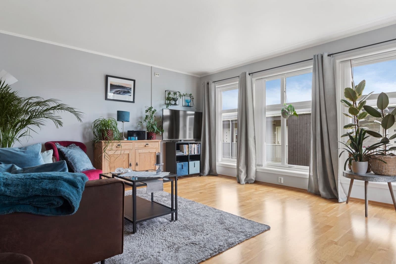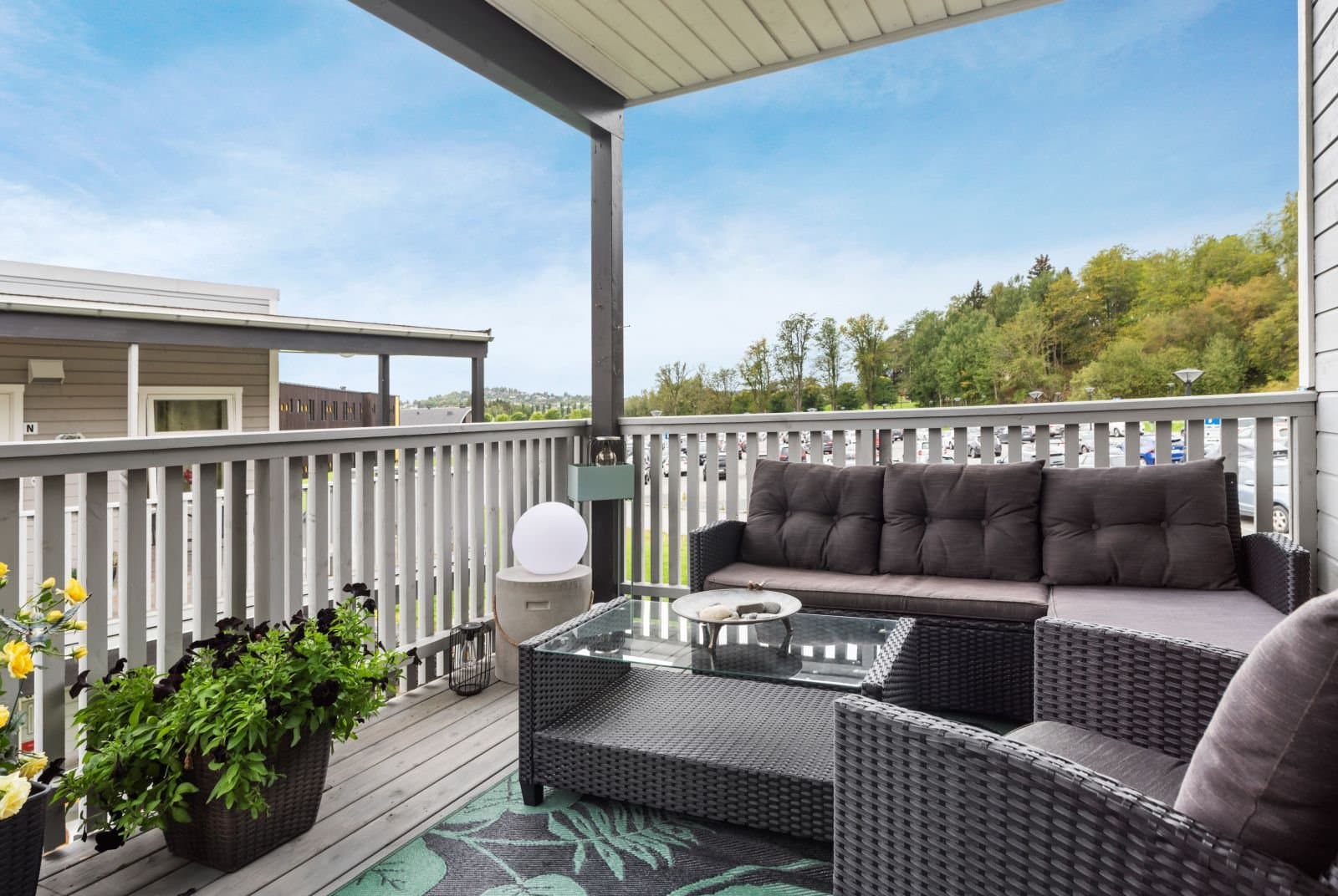 Flott, lys endeleilighet med gode solforhold. Egen parkeringsplass. Utsikt.