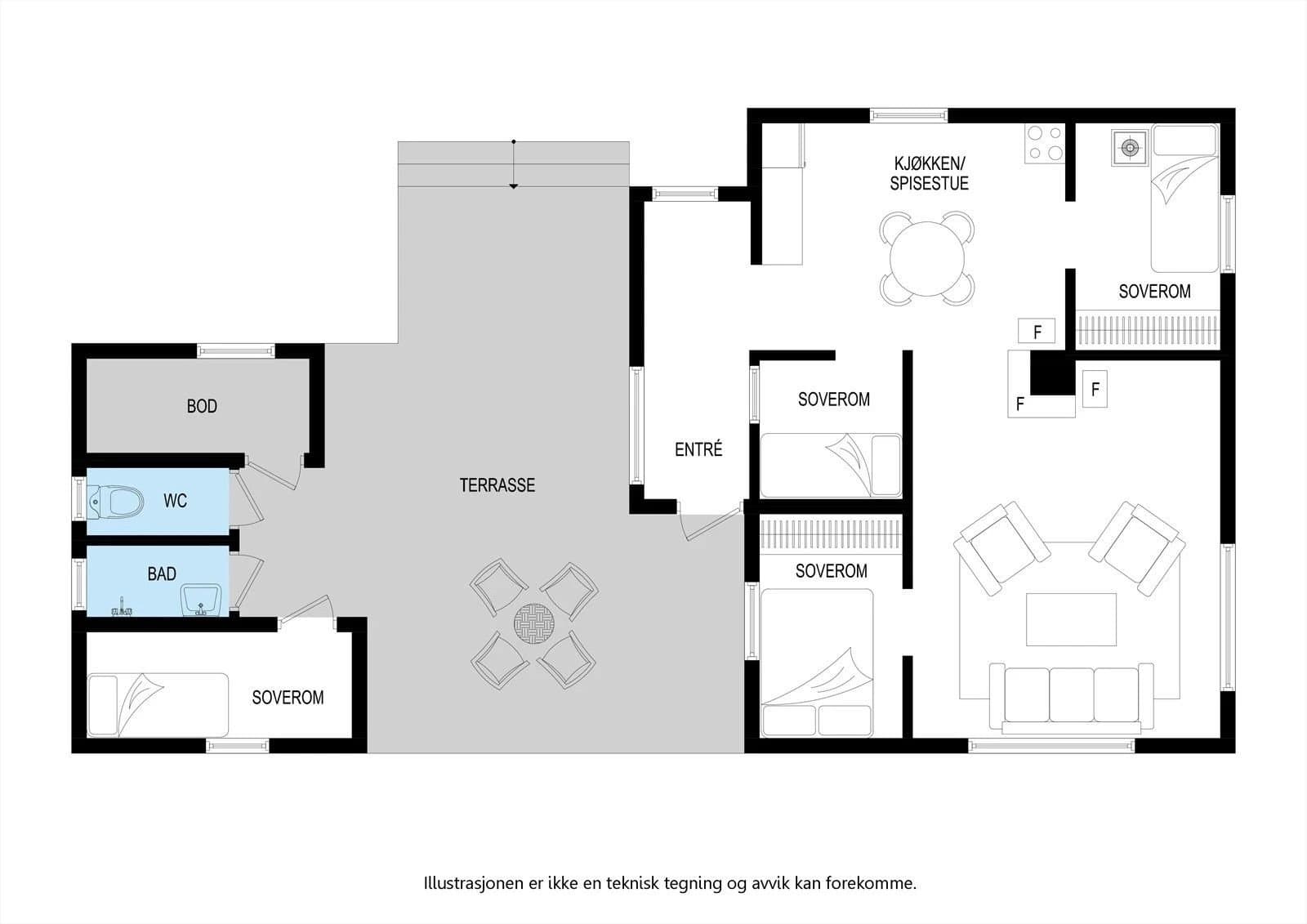 NB. Matrikkelkart viser anneks liggende delvis inn på annen grunneiers tomt. Kartet er utdatert og viser feil. Annekset ble flyttet i 2024. Ta kontakt for privat visning!