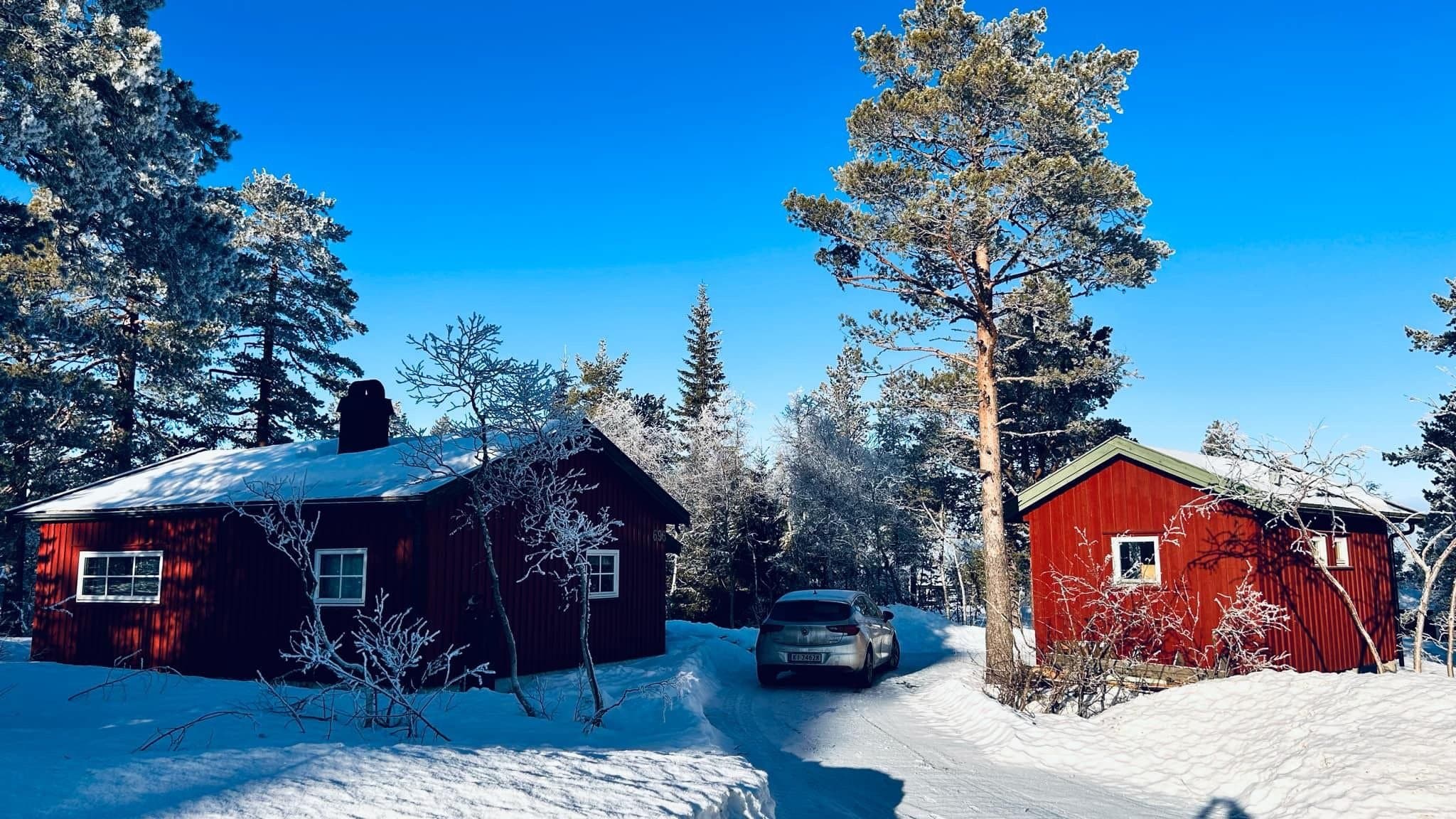 Koselig tradisjonell hytte, nær skiløyper og alpinanlegg. Innlagt strøm. Bilvei frem.