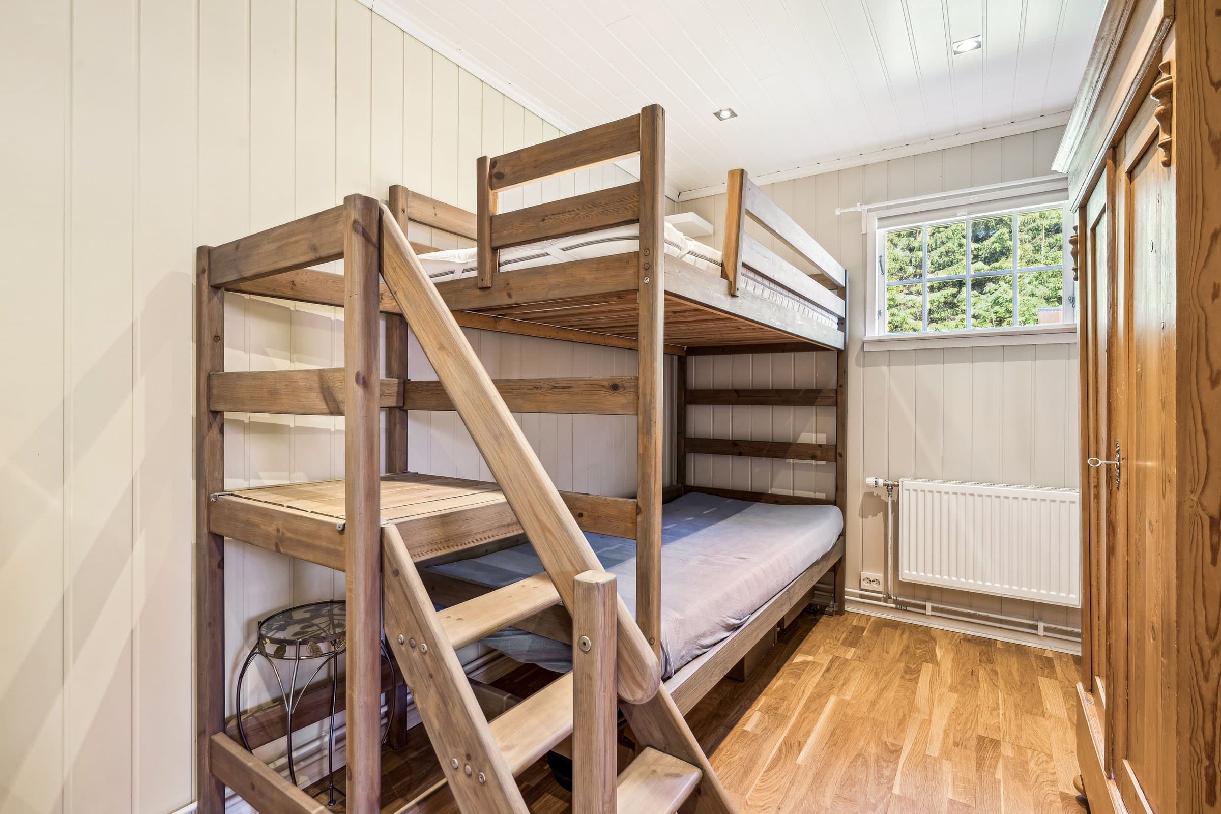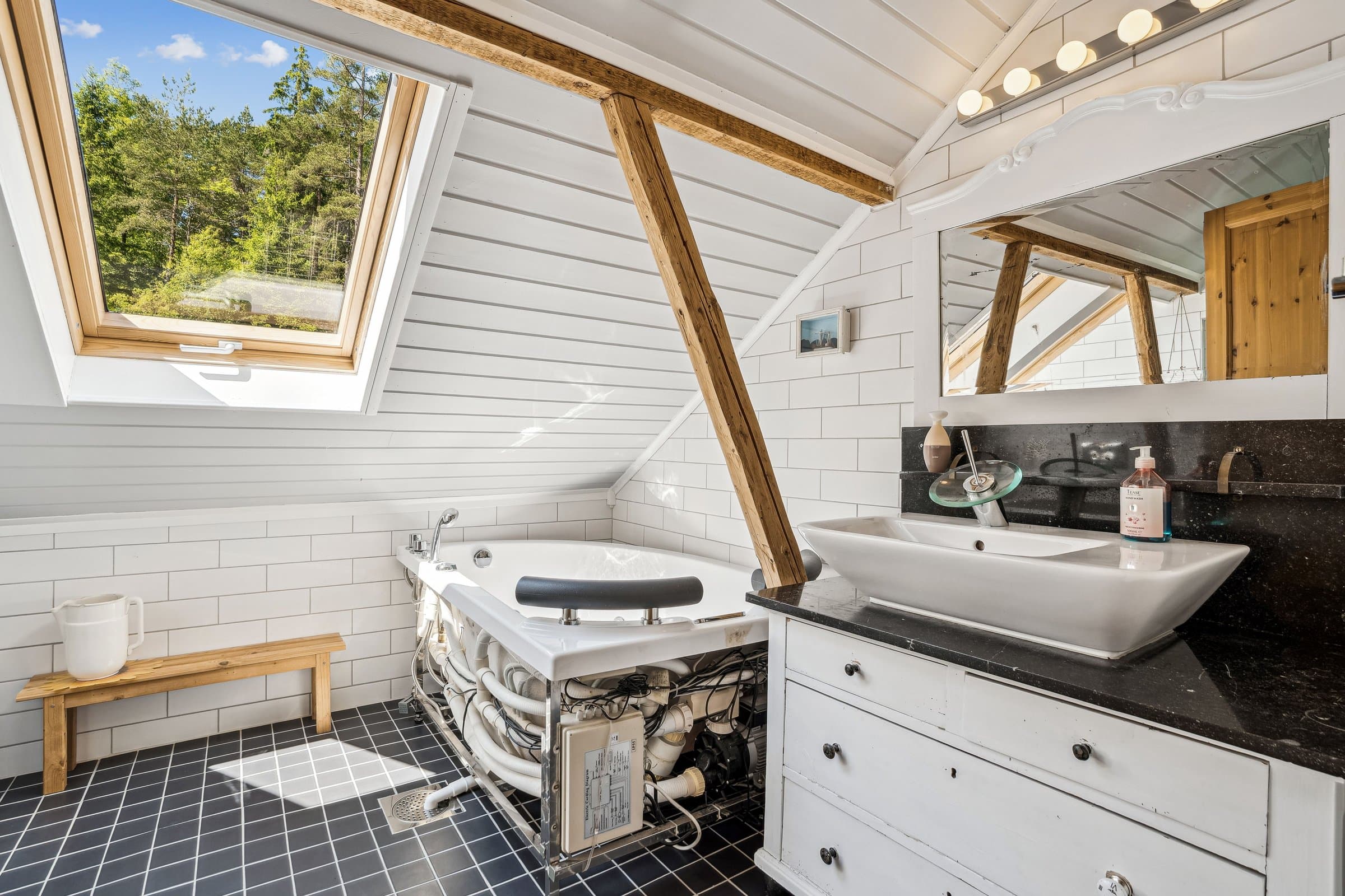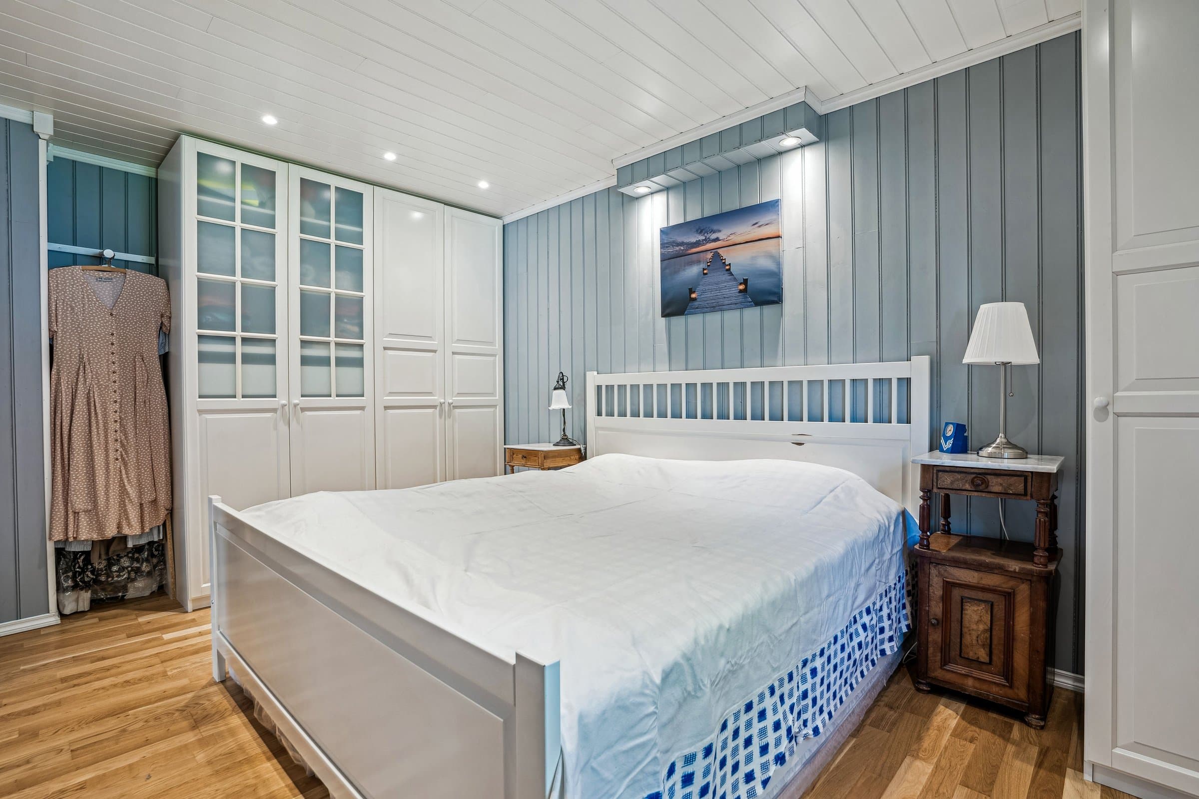 Med tungt hjerte selger vi drømmestedet våres som ligger i midten av naturen, 160 moh. Huset er fra 1913 og ble total rehabilitert fra 2006 til 2018. Boligen inneholder: 1.etasje: gang, bad, garderobe, spisestue, kjøkken, vaskerom, stue, soverom 2.etasje: gang, bad, garderobe, 2 soverom I 1.etasje er det vannbåren gulvvarme i alle rom, i 2.etasje er det viftekonvektorer. Oppvarming skjer med pelletskjele eller vedovn med vannkappe i stua. Fra våren til høsten kommer varmen fra 3 solfanger. Teknisk rom med pelletskjele ble oppført i 2017. I tillegg finnes et uthus fra 2013 på 41m2 med bad, 2 soverom og stue, en låve på ca. 64m2, en stor garasje på 44 m2 fra 2022 med 2 port (det ene porten er 3,50 høy) med løftebukk til bil, pluss en liten anneks og en brakke. Stor hage omringet av trær inkludert grønnsakshage med drivhus og en koselig bålplass.