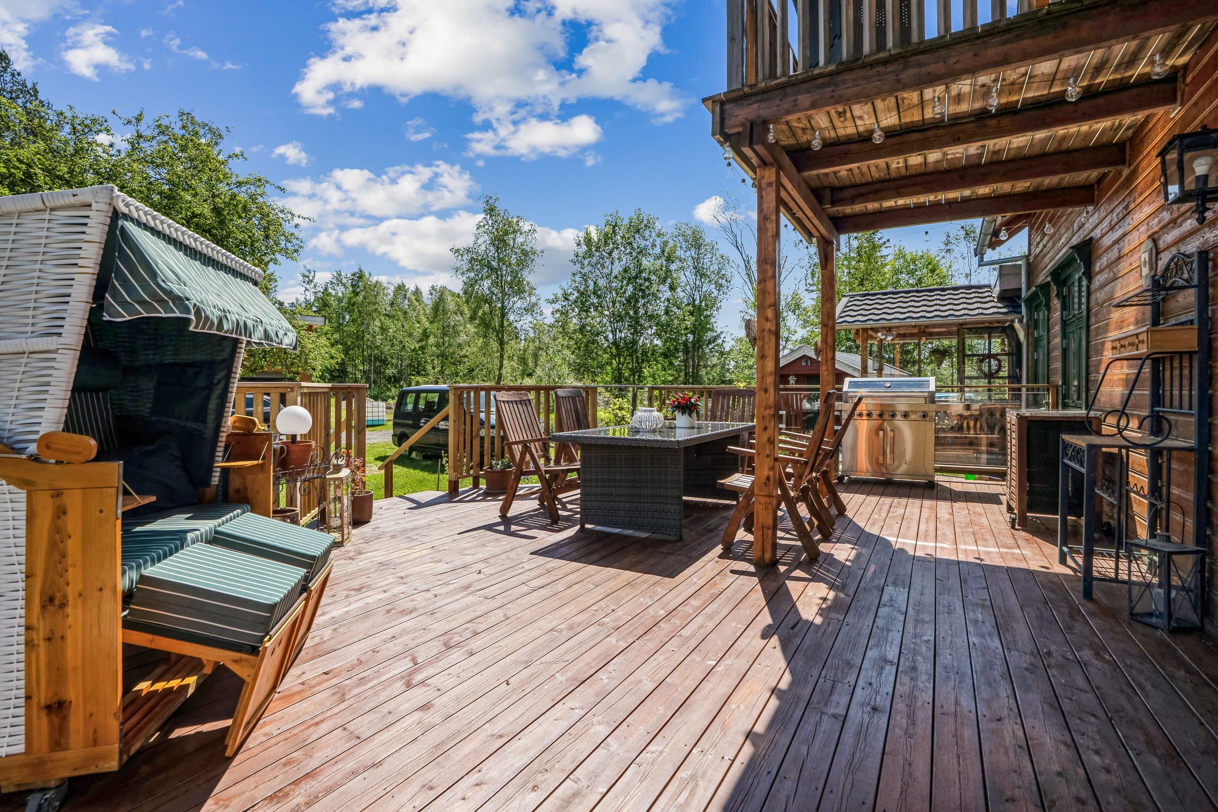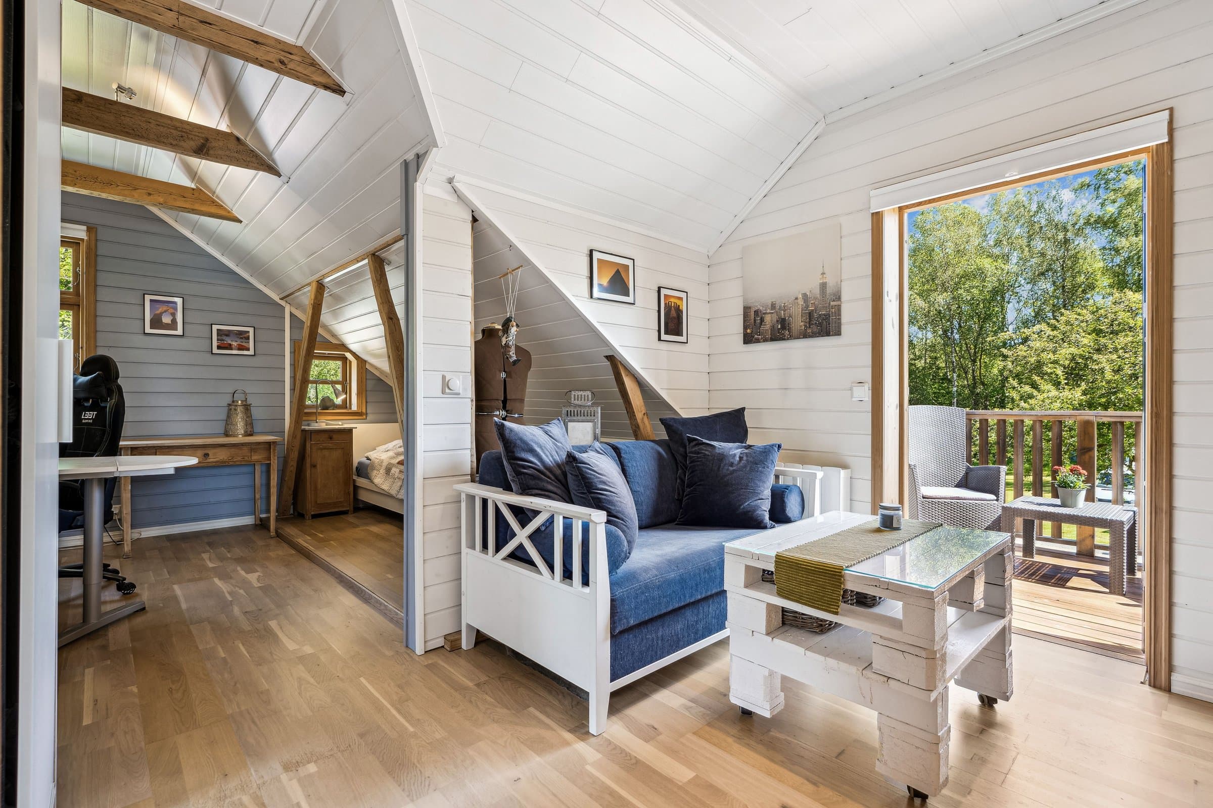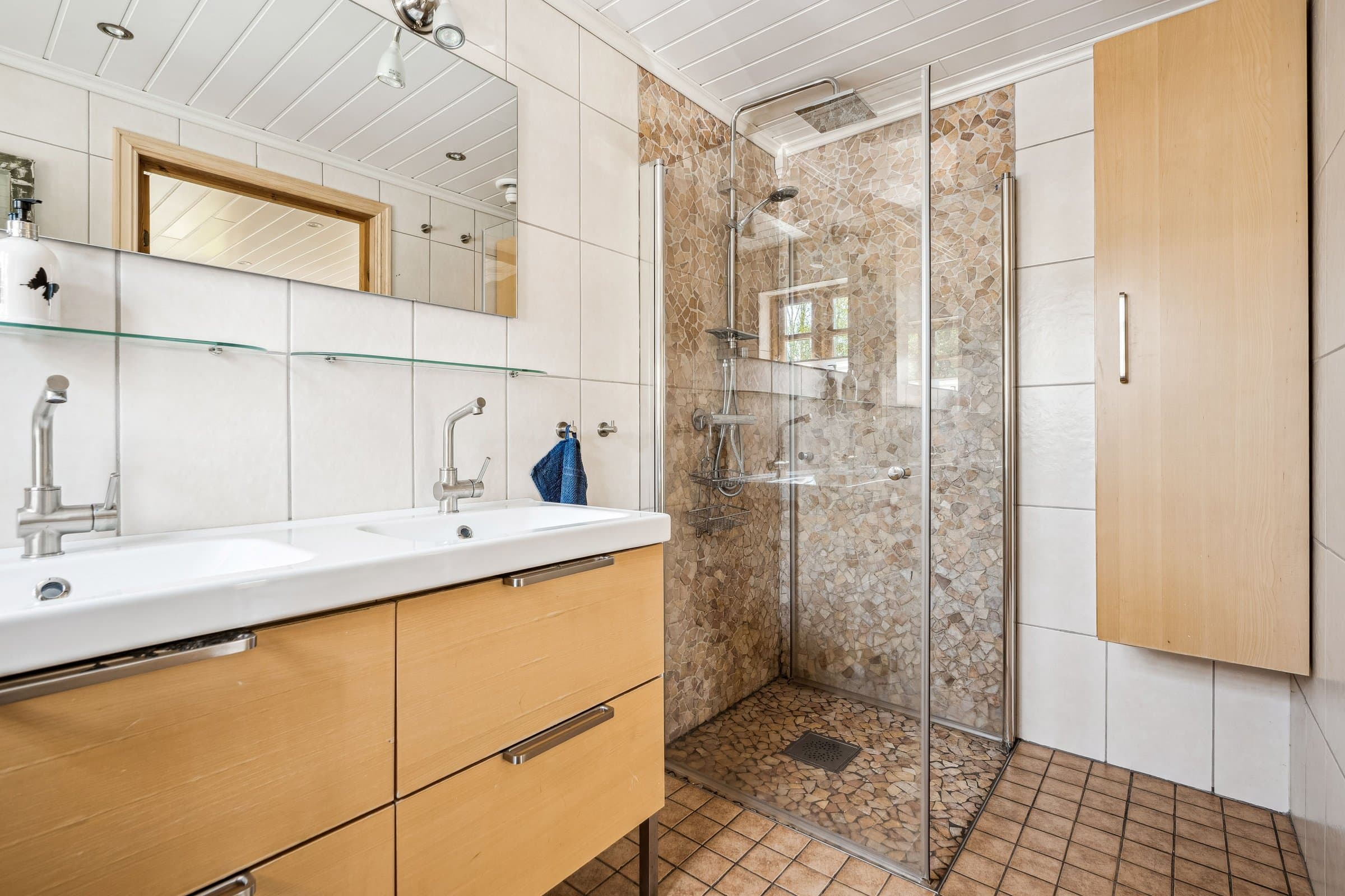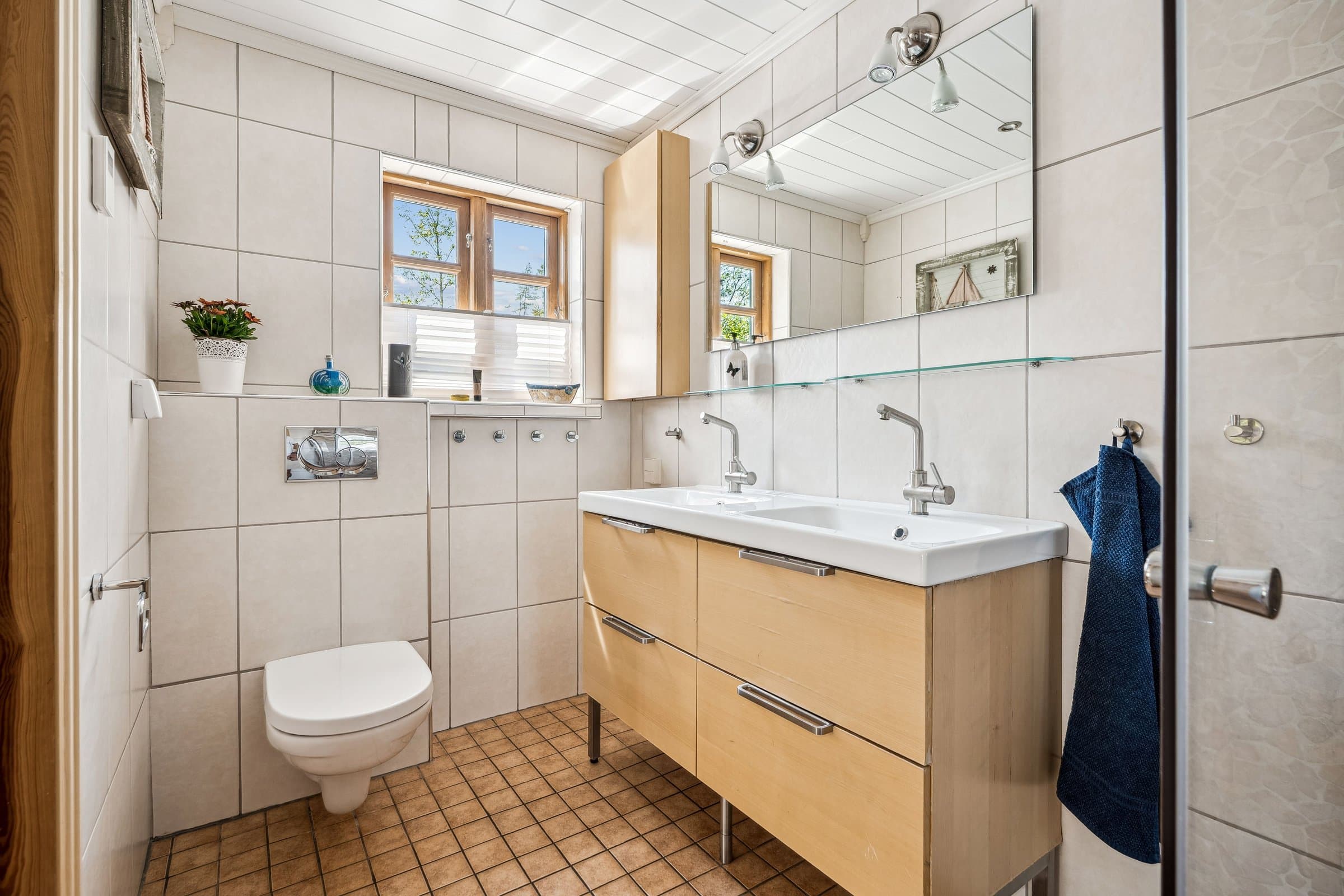 Med tungt hjerte selger vi drømmestedet våres som ligger i midten av naturen, 160 moh. Huset er fra 1913 og ble total rehabilitert fra 2006 til 2018. Boligen inneholder: 1.etasje: gang, bad, garderobe, spisestue, kjøkken, vaskerom, stue, soverom 2.etasje: gang, bad, garderobe, 2 soverom I 1.etasje er det vannbåren gulvvarme i alle rom, i 2.etasje er det viftekonvektorer. Oppvarming skjer med pelletskjele eller vedovn med vannkappe i stua. Fra våren til høsten kommer varmen fra 3 solfanger. Teknisk rom med pelletskjele ble oppført i 2017. I tillegg finnes et uthus fra 2013 på 41m2 med bad, 2 soverom og stue, en låve på ca. 64m2, en stor garasje på 44 m2 fra 2022 med 2 port (det ene porten er 3,50 høy) med løftebukk til bil, pluss en liten anneks og en brakke. Stor hage omringet av trær inkludert grønnsakshage med drivhus og en koselig bålplass.