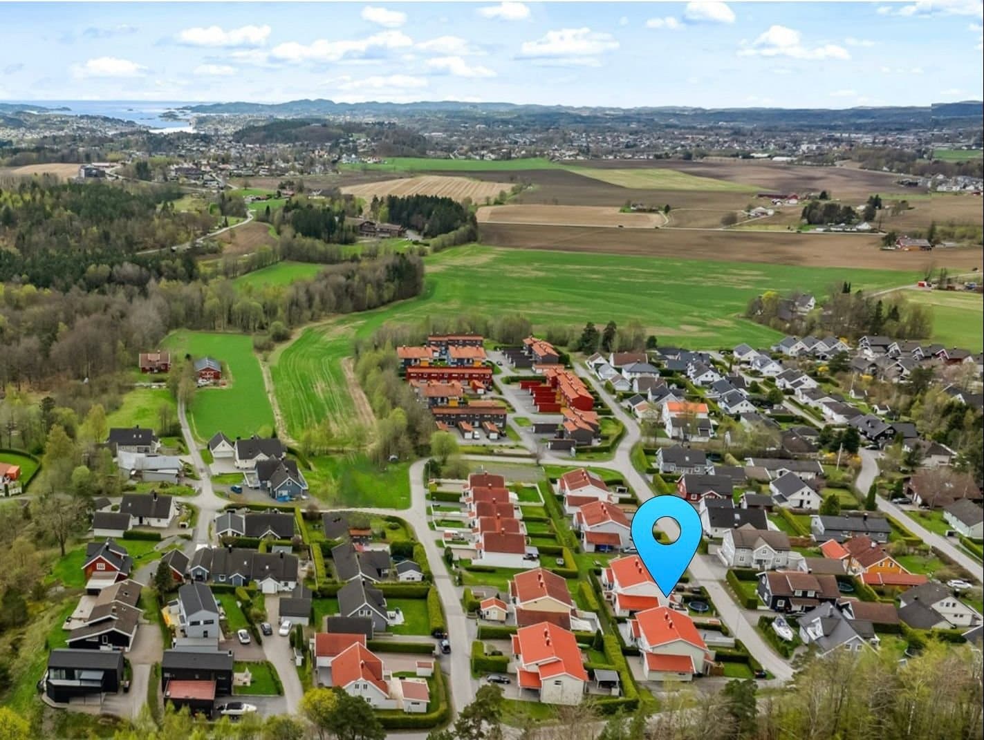 Beliggenhet. Eiendommen ligger i rolige og barnevennlige omgivelser på Hunsrød, ca 6 km fra Sandefjord sentrum. Området byr på flere lekeplasser og flotte turmuligheter rett i nærheten. Kort gangavstand til barnehage, barneskole, butikk, bussforbindelser og andre servicetilbud. Enkel adkomst til E18 og kort kjøretur til både Torp flyplass og Torp togstasjon. Med gangavstand til flere arbeidsplasser på Fokserød og Kullerød. Goksjø ligger også en svipptur unna.