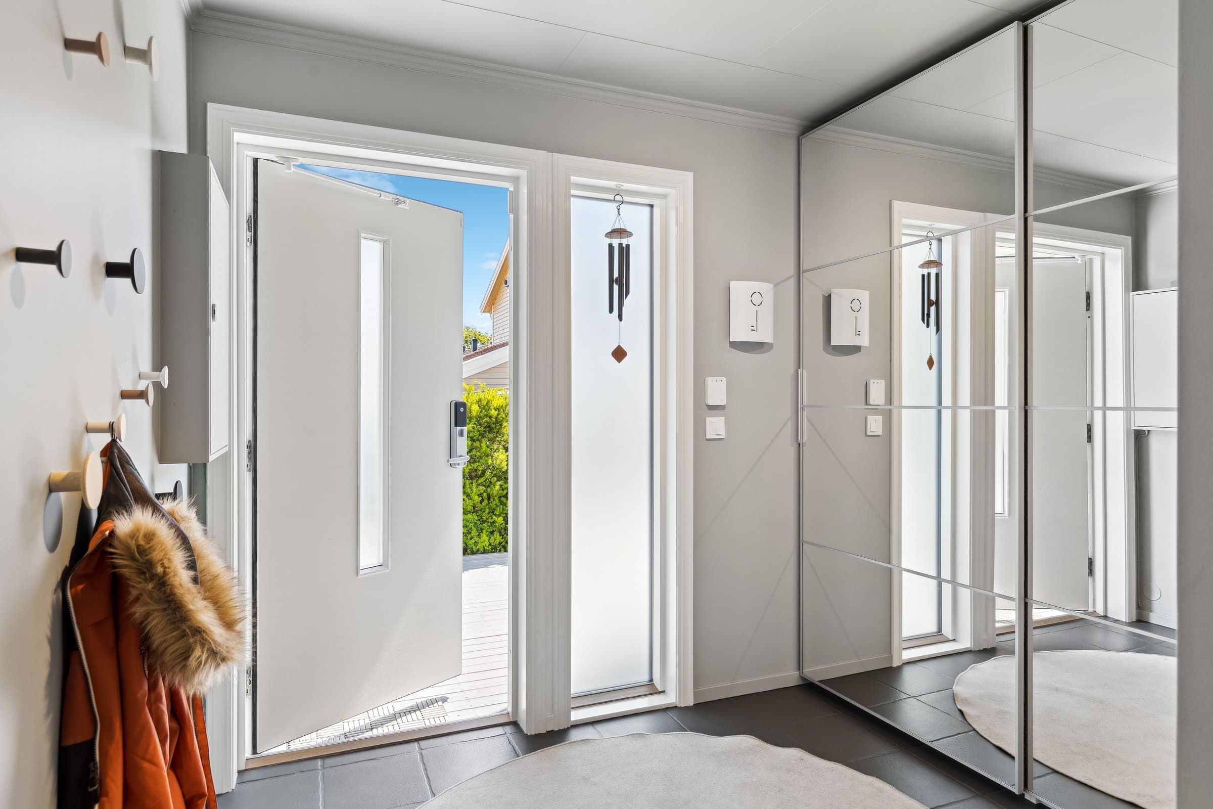 Oppgraderinger 2017–2025 • 2018–2020: Alle innvendige overflater renovert • 2021: Pipe renovert og ny tetting mot tak • 2022: Ny varmepumpe og Eco varmtvannsbereder installert • 2022: Ny terrasse og Inngangs dør, ved inngang. • 2023: Nye energivinduer og tofløyet-terrasedør montert. • 2023: Ventilasjonskanaler profesjonelt renset • 2020: Nytt Epoq-kjøkken med auto-vann-stoppekran. • 2024: Etterisolert loft med 15 cm vindpapp-isolasjon • 2023: Rekkverk mot hage etablert • 2024: Solskjerming med LED montert • 2025: Hele 1etg malt innvendig. • 2025: Taket renset og carport oppgradert med miniloft. Huset med tak er vasket malt hvert 2 år.