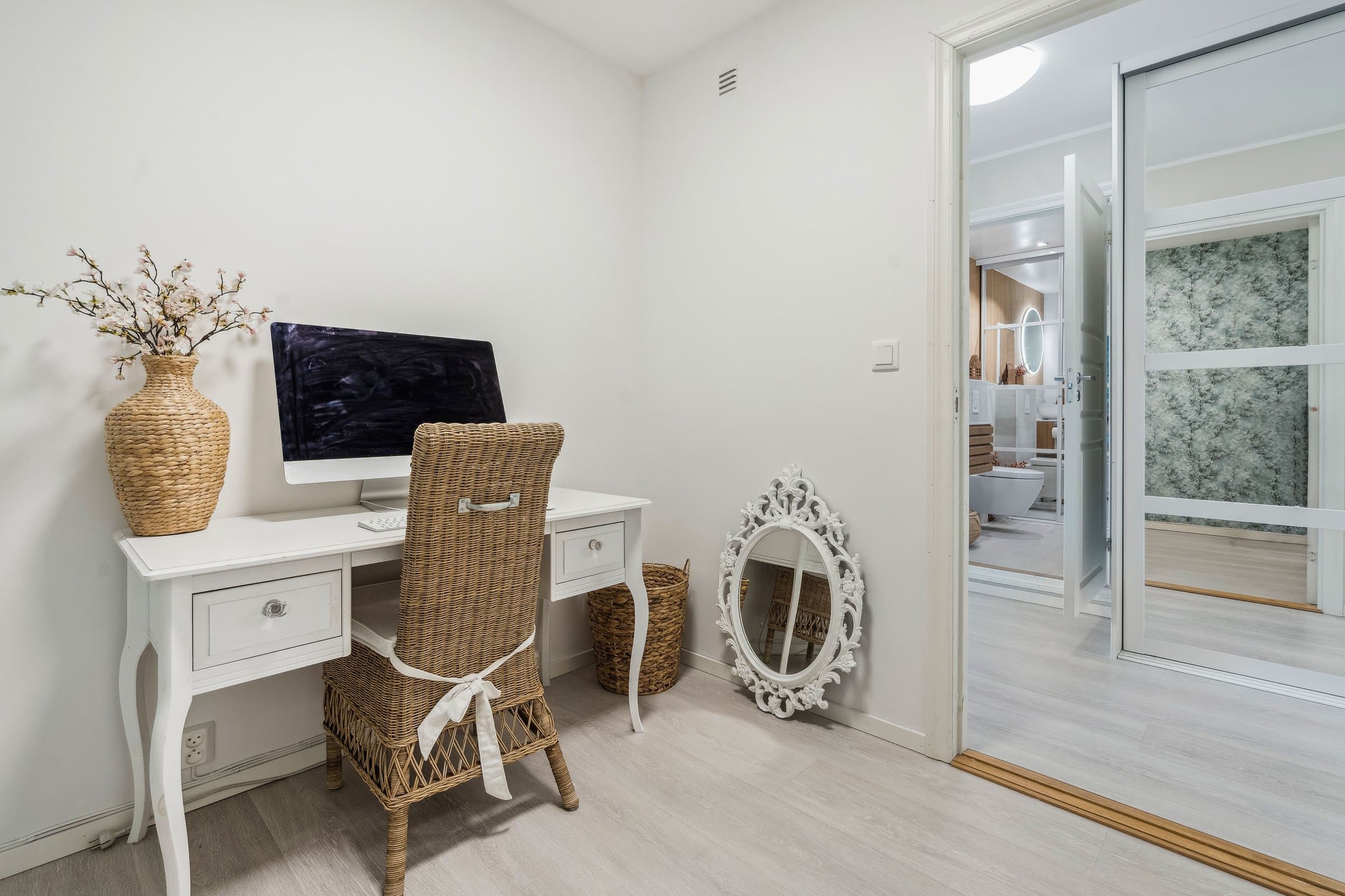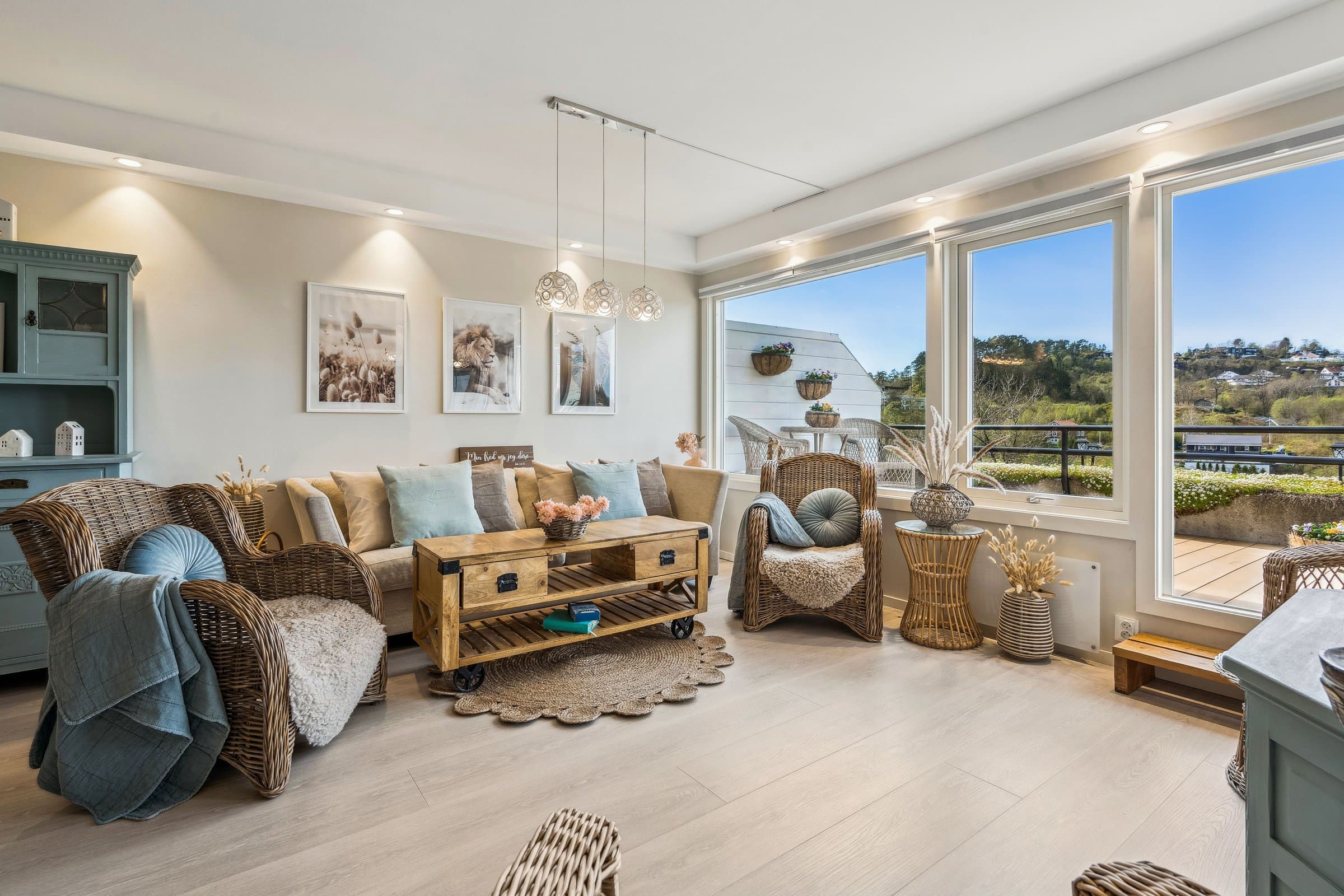 Lekker og moderne 3(4)-roms leilighet med flere oppgraderinger de senere år. Vestvendt terrasse på 17 kvm. Her har man vakker utsikt og svært gode solforhold til langt på kveld Leiligheten er nylig vesentlig oppgradert med bla. nytt Pergo laminatgulv, malte overflater, nytt lekkert kjøkken og nytt bad. Leiligheten er omgjort fra to roms til tre-roms. Borettslaget har godkjent endringen Inneholder: Entré, stue, kjøkken, bad, to soverom og et kontor som kan benyttes som ekstra soverom. En garasjeplass i felles garasjeanlegg med el-billader. Leiligheten disponerer egen bod