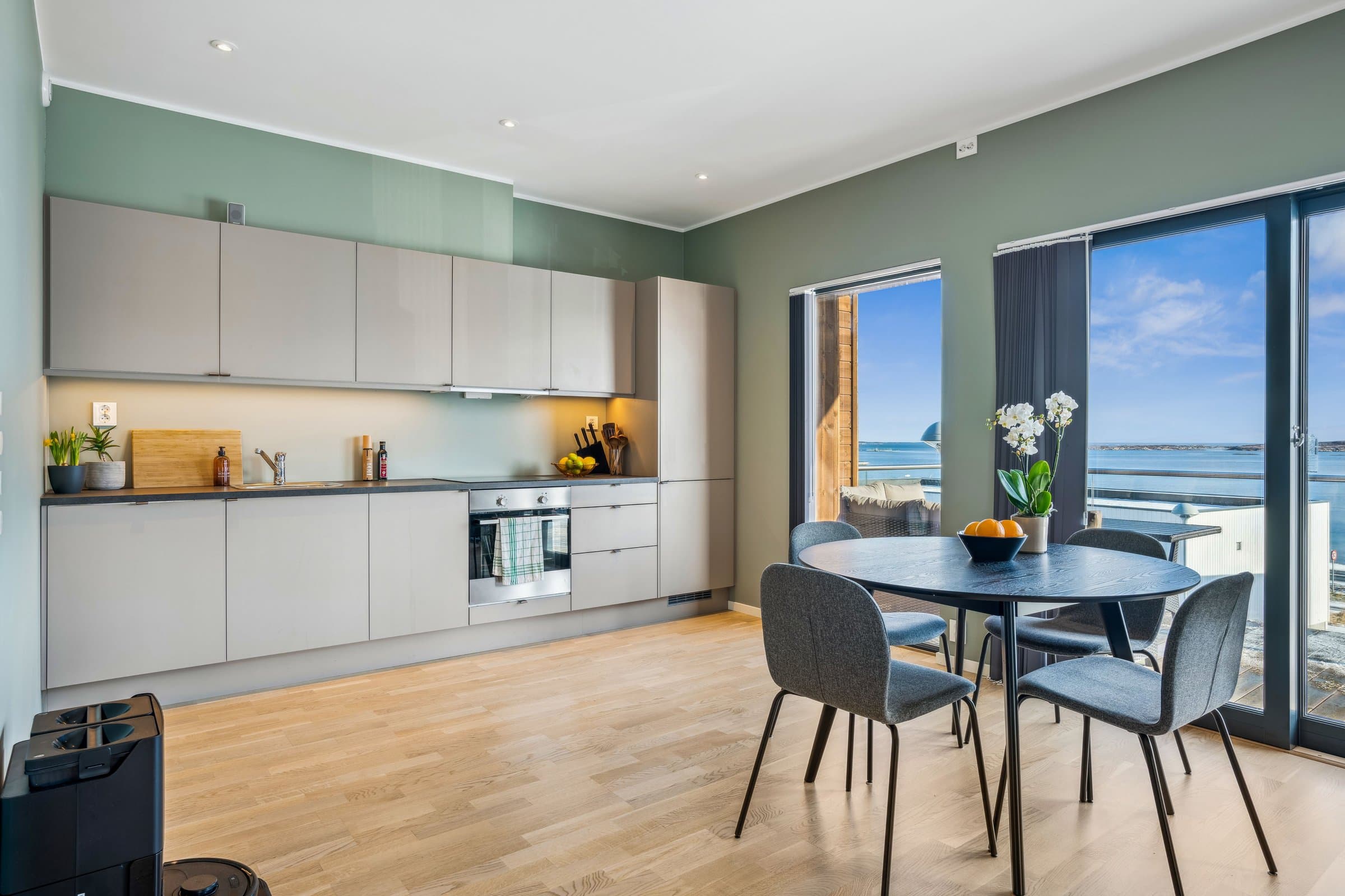 Rabbaveien 9A er en lys og moderne 2(3)-roms leilighet fra 2019 med fantastisk sjøutsikt og sentral beliggenhet på Sistranda. Leiligheten er på omtrent 62 kvm og ligger øverst i en firemannsbolig. Det er en stor solrik balkong, omtrent 16 kvm, med nydelig sjøutsikt. Leiligheten er praktisk med alt på et plan med inngang, parkering og platt på baksiden. Verdt å merke seg: Leiligheten kan gjøres om til 3-roms ved å sette opp lettvegg i enden av stuen. Ventilasjon, strøm og vindu er klargjort for dette. Store vindusflater og glassrekkverk på balkongen skaper et trivelig miljø, og fremhever den flotte sjøutsikten med øya Inntian i bakgrunnen. Leiligheten har flislagt entré, stue og kjøkken er i åpen løsning, og badet er pent og romslig. Det er et praktisk teknisk-/vaskerom. Soverommet er på hele 11 kvm med god plass til seng og garderobe. Oppvarming er vannbåren gulvvarme med romtermostater i alle rom unntatt soverom. Det er i tillegg en bod ved parkeringsplass på 7 kvm. Velkommen til visning!