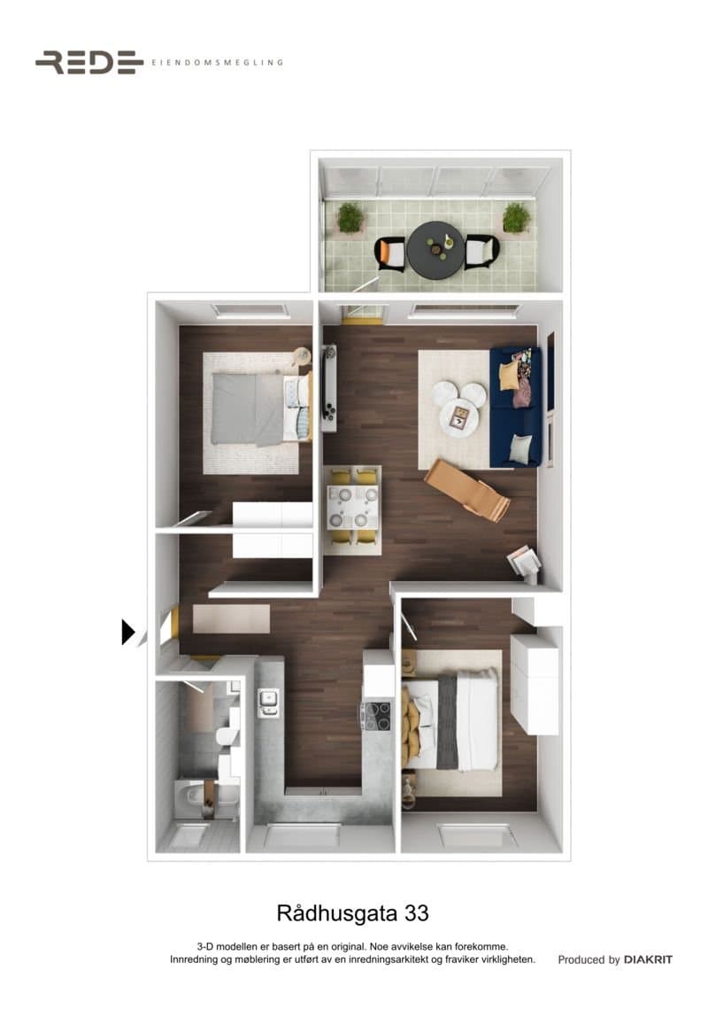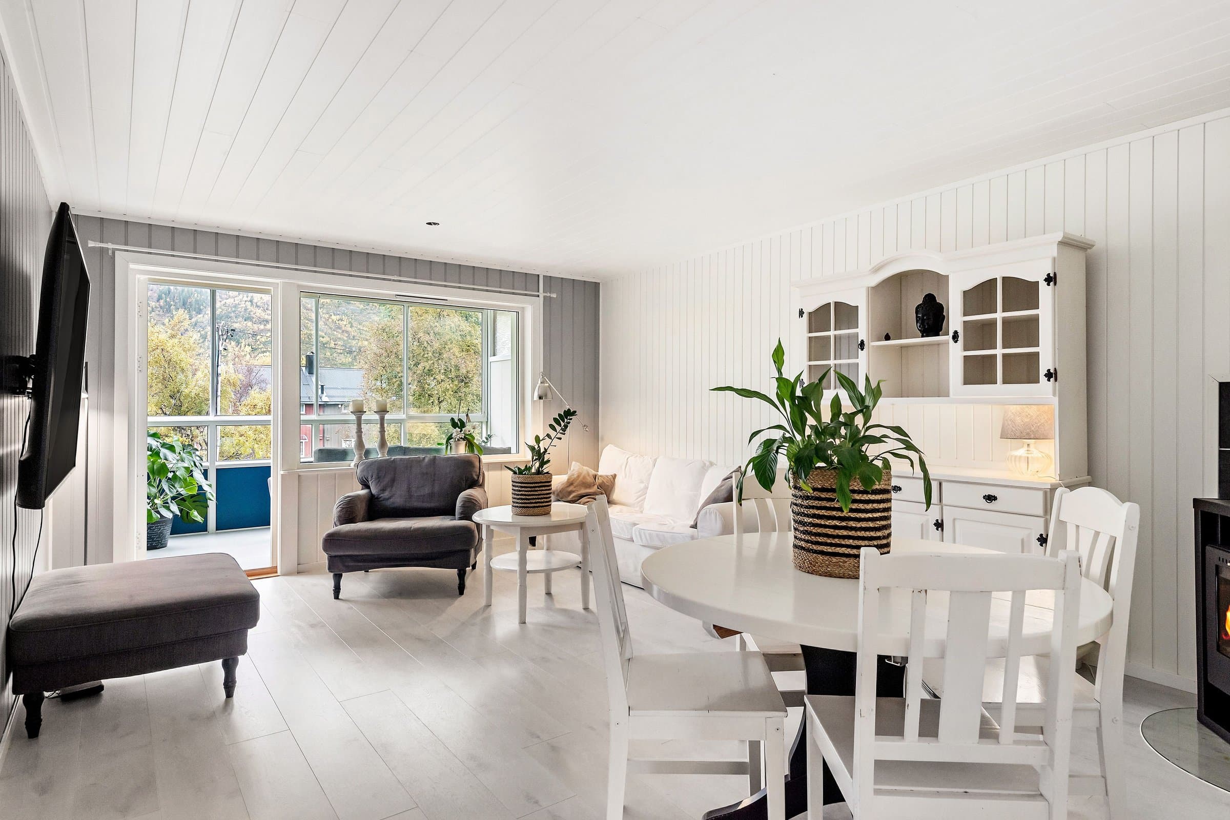 Rådhusgata 33 ligger på byflata sentralt i Mosjøen, ca 500 m. sør-øst for sentrum. Det er kort gangavstand til dagligvarebutikker, park, treningssenter, kulturtilbud, kjøpesenter og turområder. 3-romsleiligheten ligger i et etablert og trivelig nabolag, og borettslaget har stor hage man kan benytte seg av. Leiligheten har utsikt mot Dolstadåsen og Øyfjellet. Alt i alt har Rådhusgata 33 en flott beliggenhet for de som ønsker å bo sentralt, men likevel ha nærhet til både byliv og natur.