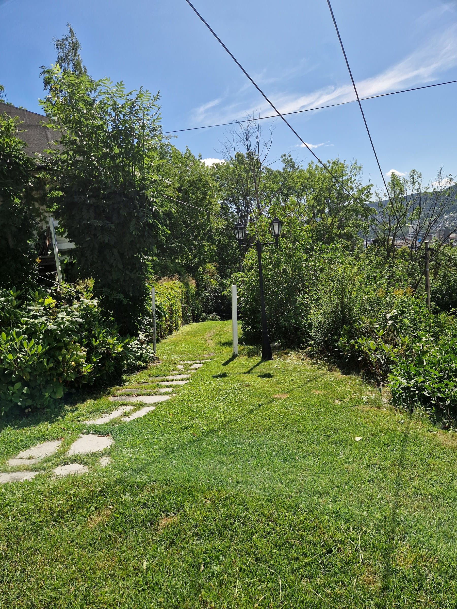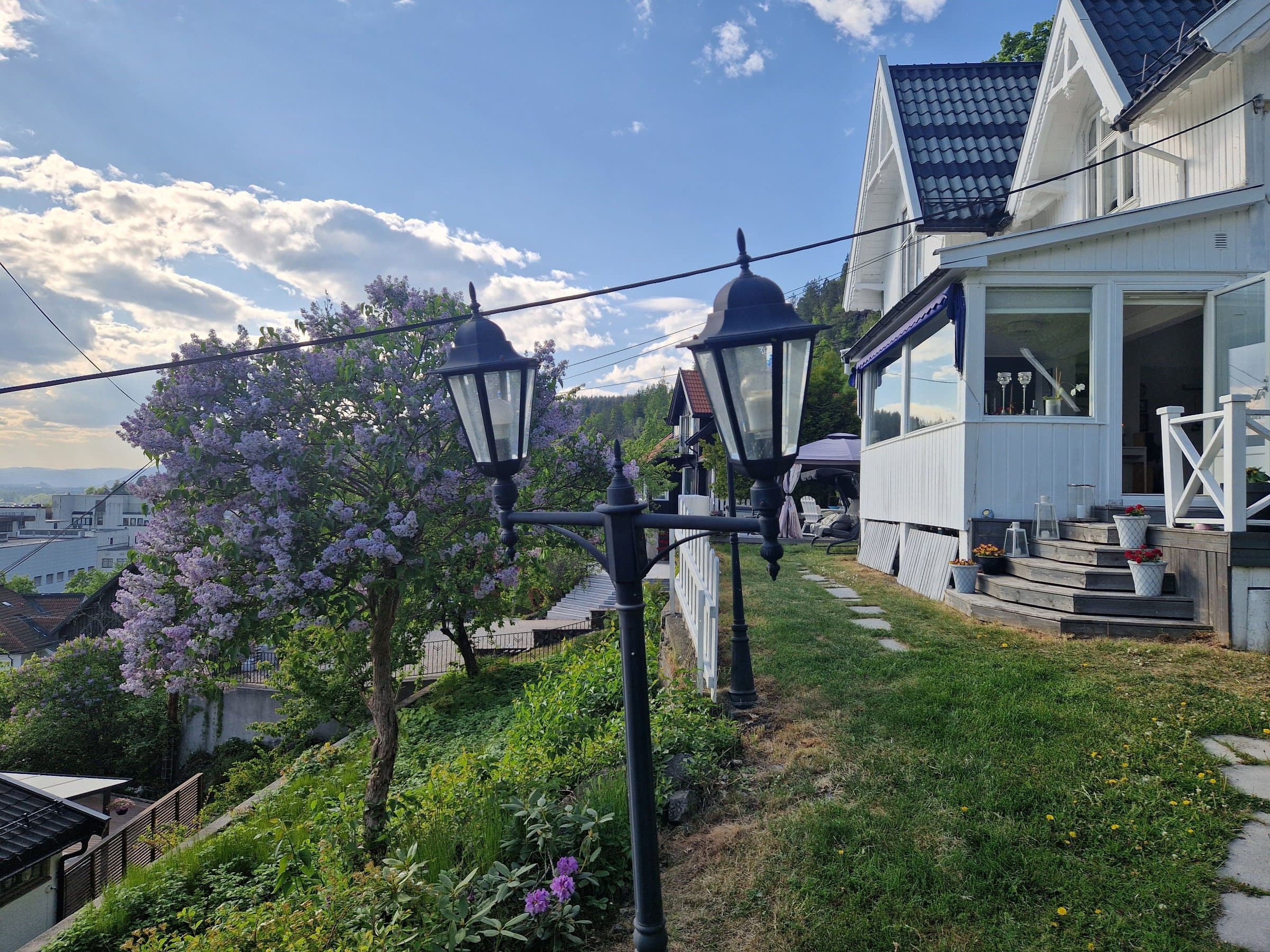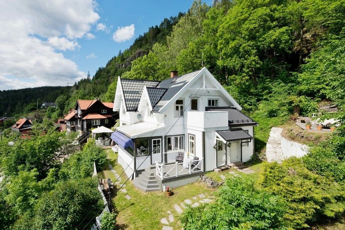 Huset ligger tilbaketrukket i Bragernesåsen ved Bragernes sentrum i attraktivt villaområde med nærhet til sentrum. Kun få minutters gange til Bragernes Torg med et yrende kafe-, restaurant -og uteliv. Pendlervennlig og gangavstand til det nye sykehuset. Husets store vindusflater mot syd og sydvest, særlig i stuen, opplever man betydelig innfall av dagslys. Det er 2 stuer i leiligheten som er adskilt med 2 glassdører. Flott utsikt over byen og mot Union Brygge, elva og Strømsåsen. Huset ligger høyt og fritt, med hage og sol fra morgen til kveld. Hagen er idyllisk med usjenert treterrasse hvor det er satt opp et partytelt. Bruksområdene i hagen ligger foran huset og er på ca 450m2 og du kan nyte sol fra morgen til kveld. Det finnes to peisovner, en i hver stue. Boligen er en selveierleilighet i en halvpart av en horisontaldelt sveitservilla. Boligen er oppført i tømmer, av laftet tømmer. Garasje for en bil med eget målepunkt(2021), kontaktpunkt og elbillader, samt biloppstillingsplass foran garasje. Adkomst til boligen er fra Bergstien og garasjen via gangsti opp til boligen.