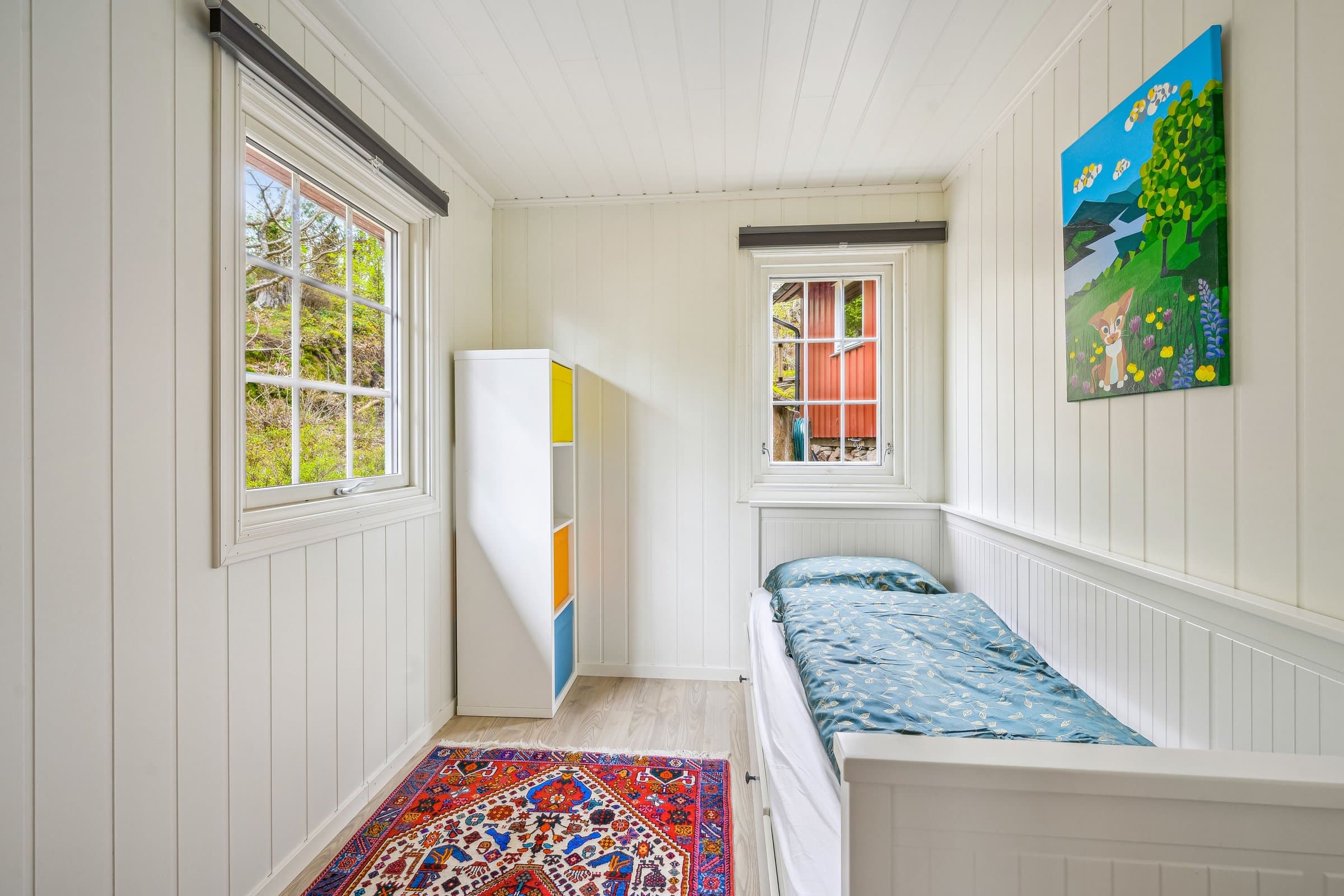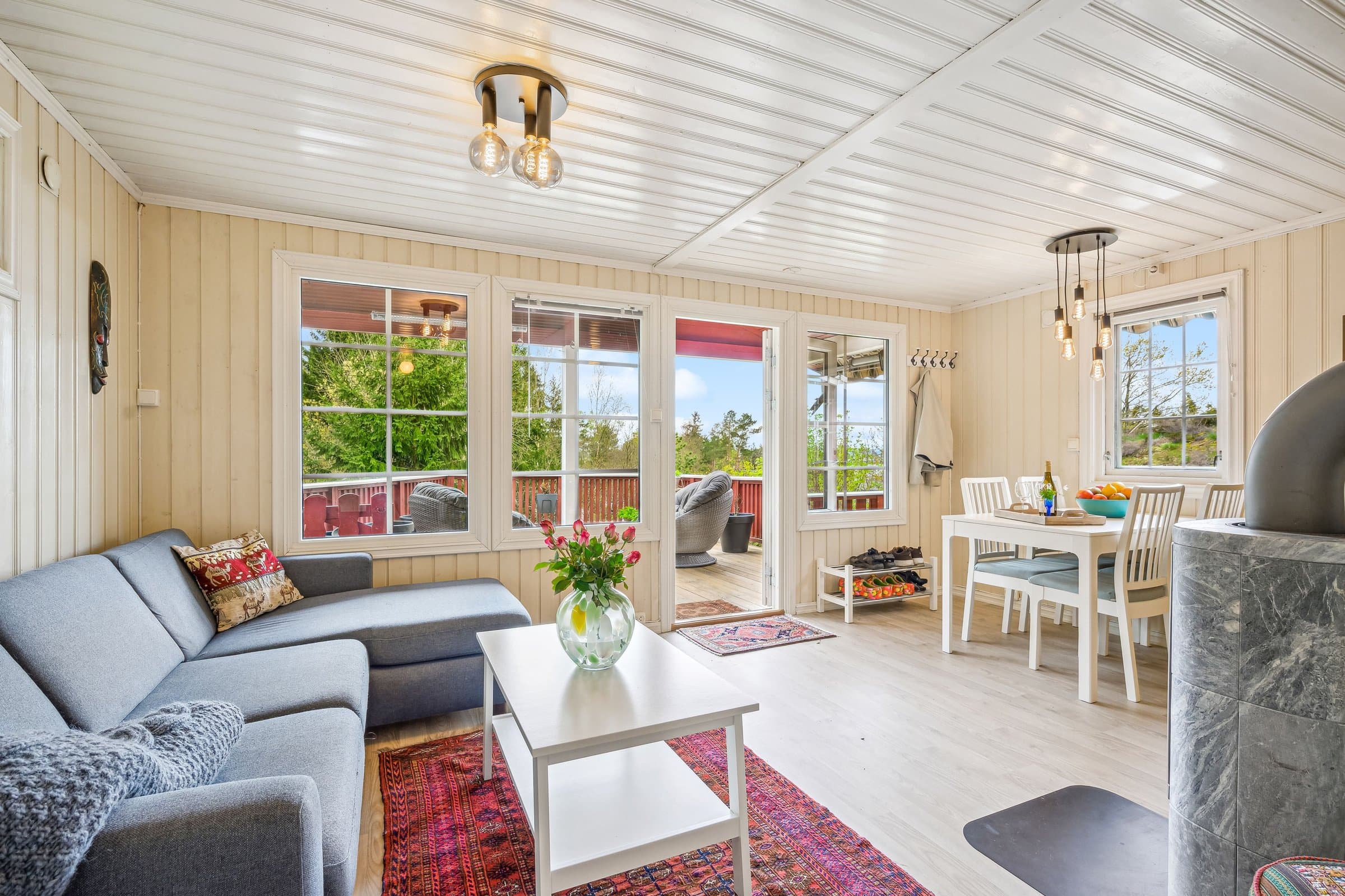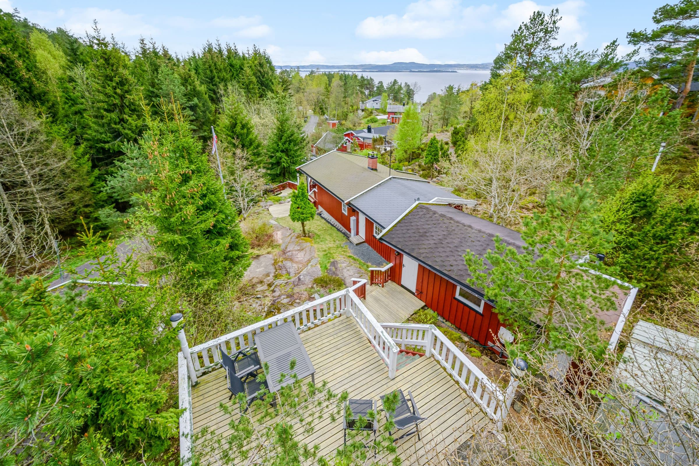 Flott og velholdt hytte med god planløsning og fantastiske uteområder. Åpen stue/kjøkken løsning som gir en god romfølelse. Stor veranda utenfor stuen der du kan nyte en fin utsikt mot fjorden. Det er totalt 4 soverom, hvorav 2 i annekset. Hytta holder en gjennomgående god standard og er holdt godt vedlike. Praktisk kjøkken som er innredet med over- og underskap, benkeplate med benkebeslag og avtrekk over kokeplass. Romslig bad med dusjkabinett, servant i innredning og urinal. Det er Cinderella forbrenningstoalett i annekset. Visning etter avtale. Ring eller send melding til selger (916 74 914).