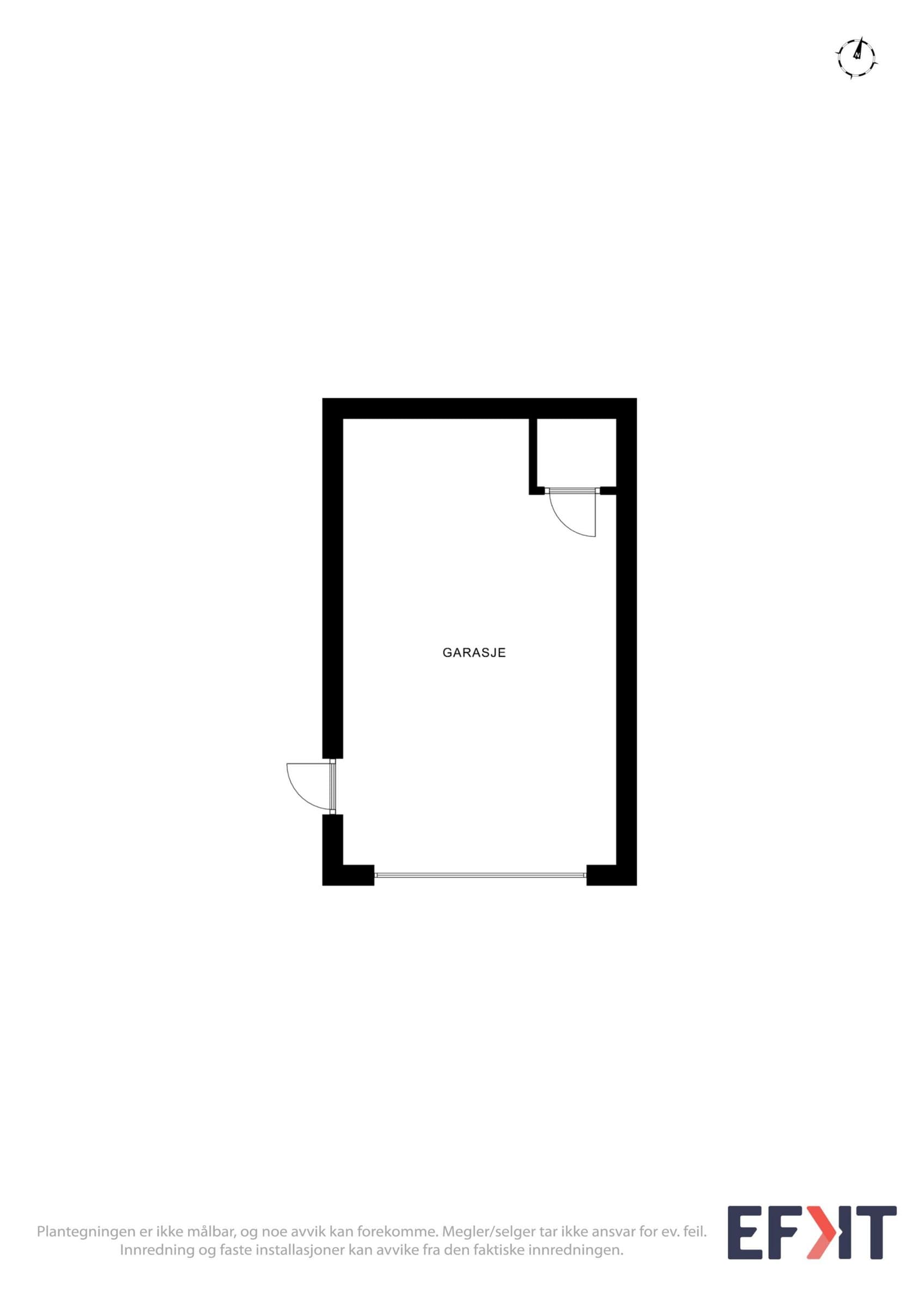 Garasjen er byggemeldt og godkjent hos kommunen, men deler av denne er plassert utenfor tomtegrensen (på kommunal grunn). Kjøper overtar ansvar og risiko for dette.