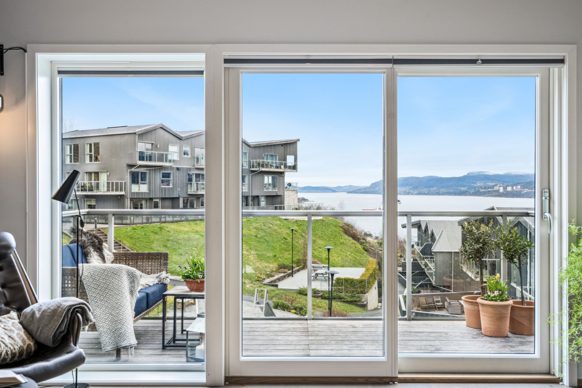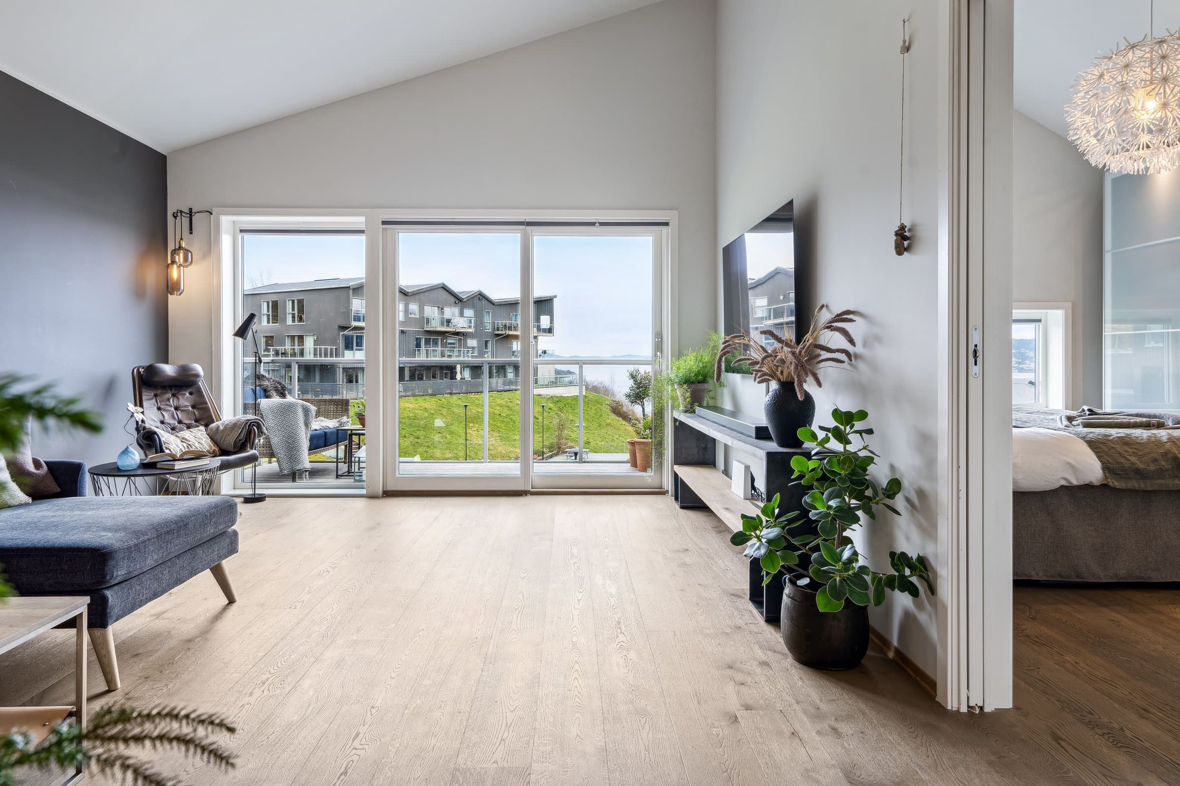 Strøken toppleilighet | 2 (3) -roms fra 2016 med nydelig sjøutsikt! | 2 balkonger | 3,8m takhøyde