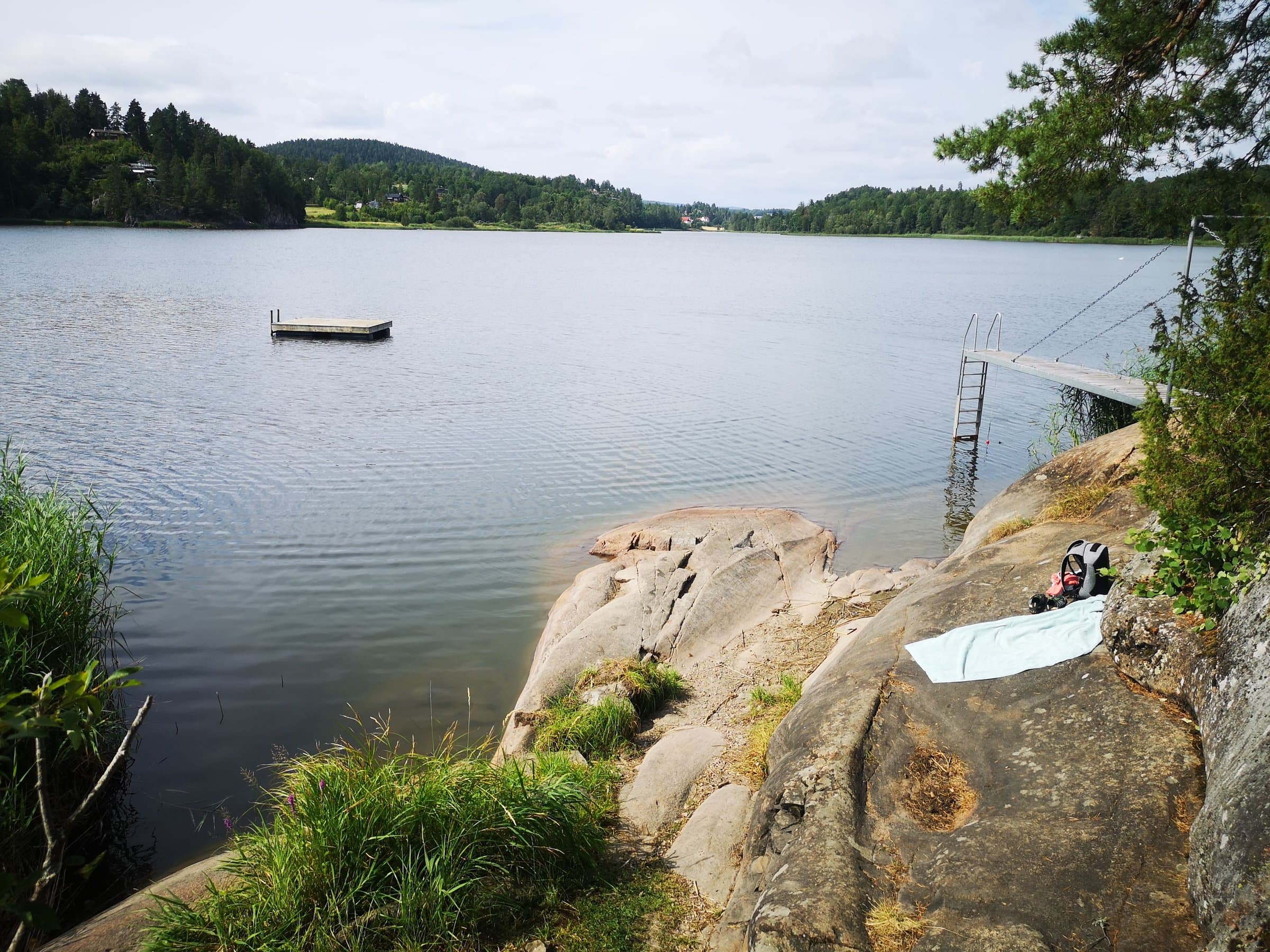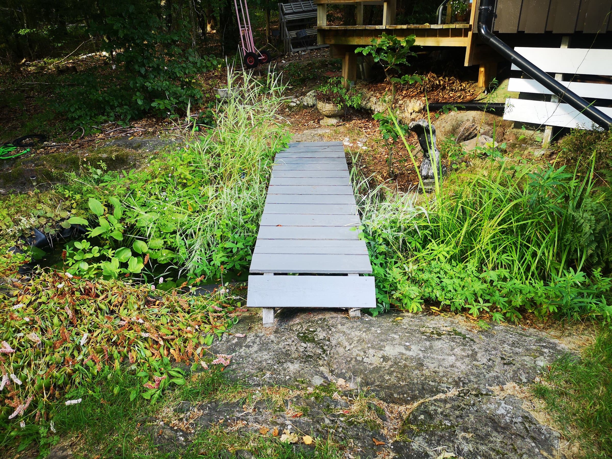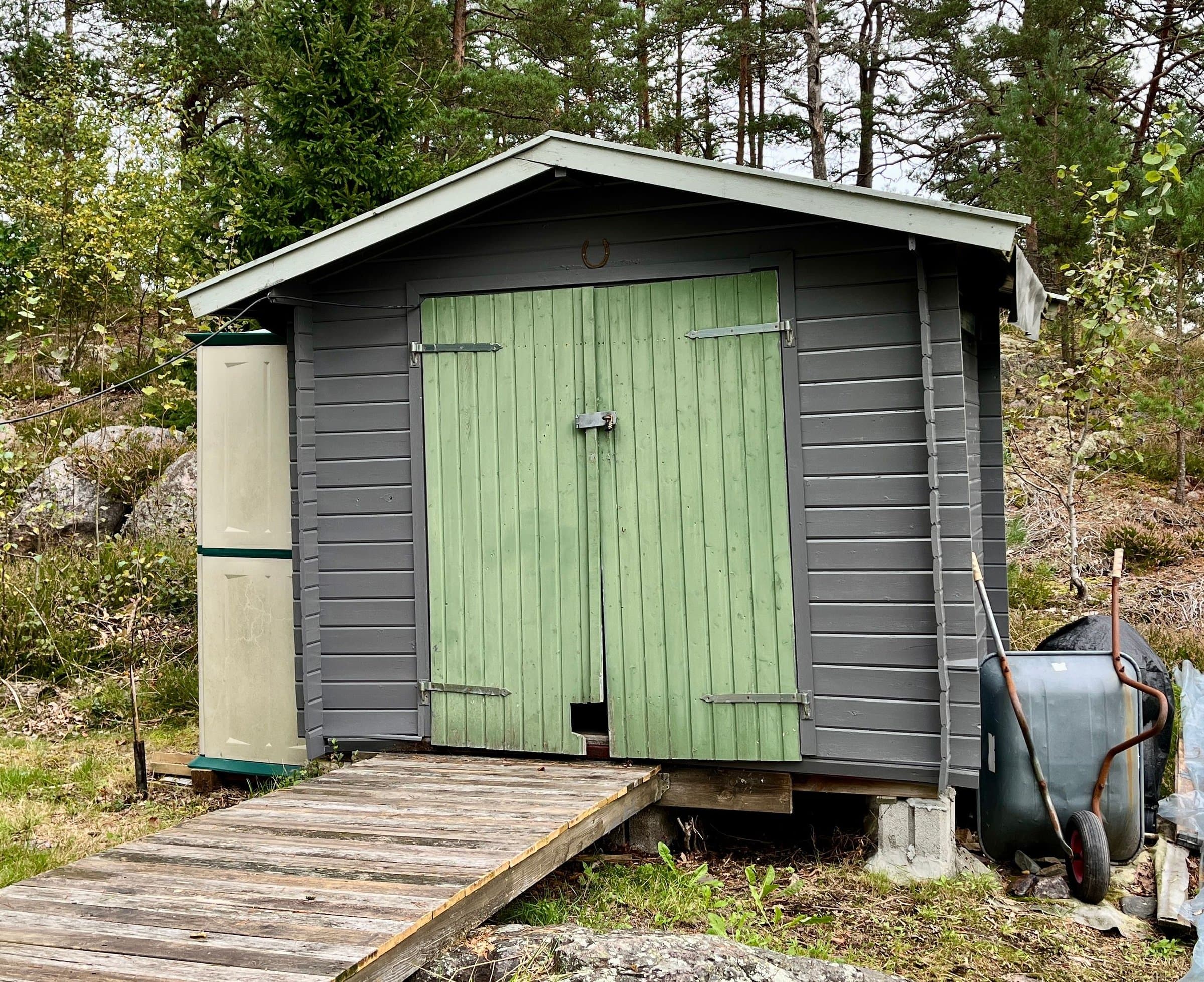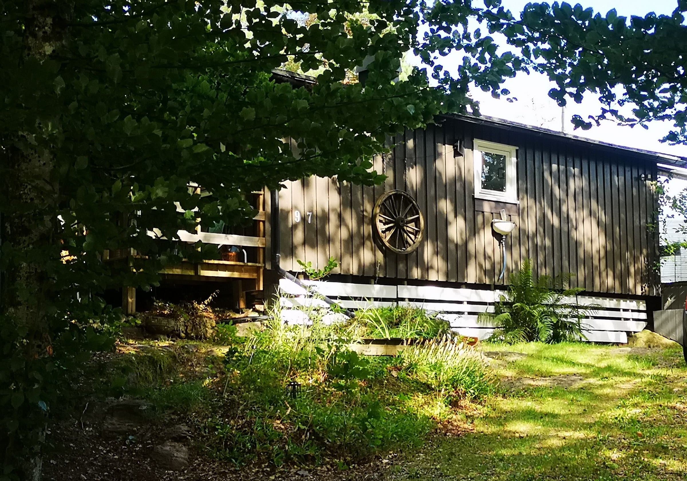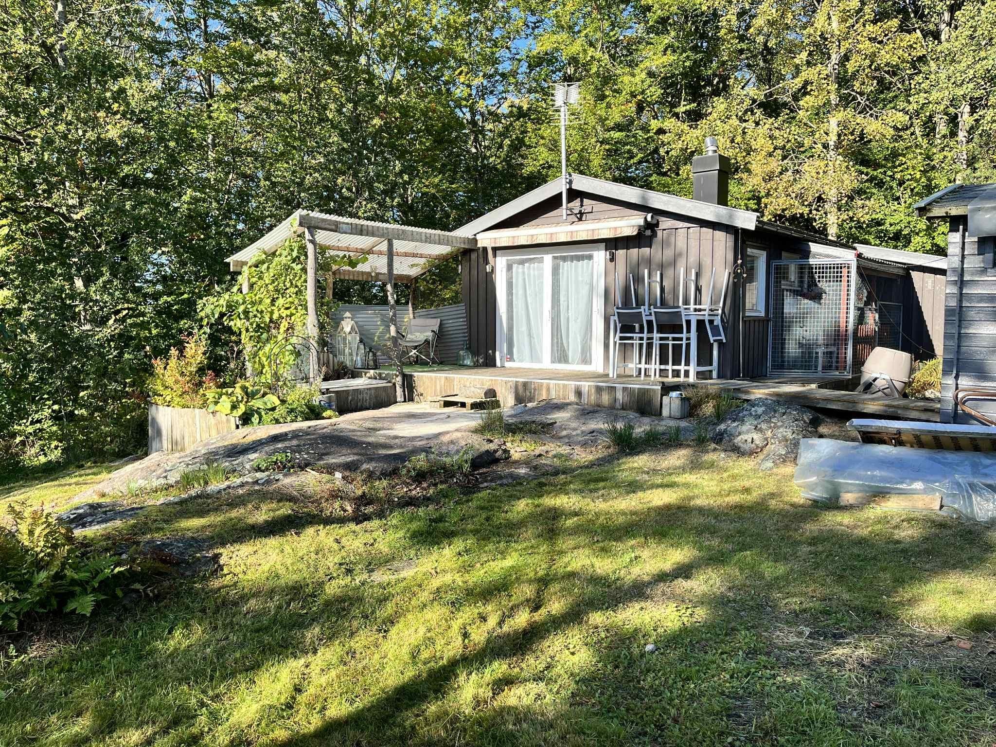 Består av 2900kvm, hvorav 900 er hytten med hage, og 2000 består av blandingsskog, med oppgruset plass for campingvogn ol. I tillegg til hytten, vil du finne drivhus, utedo, pumpehus, bod og luftegård til katt. Skogen er vedlikeholdt som en slags matskog, hvor man finner matsopper med mer, og i hagen finner man flere forskjellige bærbusker. En gruset plass ved de 2 høye stubbene nede i skogen, passer perfekt for hengekøye og avslapping i den svale skyggen. Ellers kan man sitte ved dammen og se på rompe troll. De 2 dammene, skaper en oase for dyrene i området. Her kan man observere flere ulike dyr, både sjeldne og mer vanlige. Det er et 15kvm bed like ved hytten, hvor det er plantet spiselige vekster, mellom de forskjellige blomstene. Og i utebadet på terrassen, kan man slappe av under druerankene. Et paradis for de som ønsker å nyte naturen, uten å forlate egen tomt.
