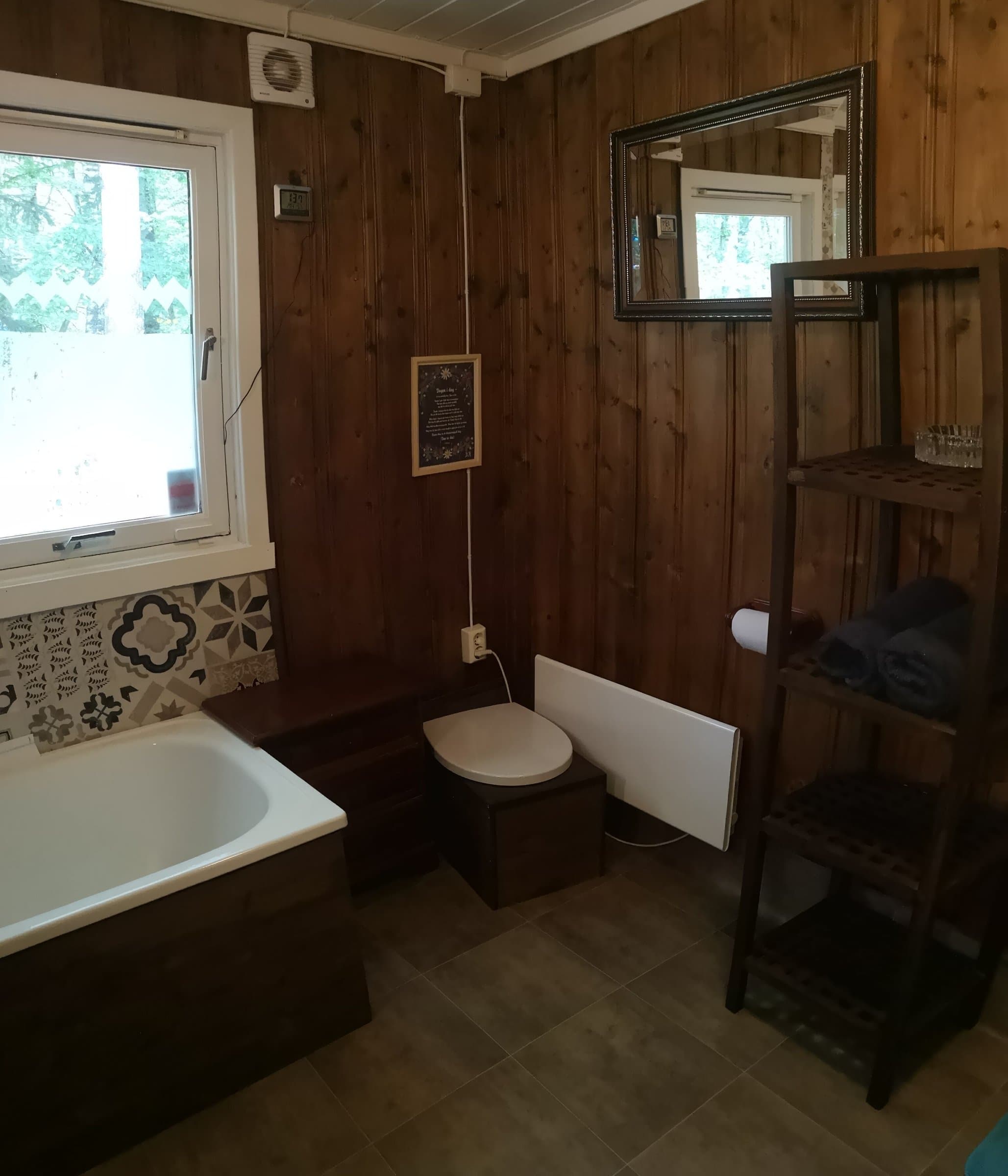 Pumpe i brønn og brønnhus, ble oppdatert våren 2025. Varmepumpe fikk også service utført. Det er innlagt helårsvann med varmekabel, gråvann har utløp i sandfilter under øvre parkeringsplass. Alt har fungert strålende, sommer som vinter. Hytten kan også lett vinterstenges. Badet har pr idag, kun et enkelt separasjonstoalett, men det er lagt opp strøm til forbrenningstoalett og det er også plass under hytten, dersom man ønsker å benytte snurredo. I tillegg til peis i stuen, er det også installert varmepumpe. Bad og soverom er utstyrt med vegghengt elektrisk varmeovn. Det er mulig å etterisolere under hytten, men det har vært enkelt å holde komfortabel temperatur inne om vinteren. Loftet er isolert nedover, takluke er tilgjengelig i gangen for inspeksjon.
