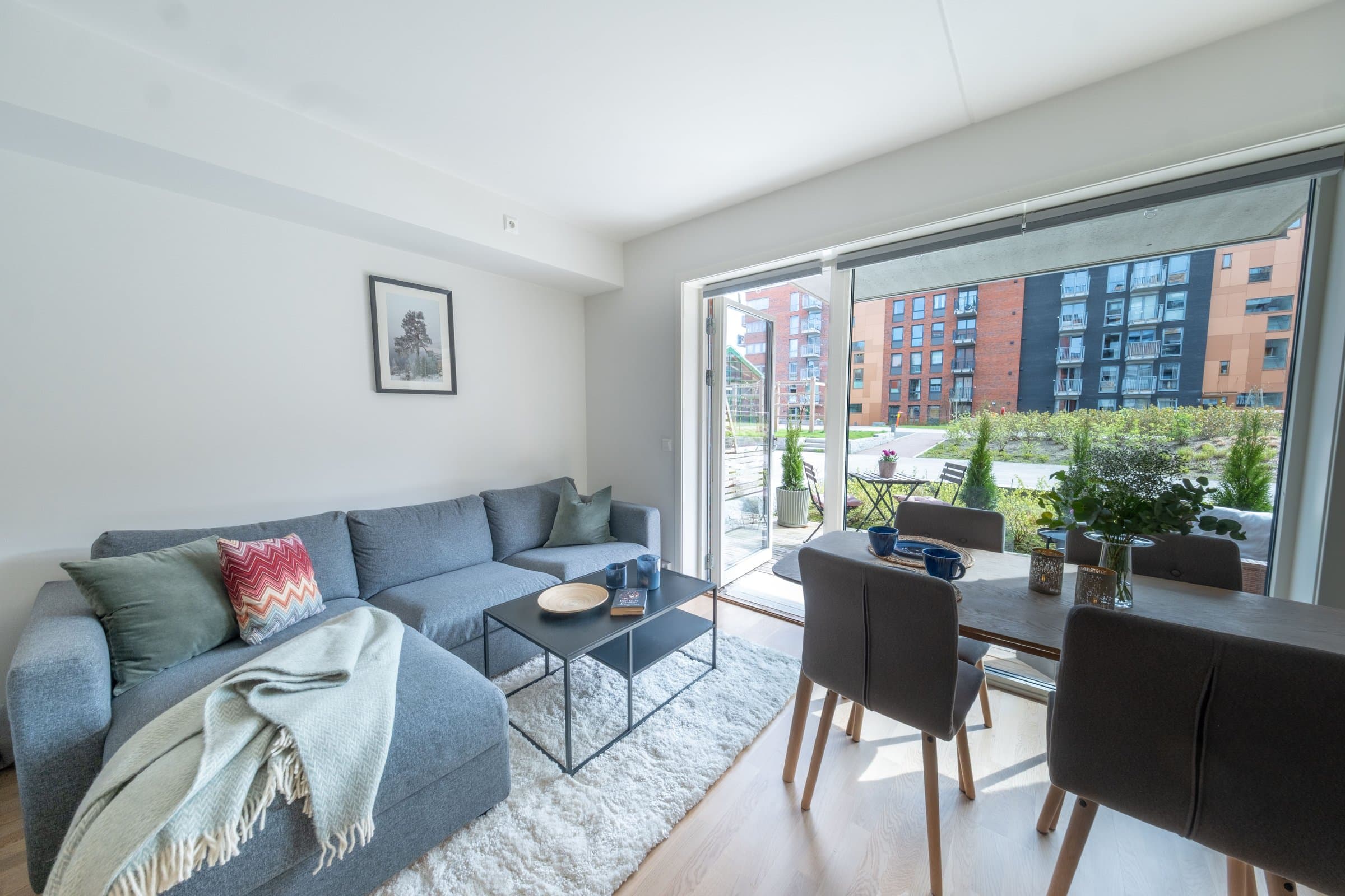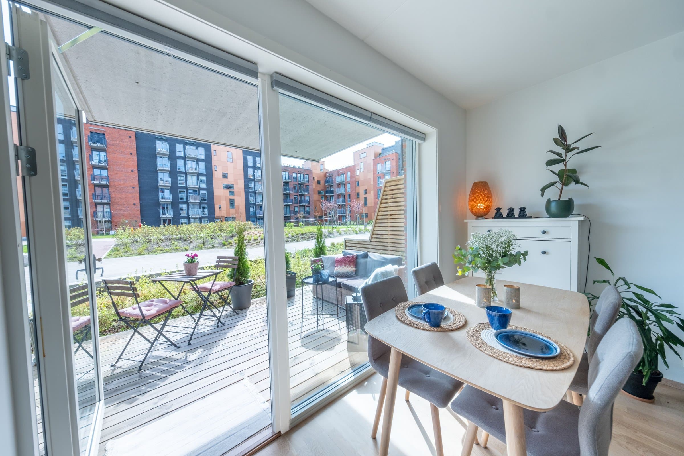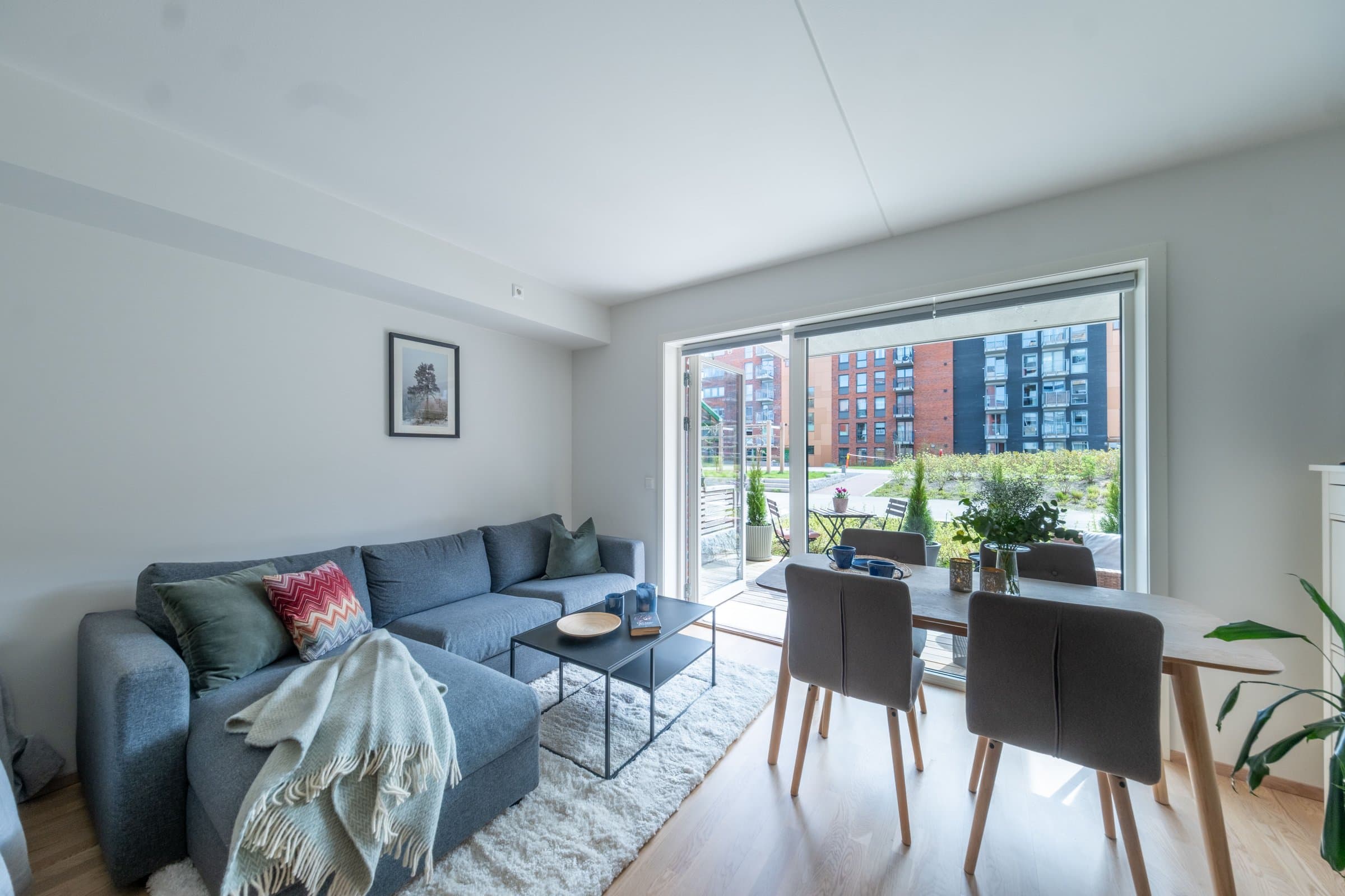 Kort gangavstand til offentlig transport. Kort gangavstand til butikk, kafé, restaurant og Triaden kjøpesenter. Gode turmuligheter kun et par hundre meter utenfor døren.