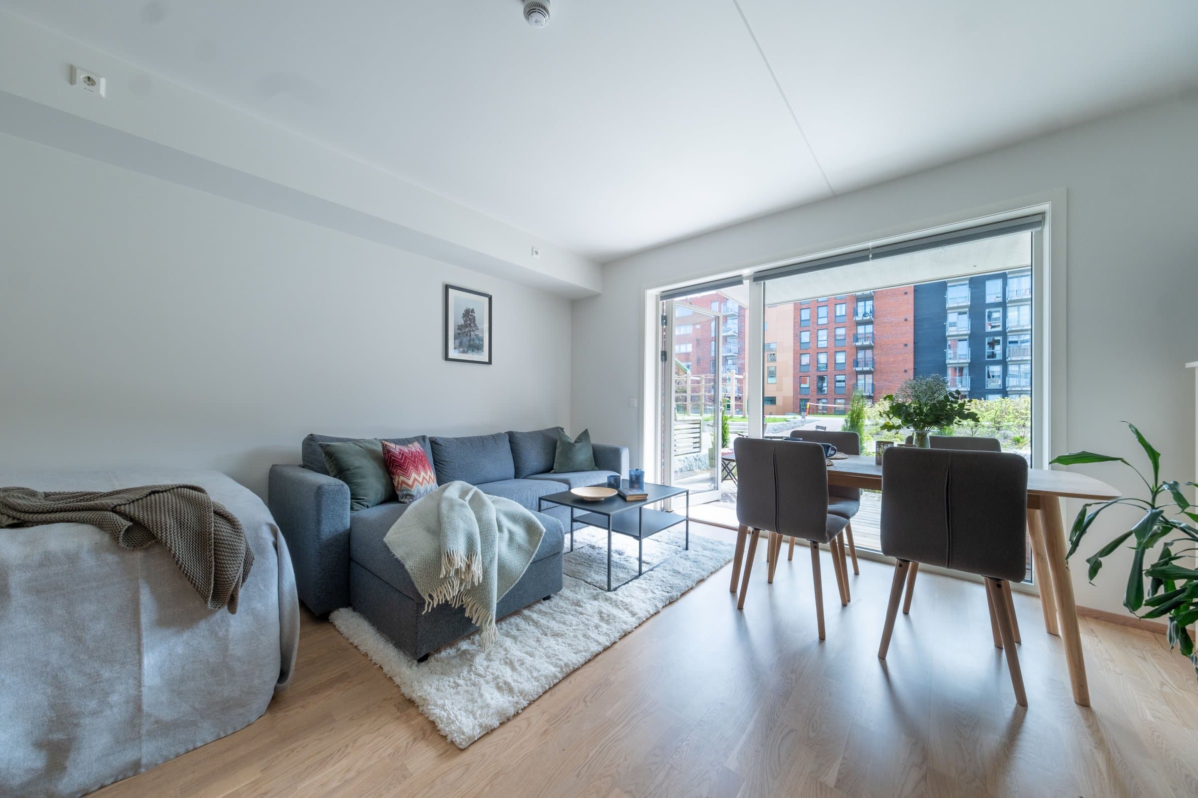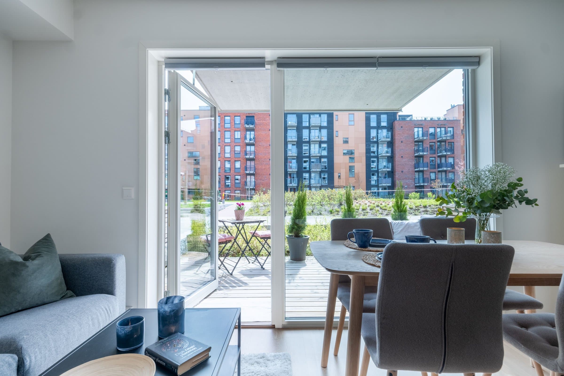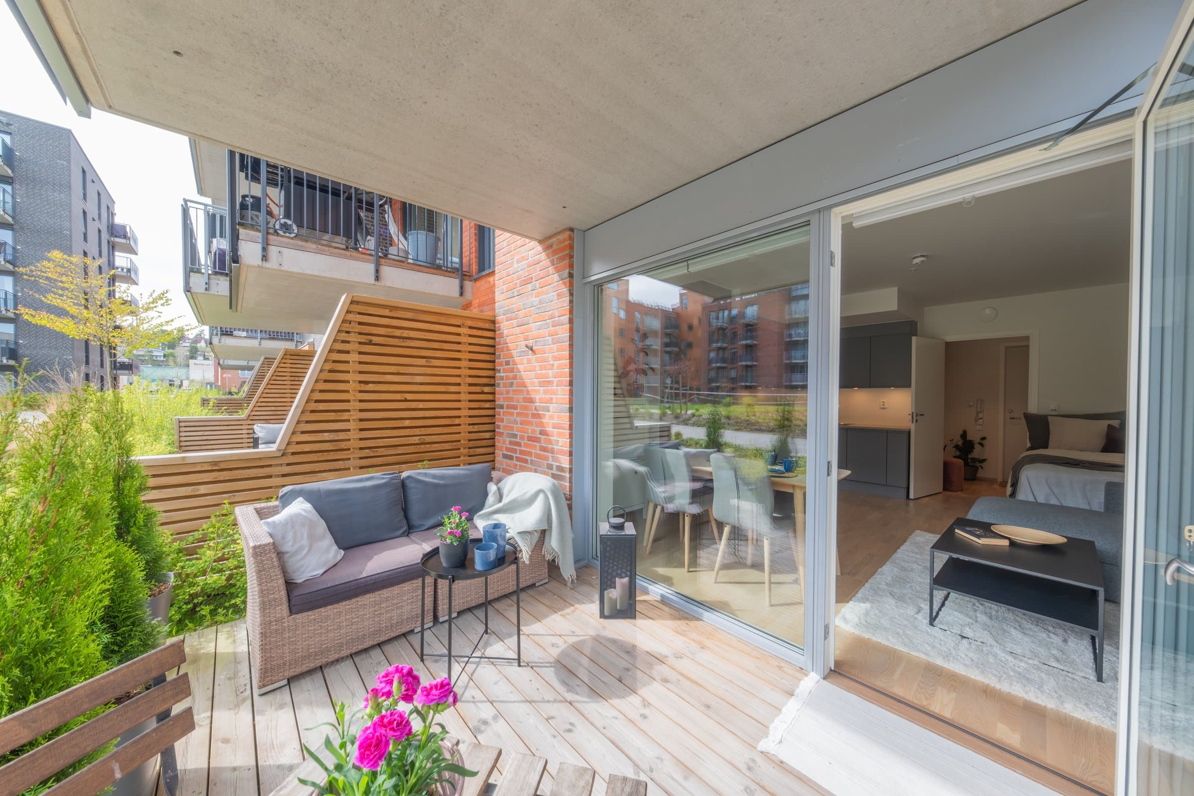 Kort gangavstand til offentlig transport. Kort gangavstand til butikk, kafé, restaurant og Triaden kjøpesenter. Gode turmuligheter kun et par hundre meter utenfor døren.