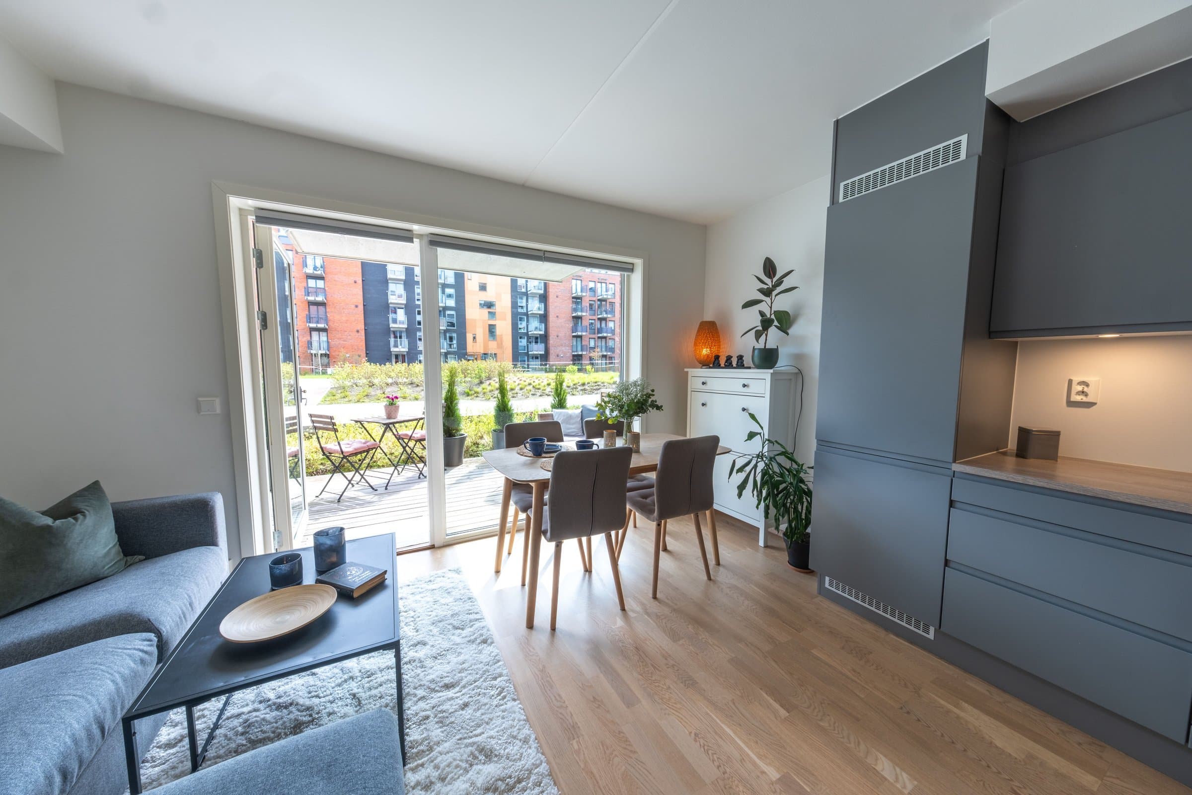 Stilren 1-roms leilighet i Bjarne Haugens gate 38. Leiligheten stod ferdig i 2021 og ligger i et populært området på Finstadjordet. Her bor du sentralt med kun få minutters gange til restauranter, kafeer og Triaden kjøpesenter. Leiligheten har en terrasse på 10kvm med god plass til både sittegrupper og planter, egen bod i fellesområdet og tilgang til felles takterrasse. Leiligheten holder høy standard med 1-stavs parkett, integrerte hvitevarer, justerbar ventilasjon og vannbåren varme. Varmtvann, fjernvarme, internett og kabeltv er inkludert i felleskostnadene. Perfekt leilighet for førstegangskjøpere. Kort fortalt: -Andelsleilighet fra 2021 -Romslig terrasse og felles takterrasse -Sentral beliggenhet med nærhet til "ALT" -Perfekt førstegangskjøp