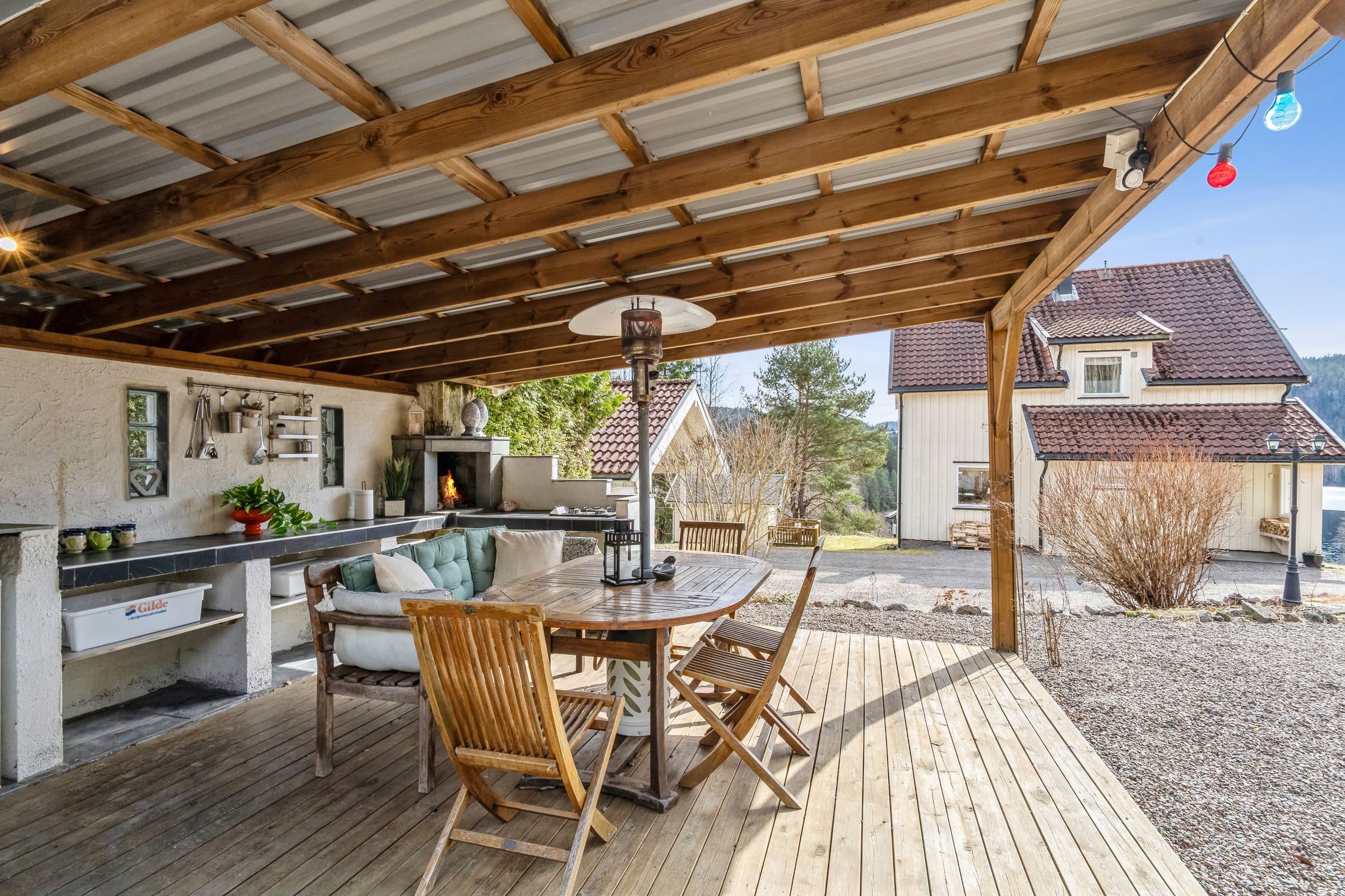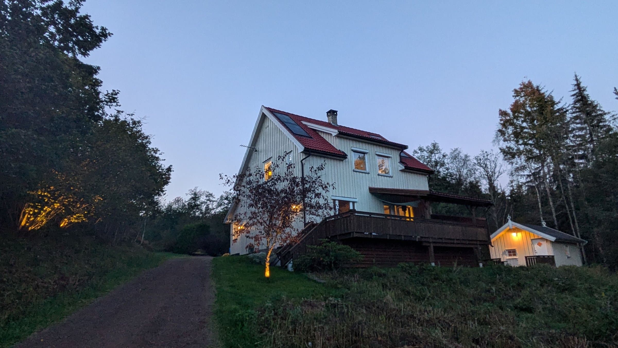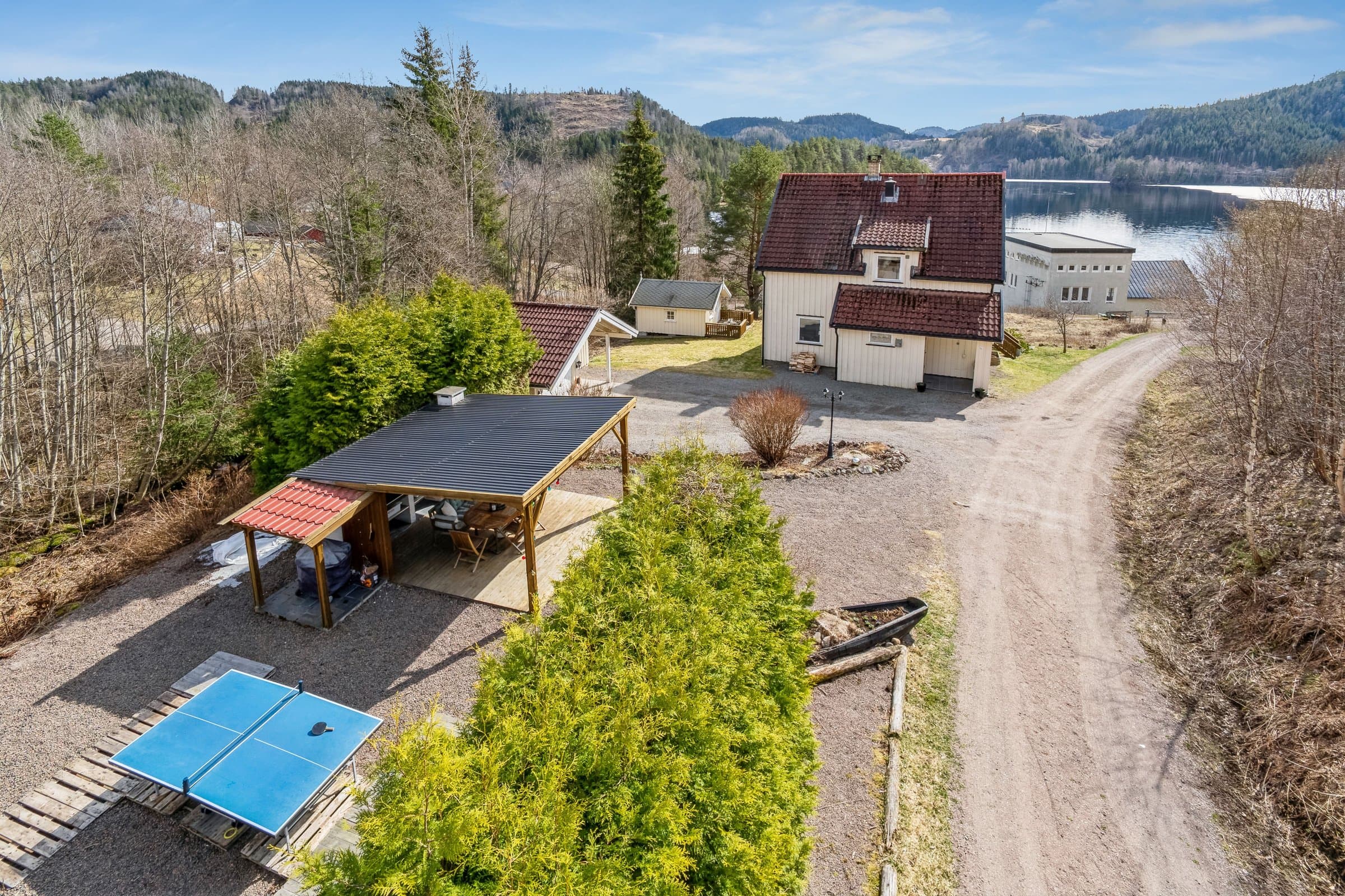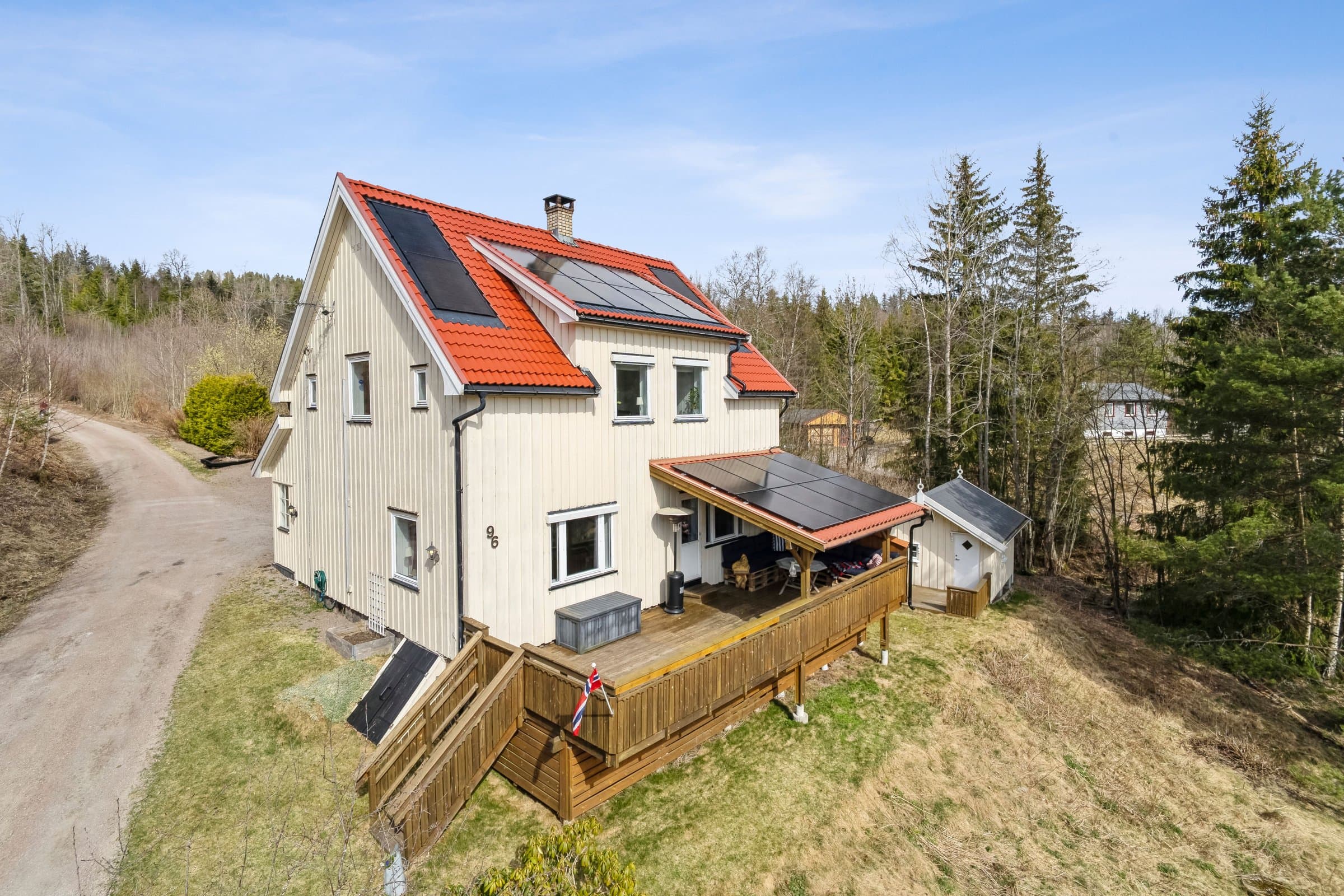 Velkommen til Lakssjøveien 96! Dette er en fantastisk eiendom som ligger usjenert til med nydelig utsikt over Lakssjø. Eiendommen har flotte utendørs muligheter med et utekjøkken med kjøleskap og ildsted, en stille bekk som renner ved siden av tomten og solen som varmer på den store sørvendte terrassen. Du får ro i sjelen av den gode stillheten uavhengig av om det er stjerneklar vinterhimmel eller en stille solnedgang i august. Innvending har eneboligen gjennomgående høy standard med et flott kjøkken fra Epoq med integrerte hvitevarer og varmekabler i gulvet. Stor og åpen stue med mye naturligt lys fra solen i sør. En entré med varmekabler i gulvet og et toalett med varmekabler finner du også i første etasjen. Tregulv og laminatgulv med hvite innvendig panel på vegger i alle rom. God takhøyde og store vinduer. Sørvendt terrasse med sol hele dagen. I andre etasje finner du et praktisk rom med mulighet til vaskemaskin (2021), et litet kontor, fint bad med varmekabler og 3 flotte soverom. Eiendommen har garasje med lademuligheter til elbil (opp til 7,2kw), hobbyrom og et koselig anneks/gjestehus (med strøm). På taket finner du et integret solcelleanlegg fra 2023 på 8kw (installert av Elektro Team Skien) som du kan følge i realtid med app. Det ble lagt nytt tak på sørsiden samtidig med instalasjon av solceller. Fiber internet er tilgjengelig med hastighet opp til 1000 Mb/s. God plass i kjeller og boder til oppbevaring. Eneboligen har varmepumpe, peis, sentralstøvsuger og sentralt vannfilter installert (2020). Elskap med automatsikringer. God plass til parking av flere biler.