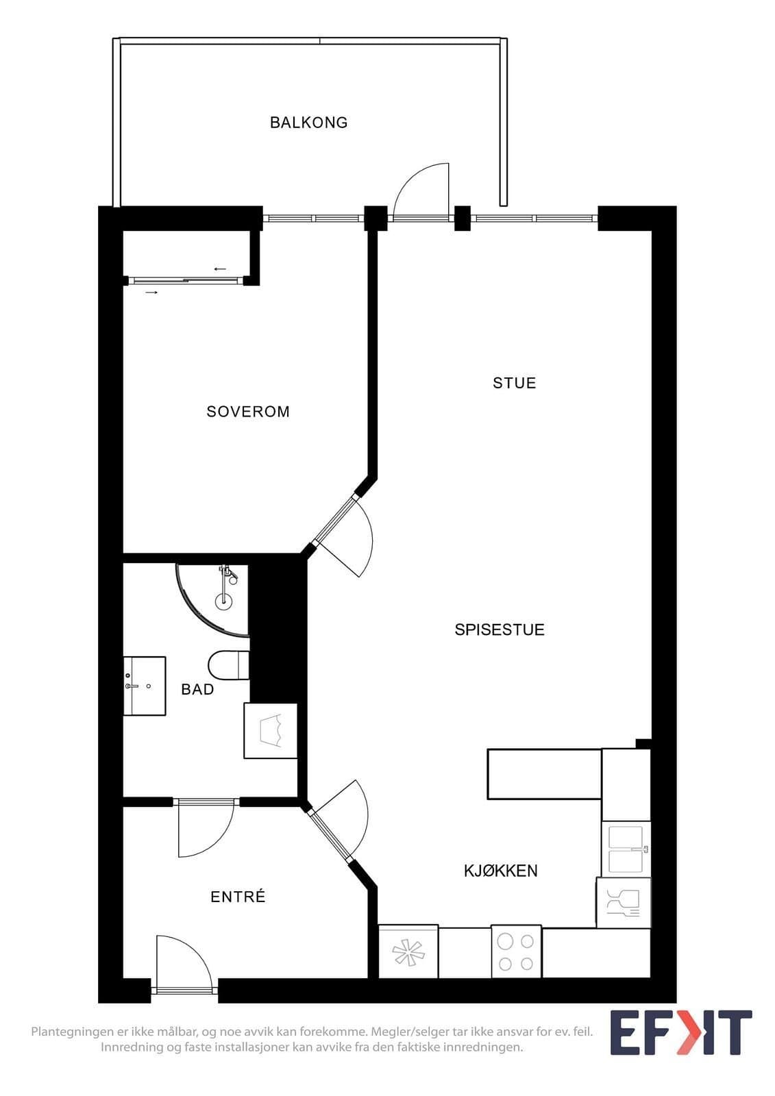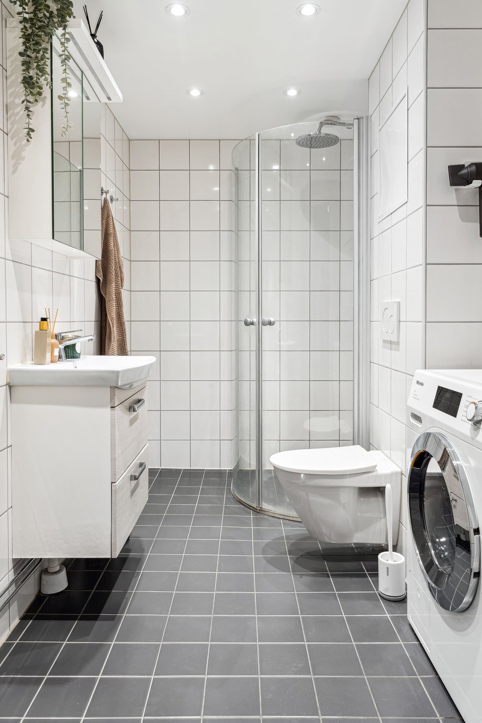 Kjøkken: Leiligheten har en åpen stue- og kjøkkenløsning med delikat kjøkkeninnredning fra 2021 levert av Ikea. Innredningen har gode oppbevaringsmuligheter i over- og underskap, fronter i en delikat grønnfarge, heltre benkeplate med nedfelt kum i rustfritt stål og ettgreps blandebatteri. Videre er kjøkkenet utstyrt med helintegrerte hvitevarer som induksjon platetopp, stekeovn, kjøle-/ fryseskap og oppvaskmaskin. Det er montert vannstopper med magnetventil og komfyrvakt over stekesonen, samt en lekker ventilator i sort utførelse. Bad: Tidløst og innbydende flislagt baderom som ble pusset opp i regi av sameiet i 2014. Baderommet har opplegg for vaskemaskin, termostatstyrte varmekabler i gulv, mørke fliser på gulv og lyse vegger, samt senket himling med innfelte downlights. Baderomsinnredningen består av servantskap med helstøpt servant, speilskap, vegghengt toalett og dusjhjørne med buende svingdører av herdet glass, sluk av plastmateriale med klemring og synlig membran. Avtrekksventil og luftespalte under dørterskel for ventilasjon. Soverom: Romslig soverom meg god plass til bred dobbeltseng, nattbord, kontorpult og garderobeløsning. Soverommet vender ut mot skjermet og hyggelig gårdsrom. Stue: Fantastisk stue med plass til fin sofagruppe og tilhørende mediemøblement, samt stor spisestue. Stuen er et flott oppholdsrom som innbyr til sosialt samvær. Kombinasjonen av rommets større Balkong: Fra stuen er det utgang til en sydvestvendt balkong på ca. 7 m². Balkongen har betongdekke belagt - et fint sted å nyte solen fra morgen til kveld. Vinduer og ytterdør: Leiligheten har slett entrédør med sikkerhetslås (ukjent brannklasse, lydklasse 35 dB). Helt nye vinduer og balkongdør med tolags isolerglass fra 2024. Entré/gang: Romslig og praktisk entré med god plass til oppheng av yttertøy, plassering av sko og garderobeløsning. Fra entréen har du tilgang til tidløst og pent baderom, før du trer ut i et luftig oppholdsrom. Dørcalling er montert på vegg ved siden av brannklassifisert og lydisolert entrédør.