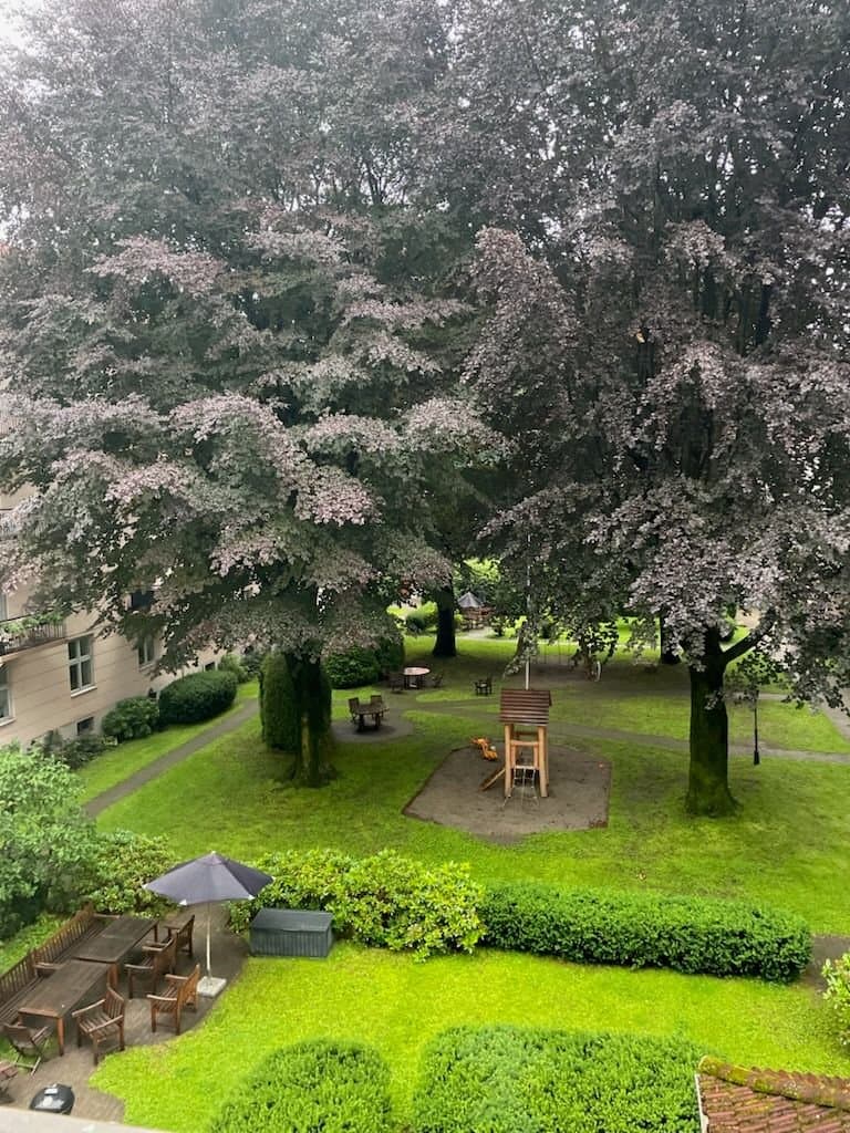 Leiligheten har en svært god beliggenhet. Det er stille og rolig her, men om man går et lite minutt, så går det busser i ulike retninger, det samme med trikkene, for ikke å snakke om t-banen, som tar deg til Nasjonalteateret på få minutter. Vi kan bruke under 30 minutter fra vi går ut døra, til vi står i sikkerhetskontrollen på Gardermoen. Man har alt i umiddelbar nærhet. Cafeer, restauranter, puber, klesbutikker (Bogstadveien), senter (vinmonopol), dagligvarer (også åpent søndager), bibliotek, parker og lekeplasser. Det er med tungt hjerte at leiligheten selges og vi flytter bort fra dette fine nabolaget.