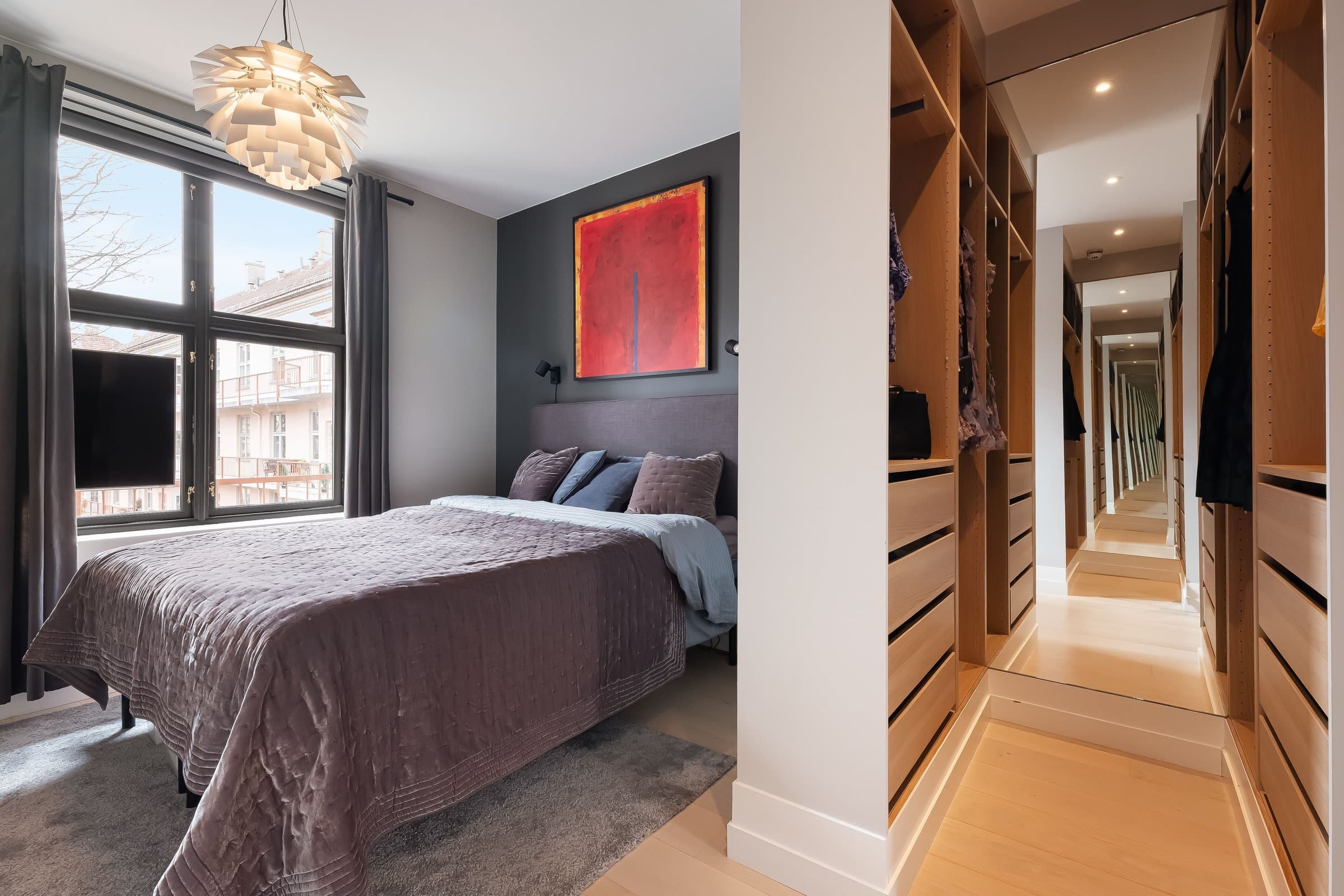 Svært lekker og totalrenovert 3-roms leilighet i 3.etasje i bygård sentralt på Majorstua. Leiligheten har etter oppussing en gjennomtenkt og god planløsning med store rom, estetisk pene og smarte løsninger som blant annet mye garderobeplass. Ellers består leiligheten av: entré, bad, kjøkken, stue og to soverom, samt tilgang til solrik og stor brannbalkong med plass til sittegruppe. 1-stavs eikeparkett med deilig gulvvarme. God takhøyde og store vindusflater. -Totalrenovert i 2019 -All dokumentasjon foreligger! -Varme i alle gulv -Skjult elektrisk anlegg med tilfredsstillende mange stikkontakter -Soverommene vendt mot bakgård -Stemningsfull peis -Høy standard -Plassbygde skap/garderobe (over 11 meter totalt) -Plassbygd bokhylle med underskap -3 boder med masse oppbevaringsplass (kjeller og loft) -Lave felleskostnader -Godt drevet aksjelag -Dyrehold tillatt