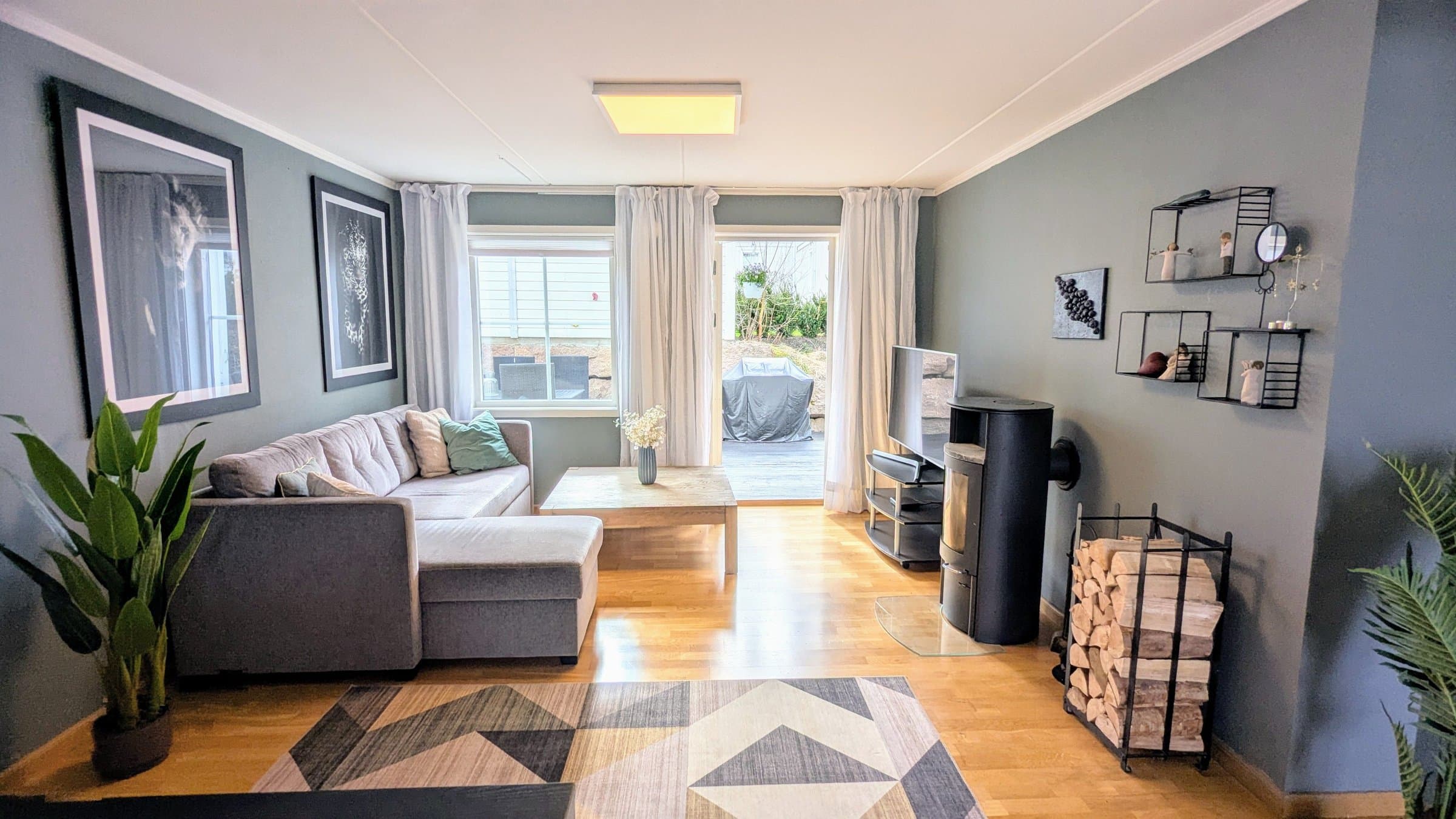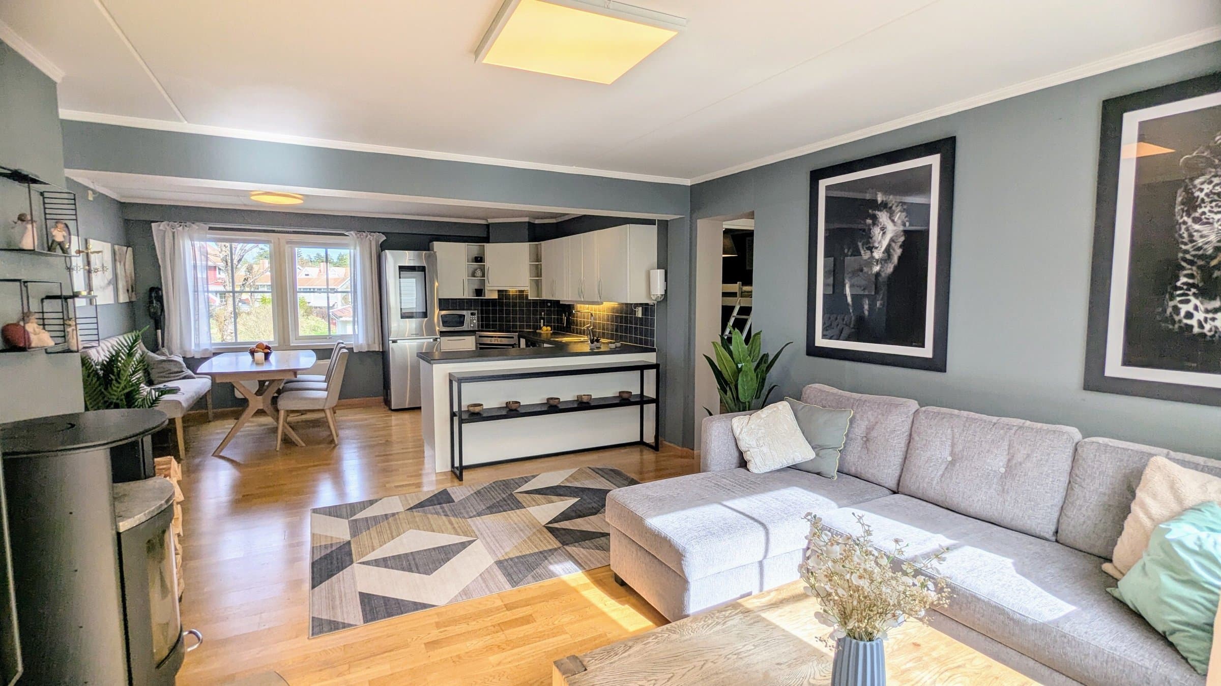 Pen og gjennomgående 5-roms selveier | solrike utplasser | garasje m/ el-lader | Sentralt