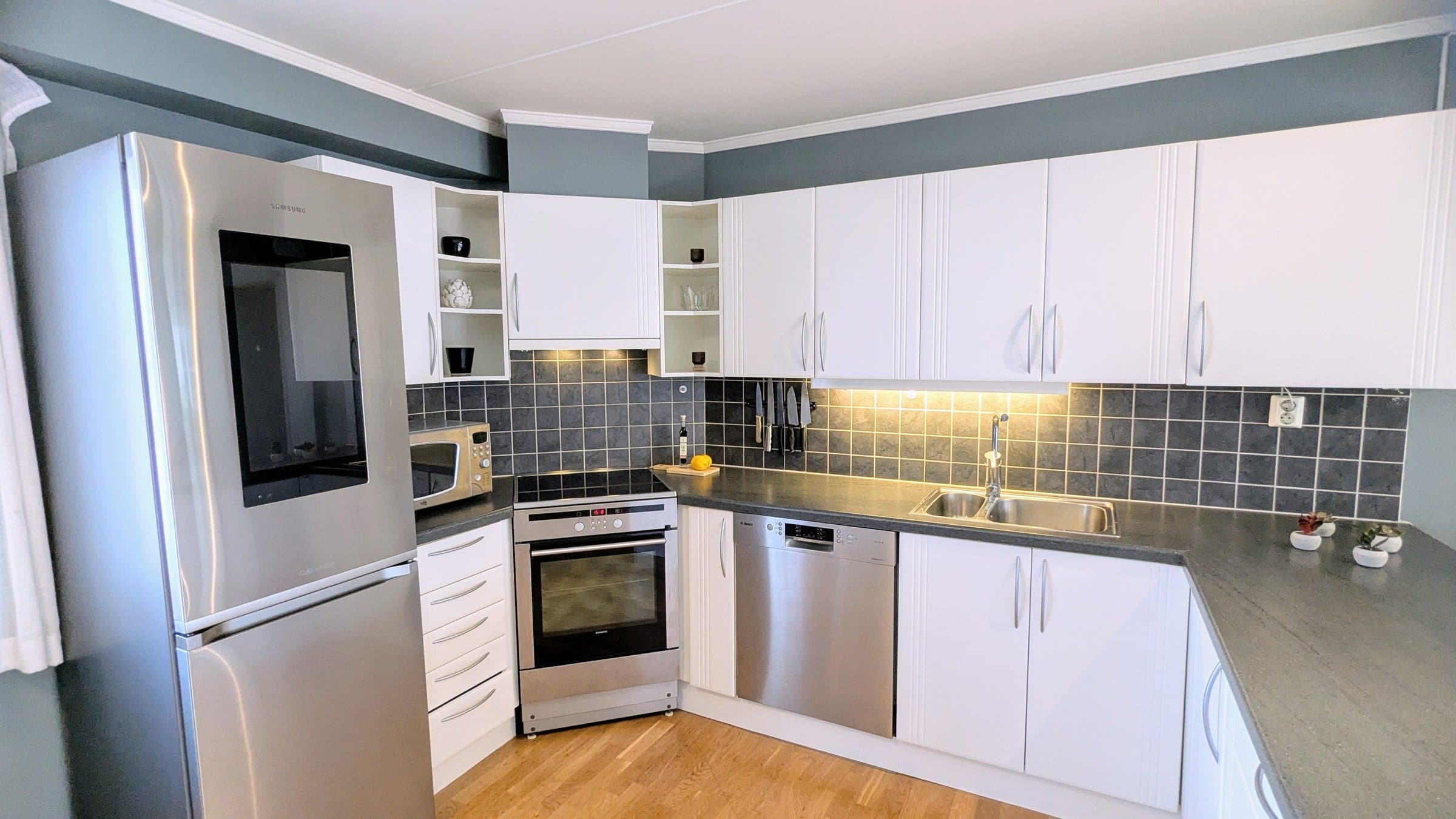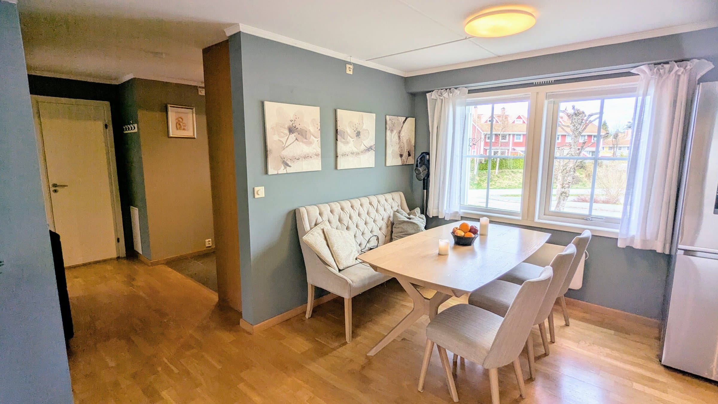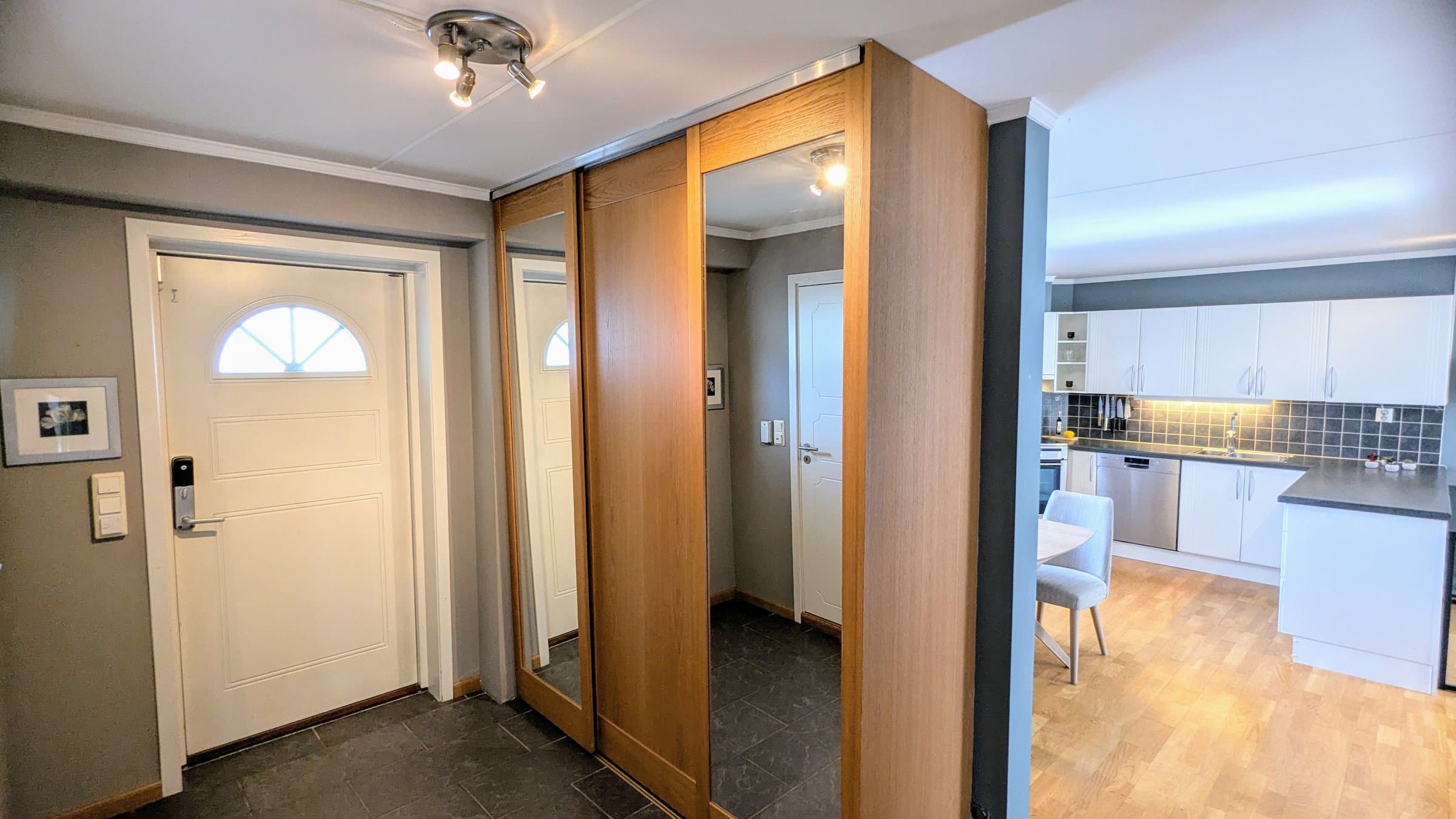Flytt rett inn i en 5-roms selveierleilighet med terrasse og garasje. Velkommen til en innbydende leilighet i første etasje med trappefri adkomst, og solrike utplasser. Boligen har et tidløst design og er malt i moderne farger. Leiligheten har en god planløsning med blant annet åpen stue-/kjøkkenløsning, fire gode soverom, ett bad og en flott balkong. Rommene har store vindusflater som slipper inn rikelig med naturlig lys. Perfekt for både småbarnsfamilier, par eller deg som ønsker litt ekstra plass. Kort om boligen: 4 gode soverom m/ garderobe Praktisk bad m/ opplegg for vaskemaskin Garasje med elbillader 2 boder av god størrelse Godt med parkeringsplasser i kort gangavstand Egen inngang og enkel adkomst fra bakkeplan Stor og hyggelig terrasse Barnevennlig og rolig område Gangavstand til skole, barnehage, butikk og kollektivtransport