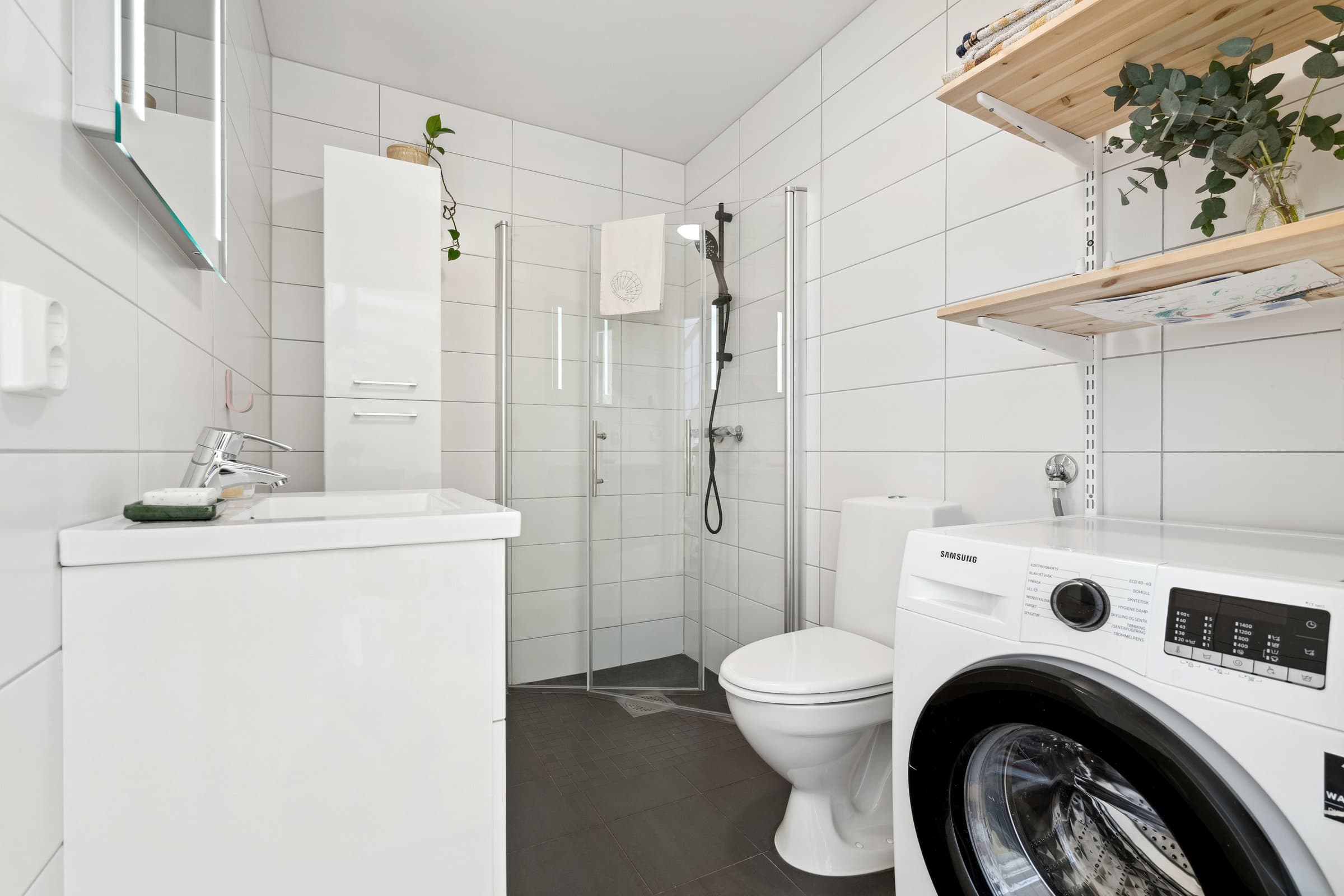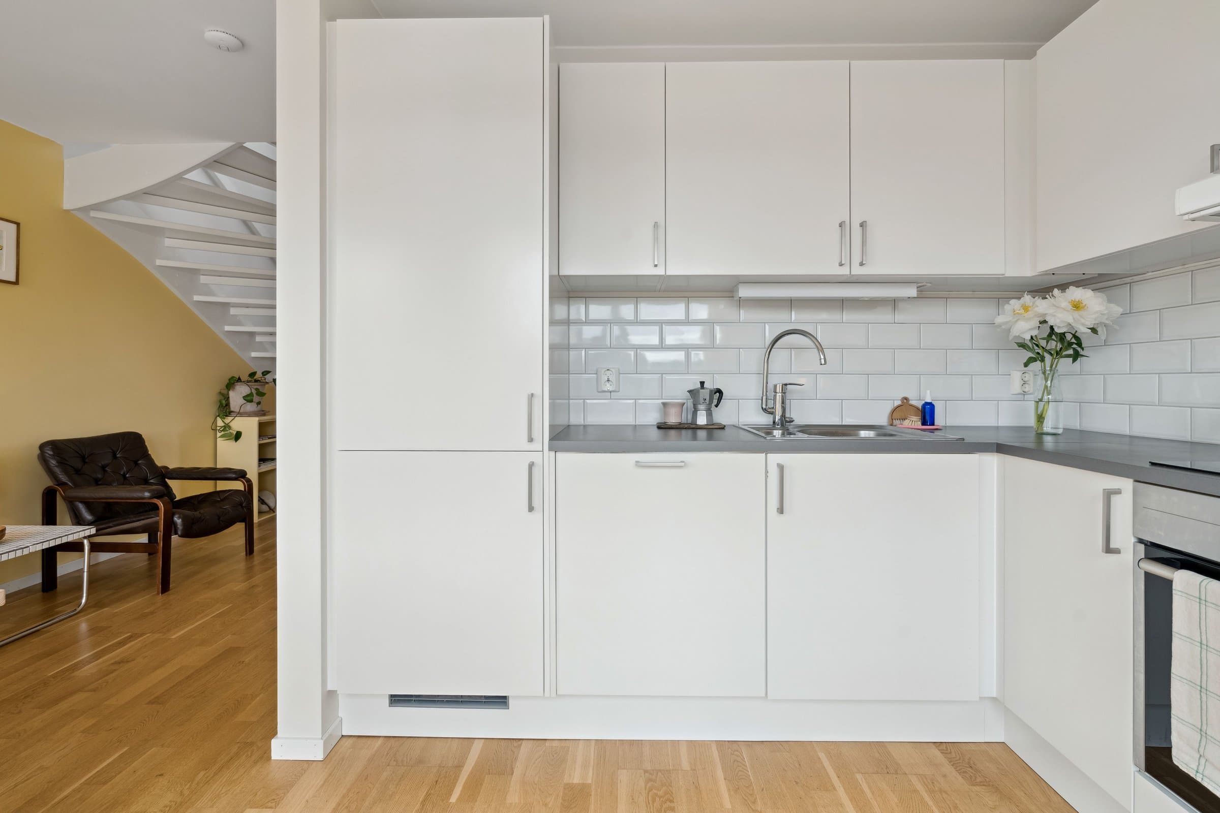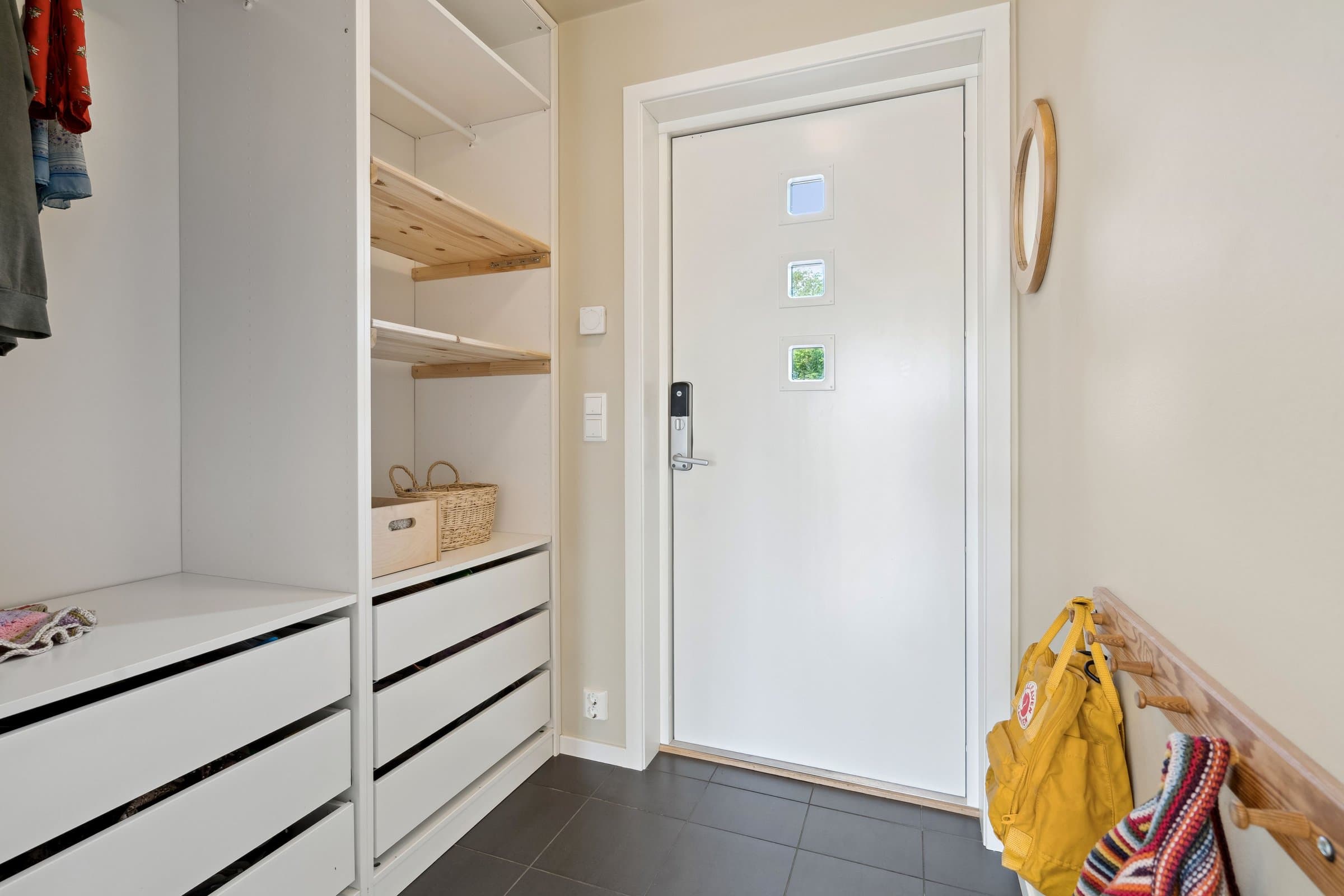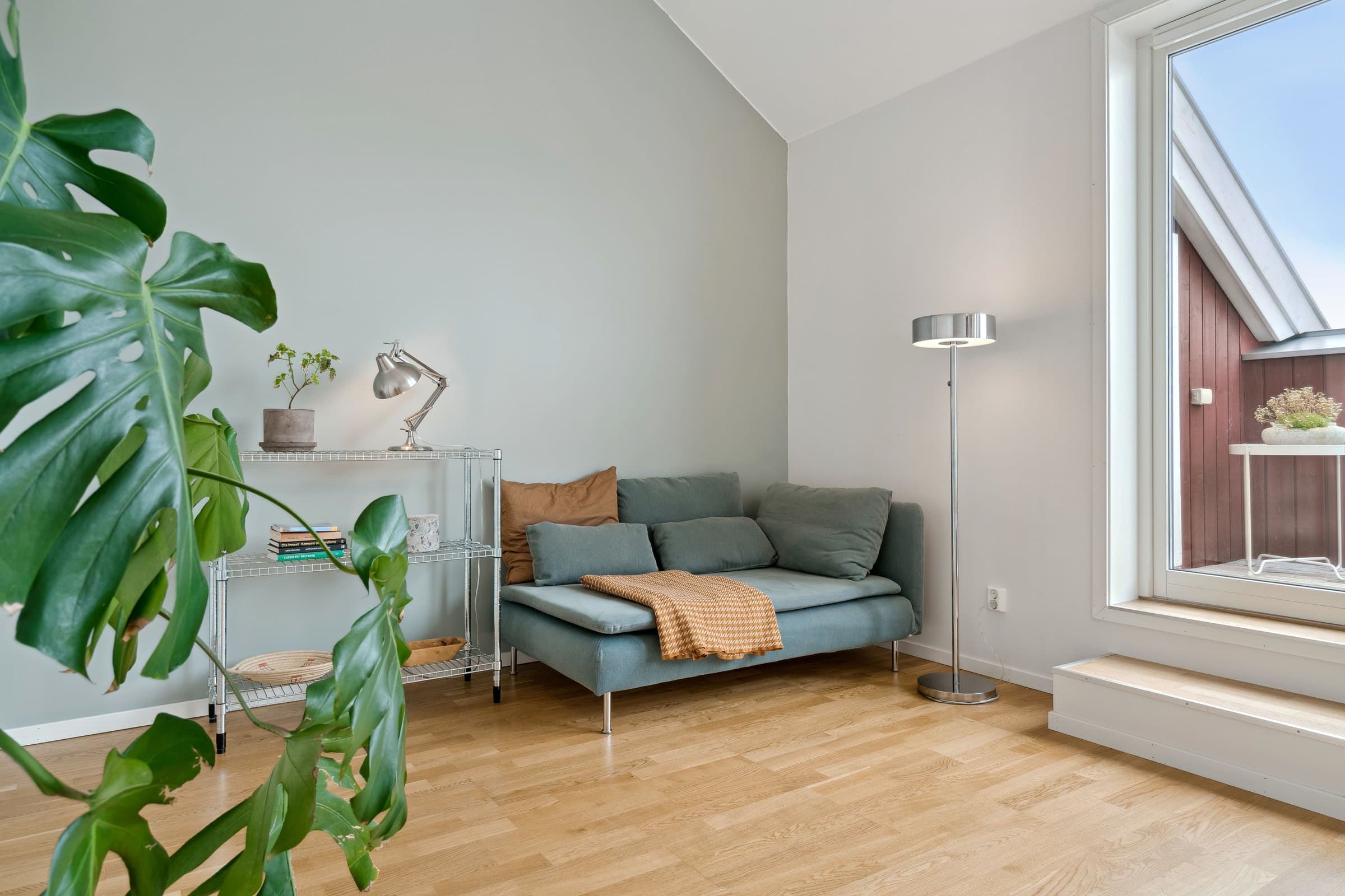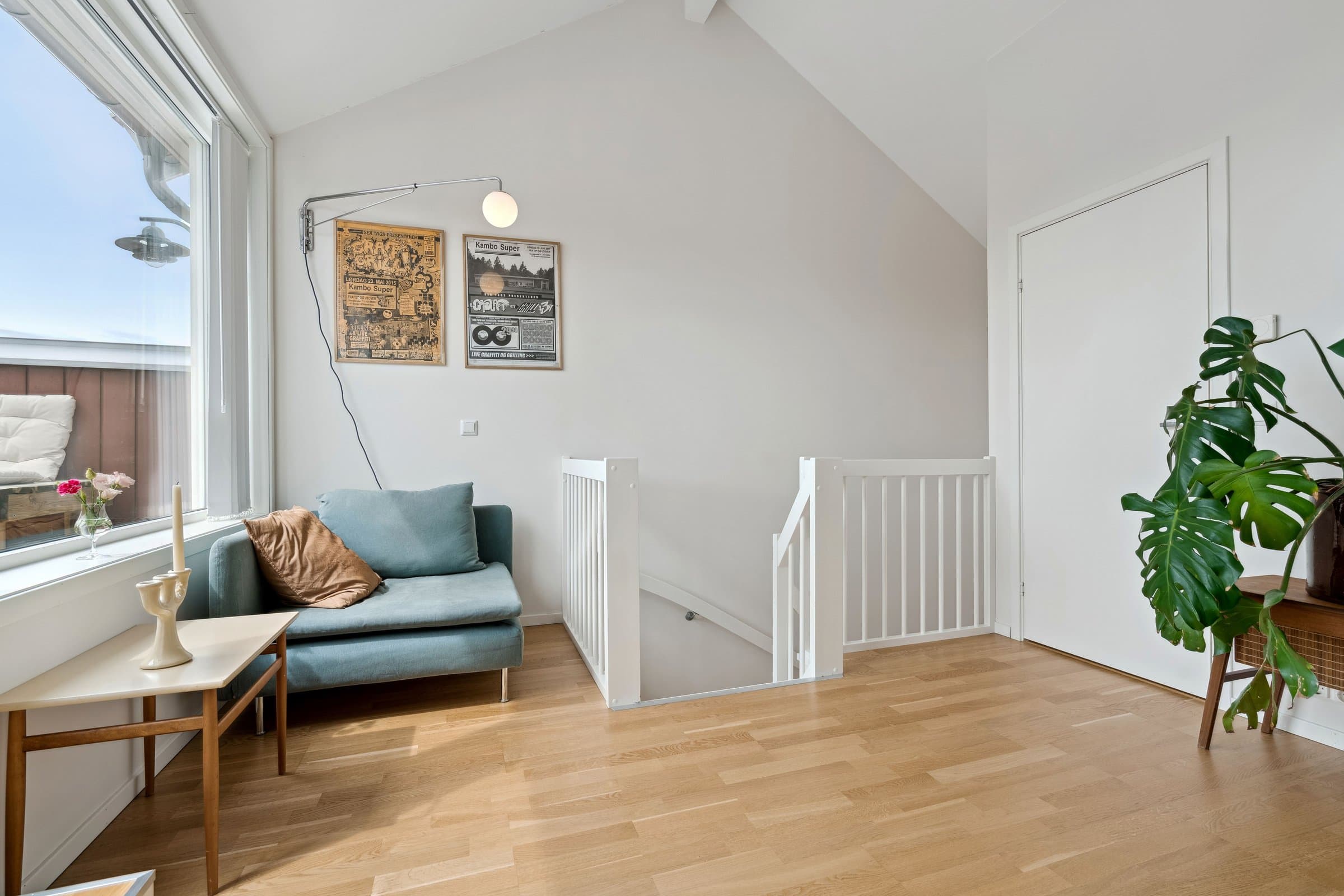 Velkommen til Elvebredden 59! Dette er en romslig og lys selveierleilighet oppført i 2017, med gjennomgående moderne standard. Boligen går over to plan. Første etasje: inngangsparti med balkong, gang, bad, kjøkken med åpen løsning og fransk balkong, og soverom nr. 1. Andre etasje: Stue, soverom nr. 2, altan, innendørs og utendørs bod. Det er vannbåren gulvvarme i samtlige rom utenom boder. Gulvvarme og varmtvann er inkludert i felleskostnader. Strømpris utenom dette pleier derfor å være lav. I tillegg har boligen sportsbod på bakkeplan, samt egen parkeringsplass (mulighet for utleie av p-plass). Sameiet har 16 enheter. Fellesområdene er pent opparbeidet med blant annet fellesterasse med sittegruppe. Det er mulighet for å sette opp egen plantekasse på felles grøntareal. Sameiet er veldrevet og har god økonomi.