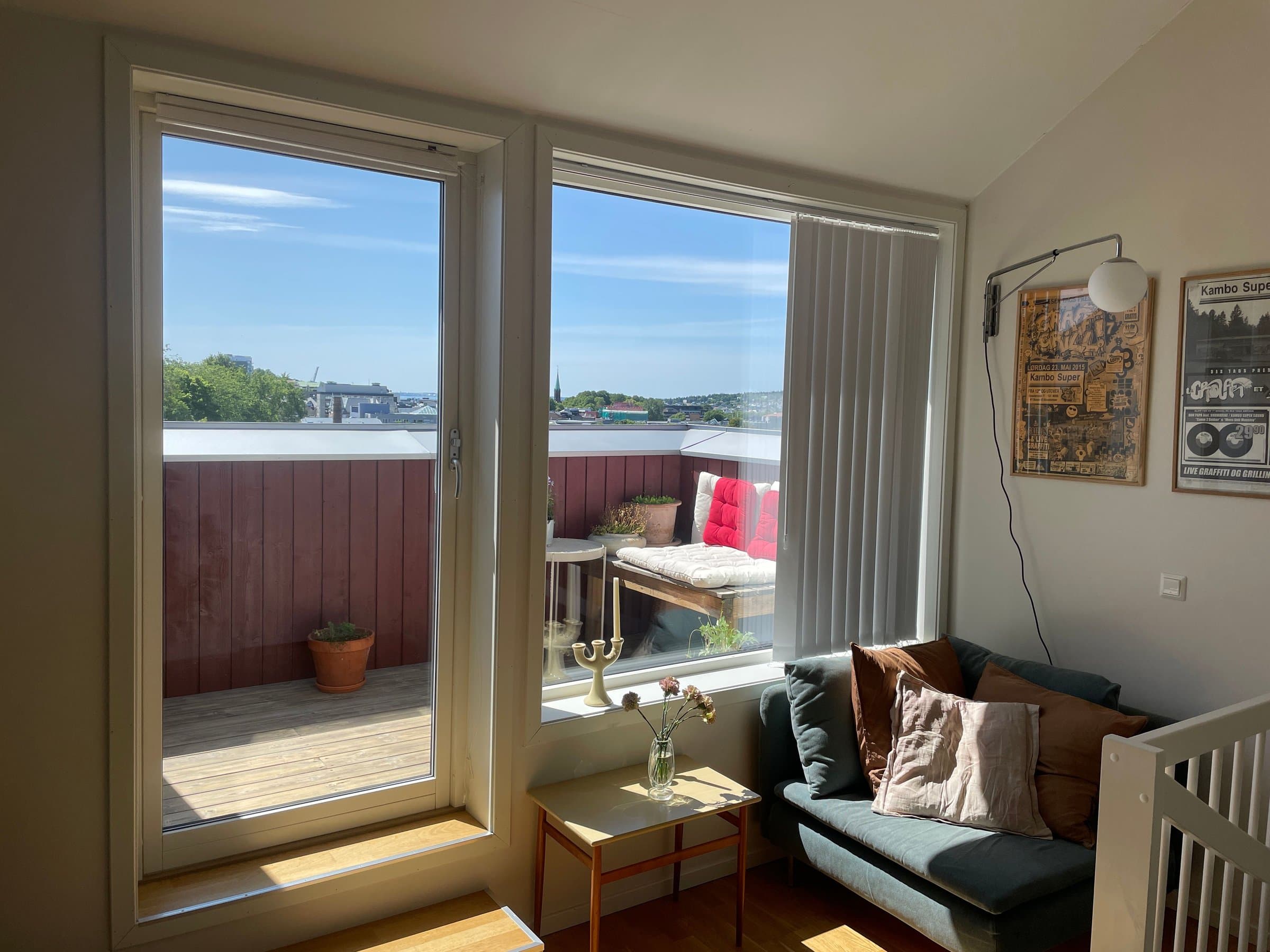 Sentral og naturnær 3-roms selveierleilighet. Egen parkering, to balkonger, mye bodplass, nærhet til E6. Lys og moderne.
