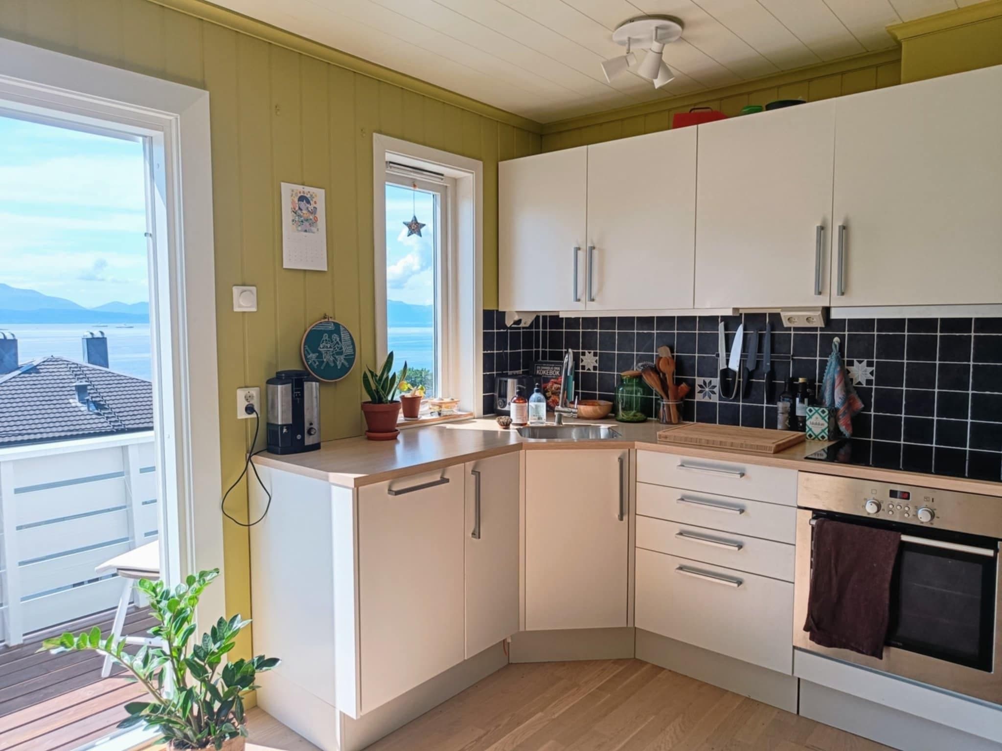 Kort om eiendommen: - Sentral beliggenhet rett vest for Molde sentrum i et populært og rolig område - En balkong med nydelig utsikt, som kjennes privat - Godt med lagring i boligens 3 boder - Kort vei til dagligvare, sentrum, Høgskolen, Aker stadion og Moldemarka