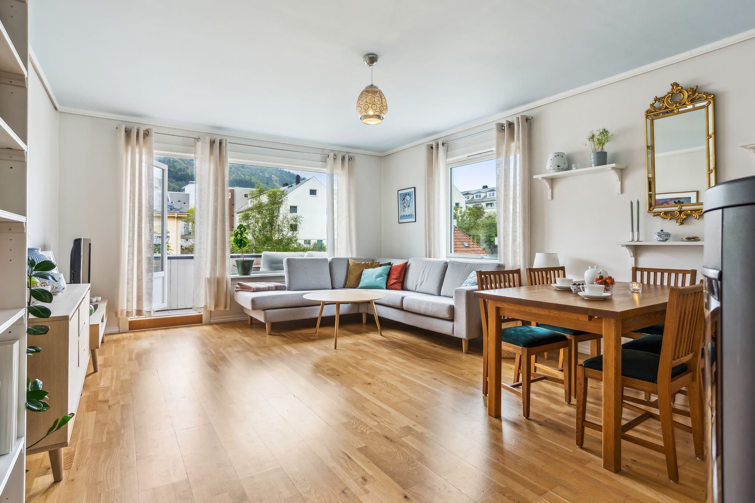 Velkommen til en lys og trivelig leilighet på Wergeland – et attraktivt og sentralt område med grønne omgivelser som Christieparken og Leaparken like i nærheten. Bybanen ligger bare noen få minutter unna, og både Høgskulen på Vestlandet og Brann Stadion er lett tilgjengelig til fots. I nærområdet finner du SATS, Rema 1000 og Bunnpris, samt flere hyggelige kafeer og restauranter – perfekt for både hverdager og helg. Høydepunkter • Bad og rør-i-rør-system fra 2016 • Store vinduer og altandør fra 2023 med flott lysinnslipp • Mye inkl. i felleskostnadene, bla. varmtvann, grunnpakke tv/internett • Peis • Vestvendt balkong med ettermiddagssol • To boder i kjeller og én på loft • Mulighet for leie av parkerings- og garasjeplass Området • 2 minutter til Bybanestopp • 4 minutter til søndagsåpen dagligvarebutikk • Gangavstand til både Ulriken og Løvstakken • Rolig og populært nabolag på Wergeland Innhold Gang, kjøkken, stue, to soverom, balkong, innvendig bod i tillegg til tre boder i bygget.