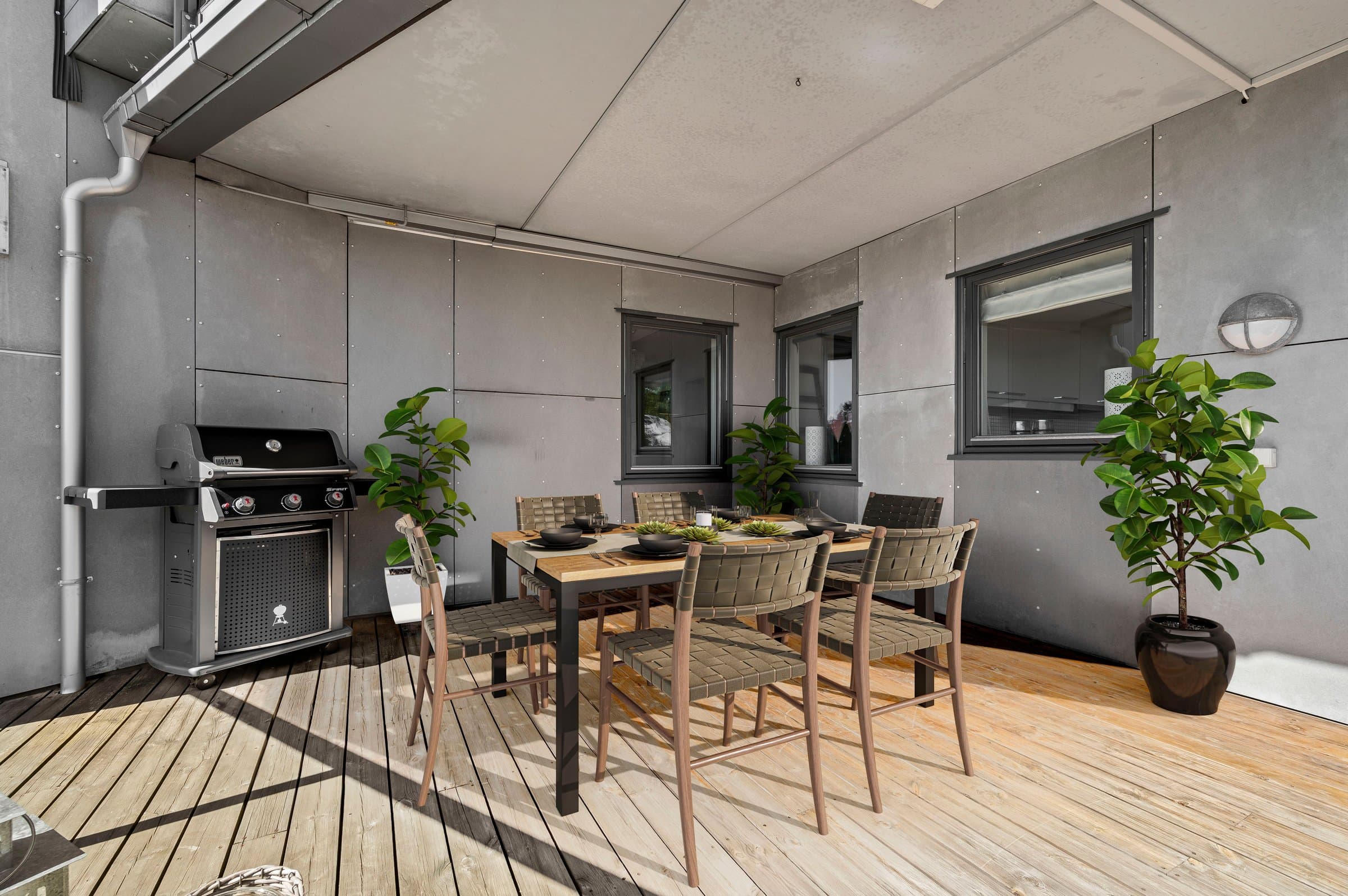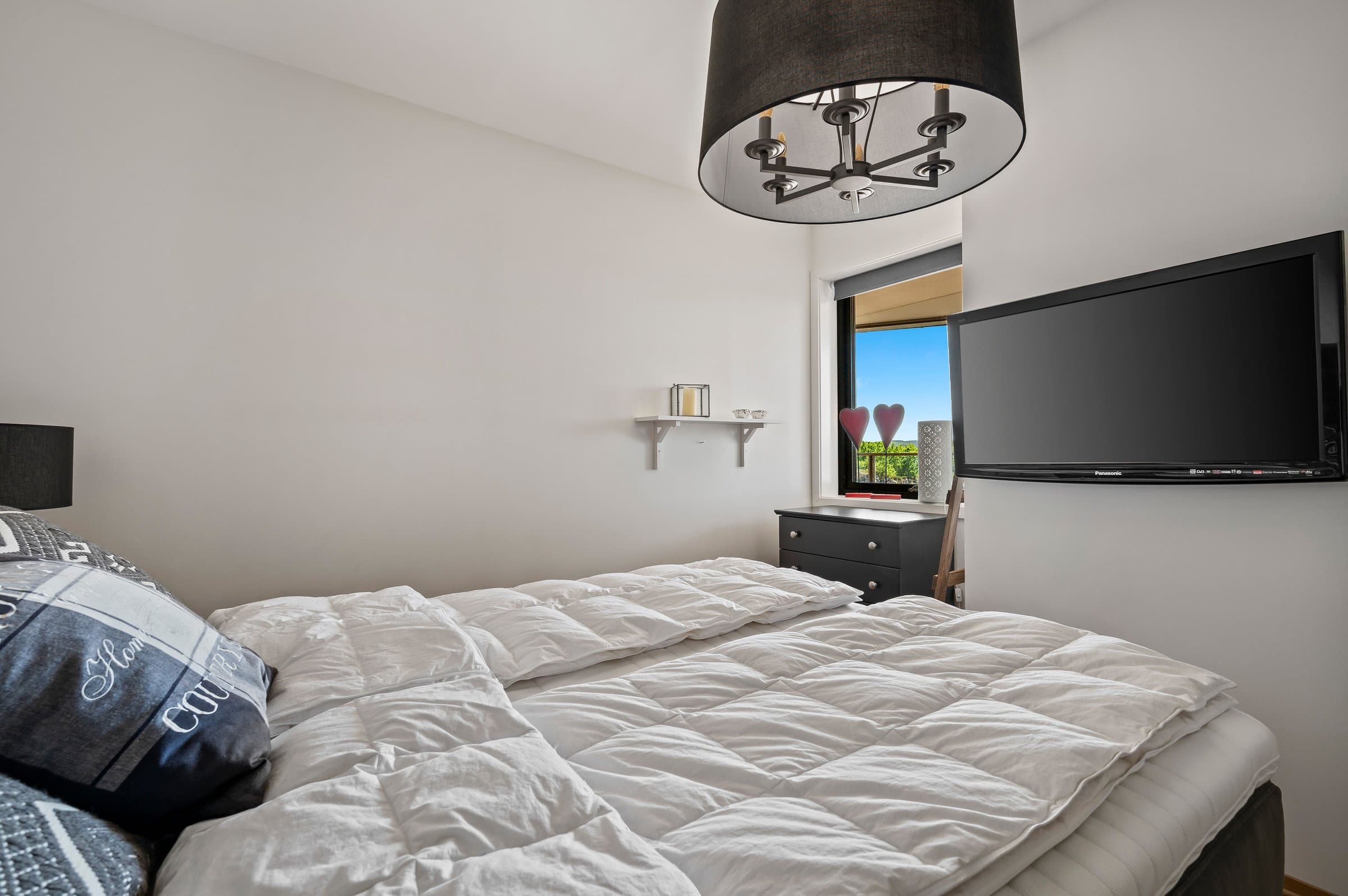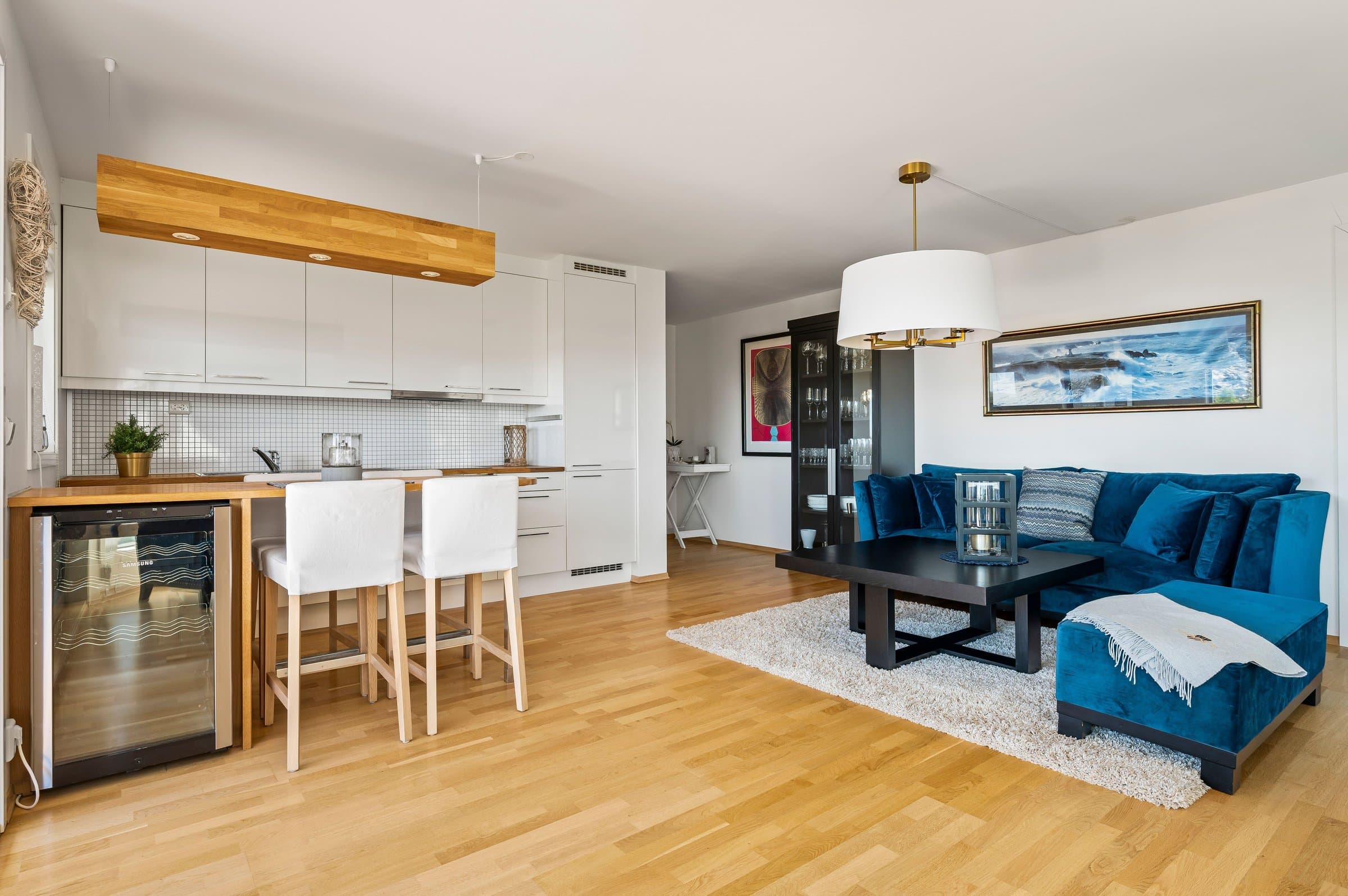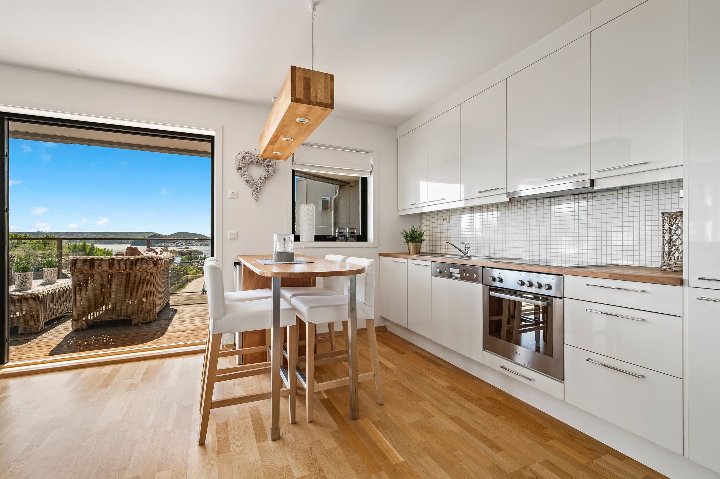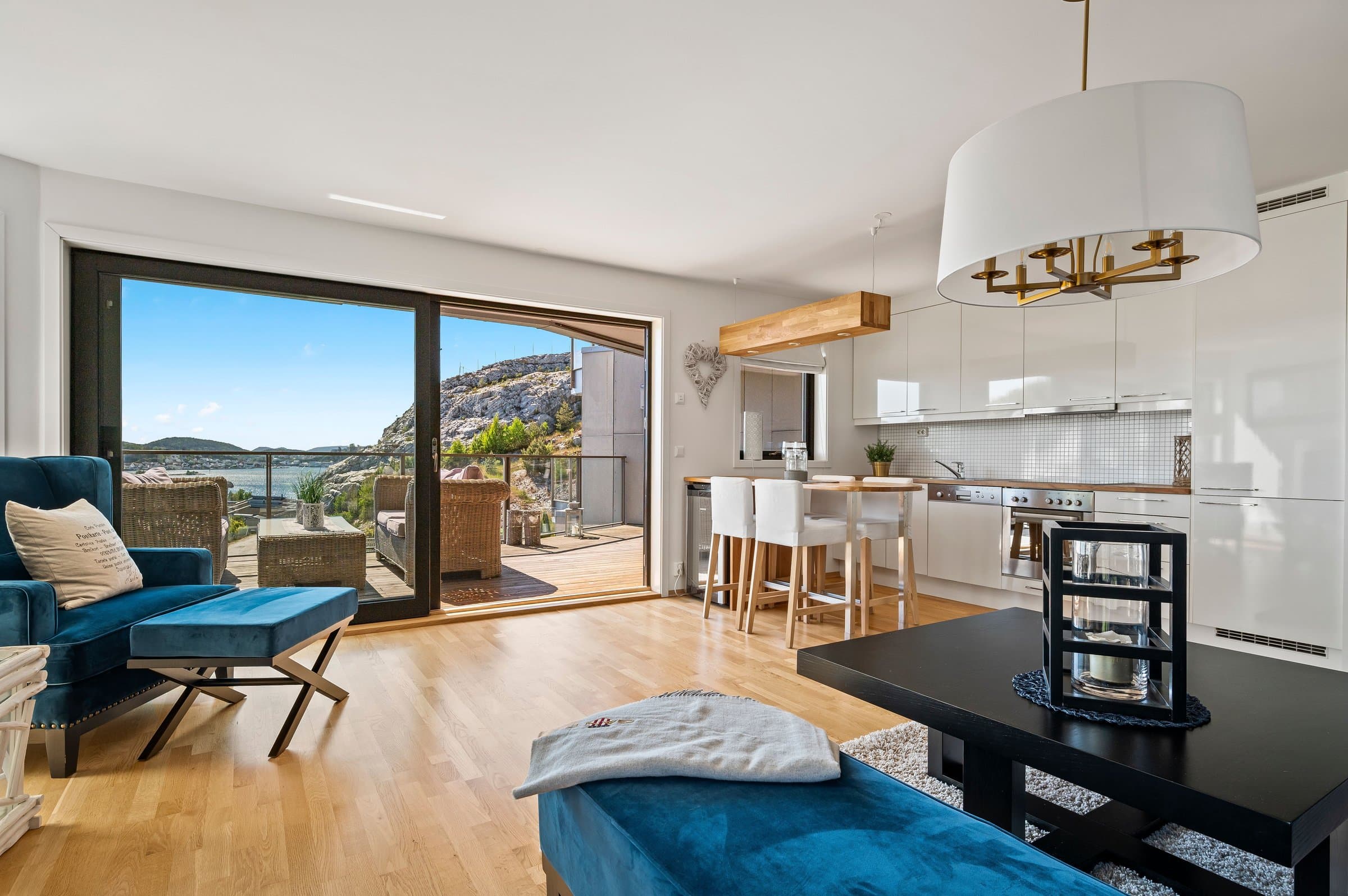 Utsikten må oppleves fra den store terrassen! Endeleilighet ytterst på hjørnet. Kjøkken i hvit høyglans med øy og vinskap. Soveplass til fire, med mulighet til seks. Privat båtplass og parkeringsplass i sval garasjekjeller følger med. Felles elbil ladere tilhørende sameiet tilgjengelig. Nøytrale hvite fliser på bad, og innsvingbare dusjdører i dusjnisje. Opplegg for vaskemaskin og tørketrommel. Felles ubegrenset gassforsyning fra sameiet, med egen måler, til gassgrill, peis og evt peisbord. Privat nødutgang direkte fra leiligheten. Nesten nye møbler kan medfølge mot et pristillegg. Leiligheten står klar for overtagelse.
