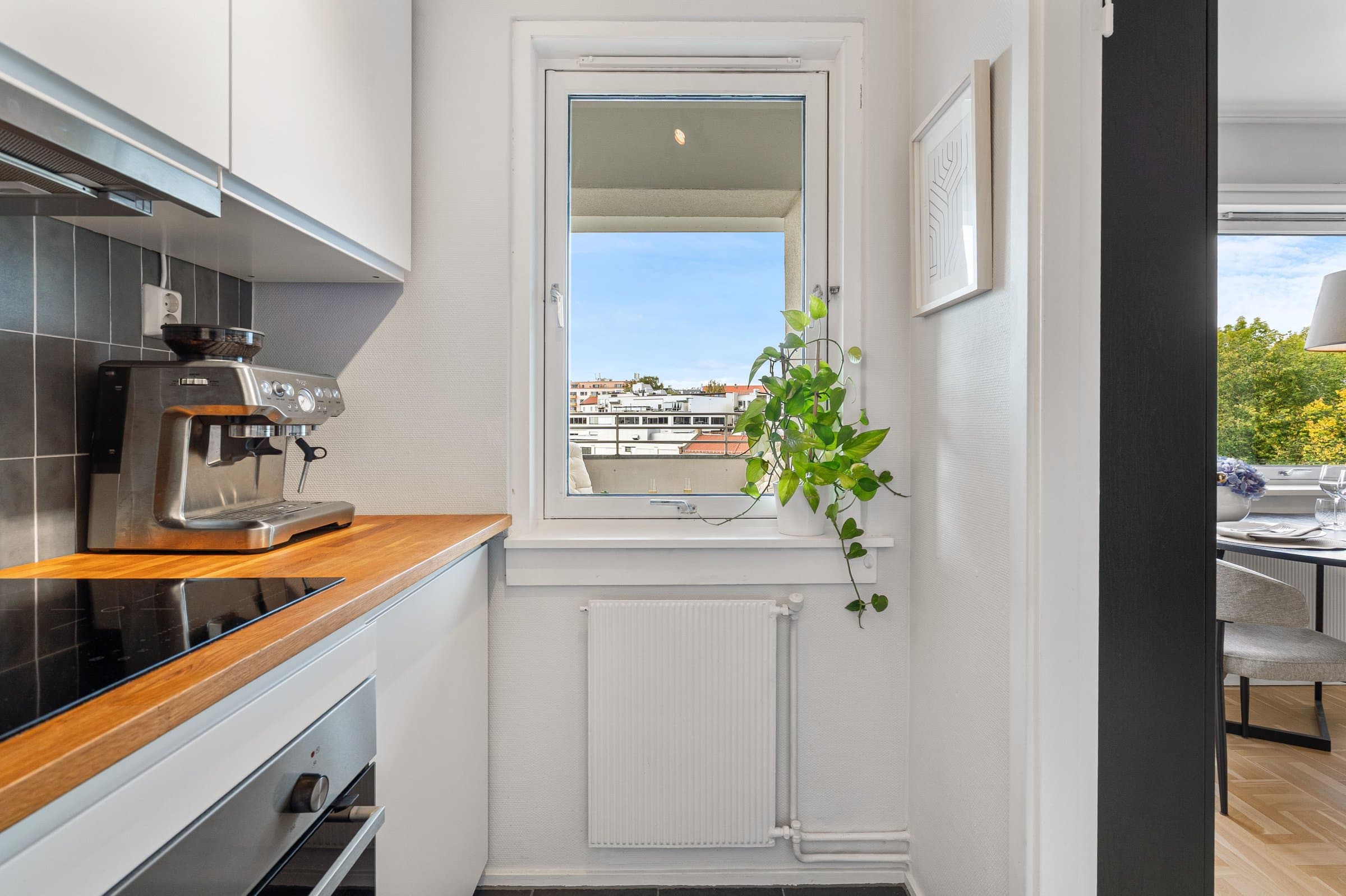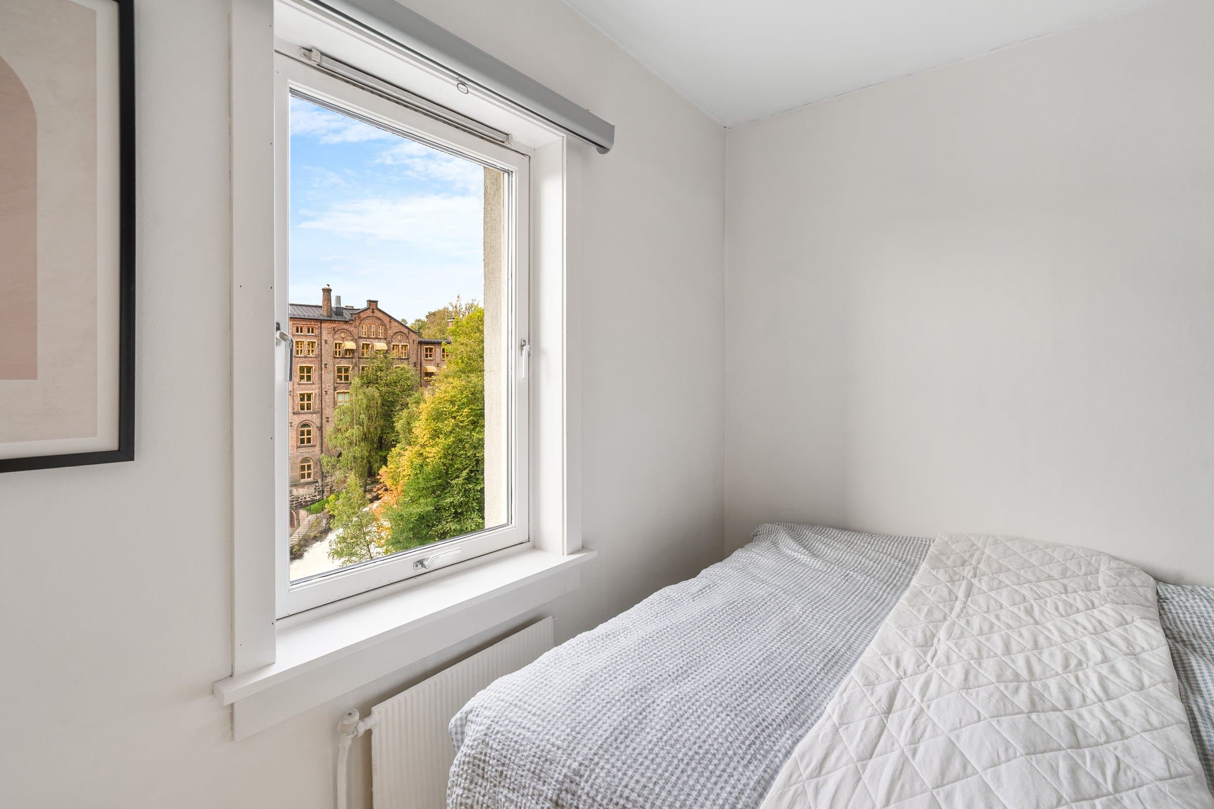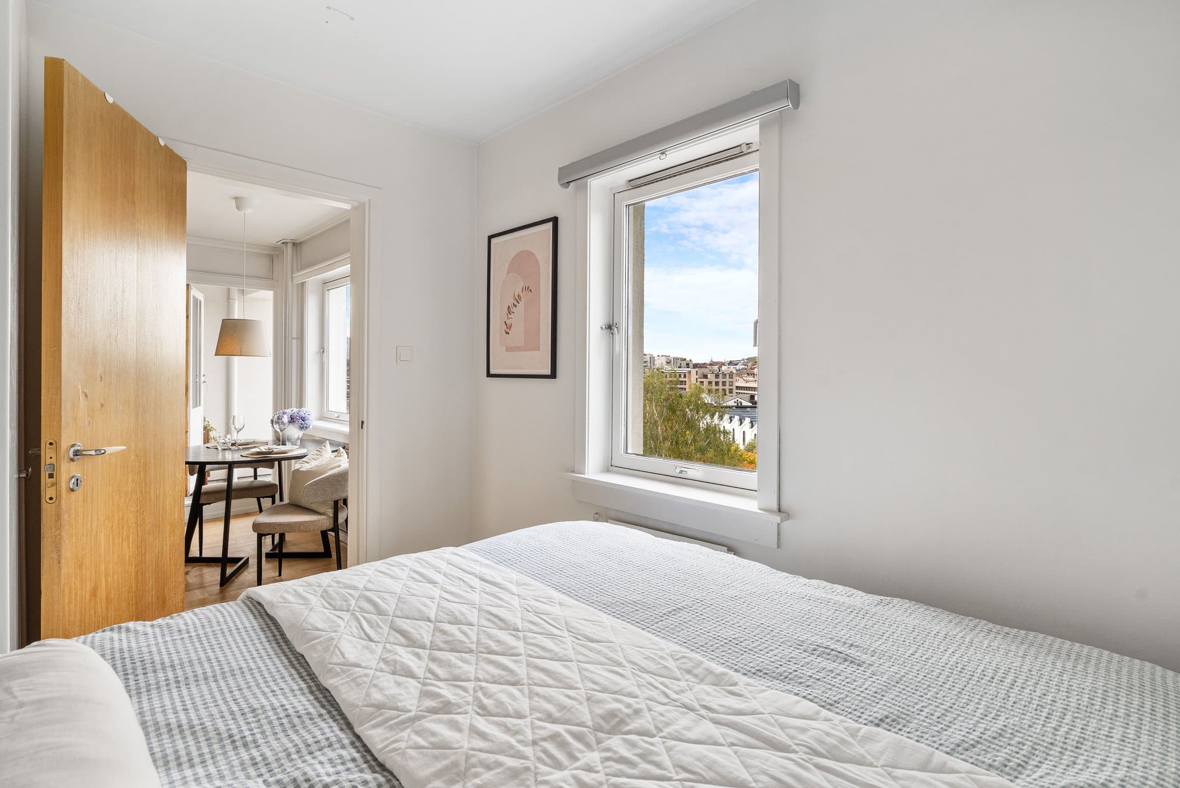 Velkommen til en lys 2-roms andelsleilighet i 8. etasje med heis og vestvendt balkong som byr på nydelig utsikt over Akerselva og byen. Leiligheten fremstår som moderne og veldisponert, med en arealeffektiv planløsning som passer både for førstegangskjøpere og de som ønsker en praktisk bolig sentralt i Oslo. Planløsningen består av entré med plassbygde skap og gode oppbevaringsmuligheter, stue med utgang til solrik balkong, separat kjøkken, soverom og et baderom totalrenovert i regi av borettslaget i 2022. Høydepunkter: Lys og gjennomgående 2-roms i 8. etasje Heis i bygget Vestvendt balkong med flotte solforhold og utsikt mot Akerselva Entré med plassbygde skap og god lagringsplass Baderom pusset opp i regi av borettslaget (2022) Praktisk bod gir ekstra oppbevaringsmuligheter Mulighet for leie av parkeringsplass (venteliste) Tilgang til gjestehybel Ingen dokumentavgift ved kjøp