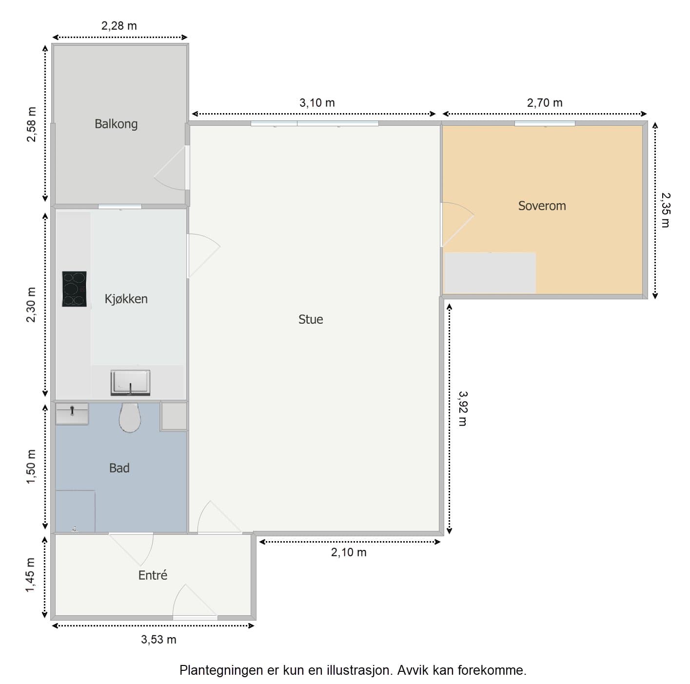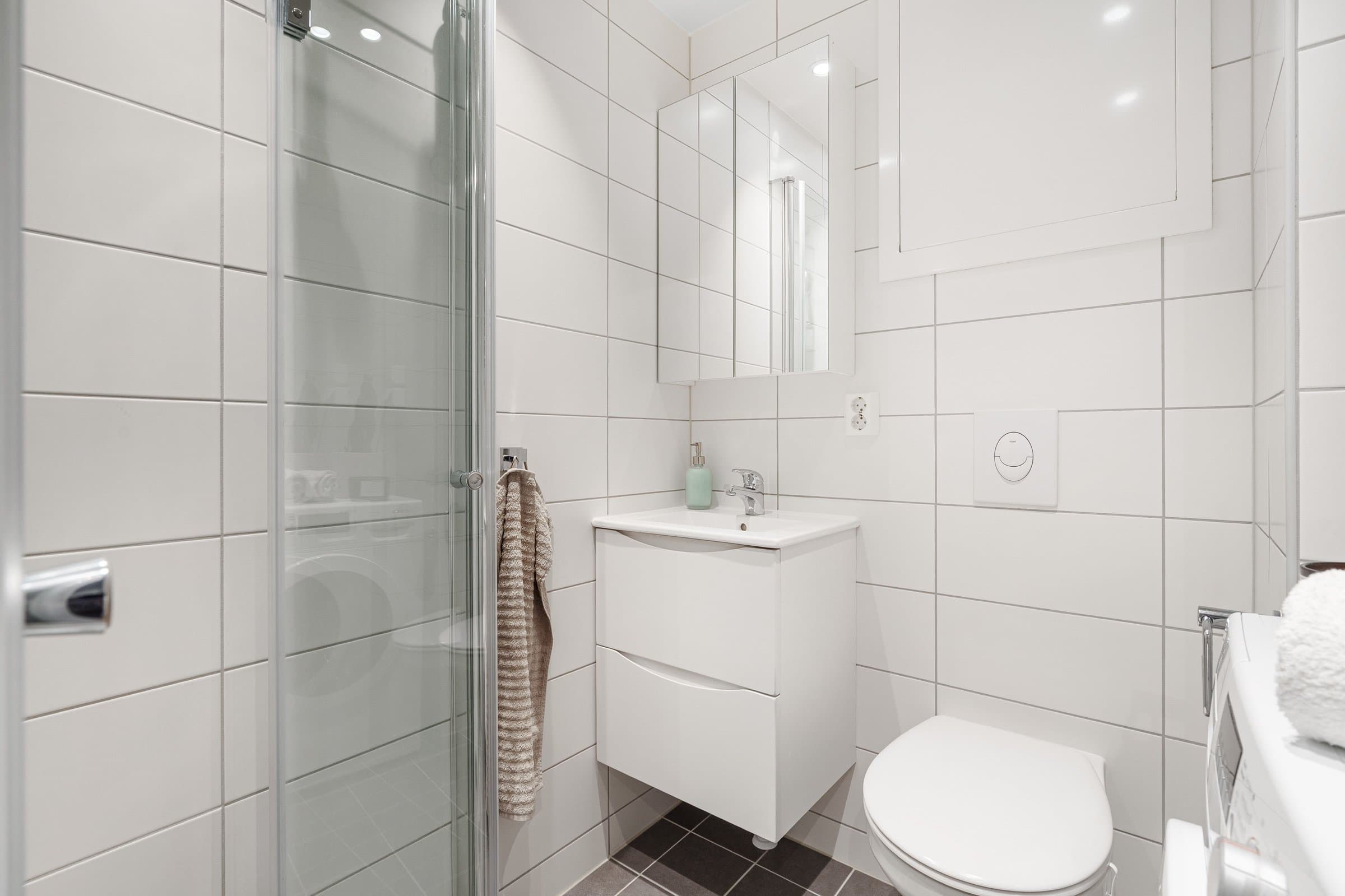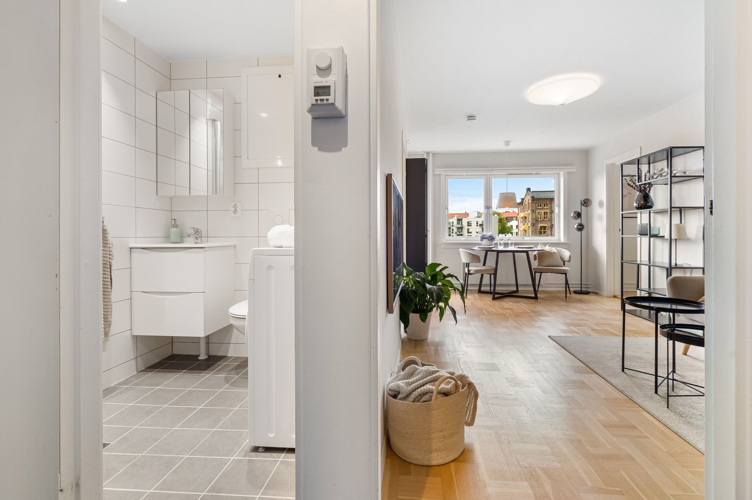 Badet ble totalrenovert i 2022 i regi av borettslaget, med varmekabler, rør-i-rør-system, membran og flislagte overflater. Leiligheten ellers holder en god standard, med kjøkkeninnredning fra 2016, oppgraderte overflater og plassbygde oppbevaringsløsninger i entréen.