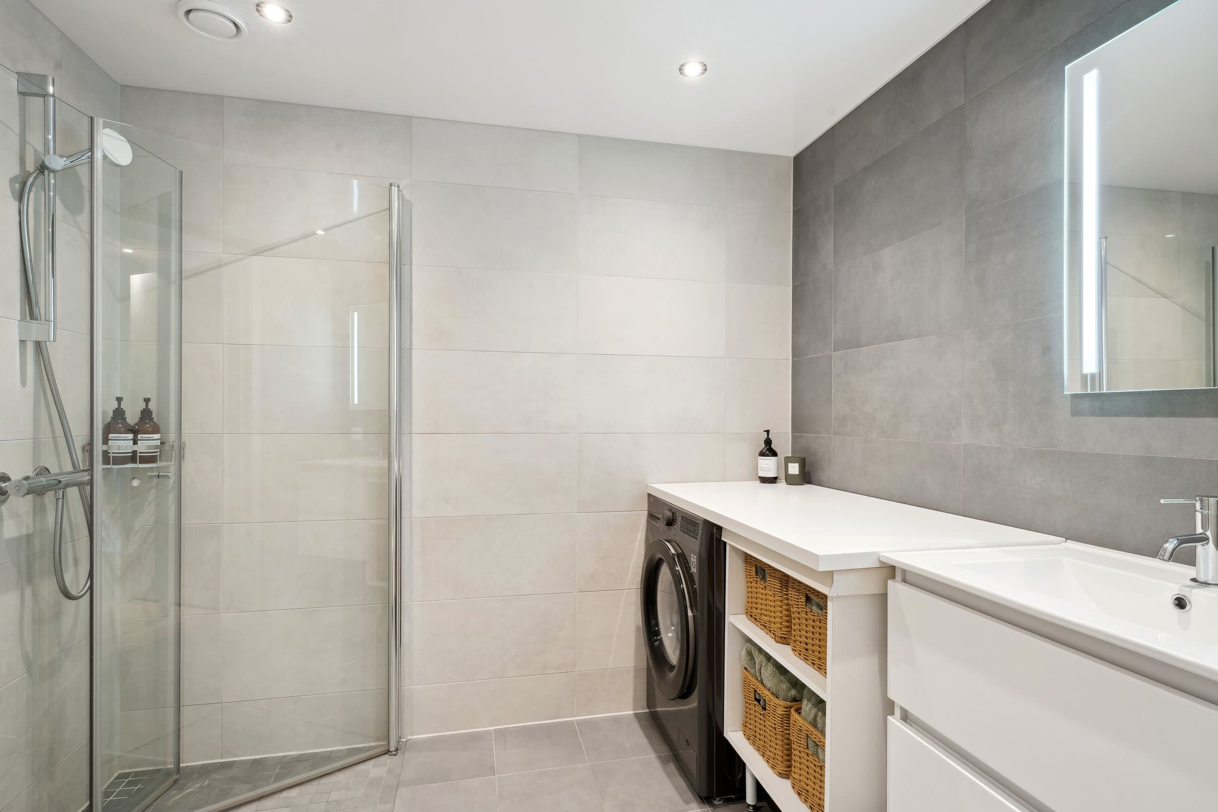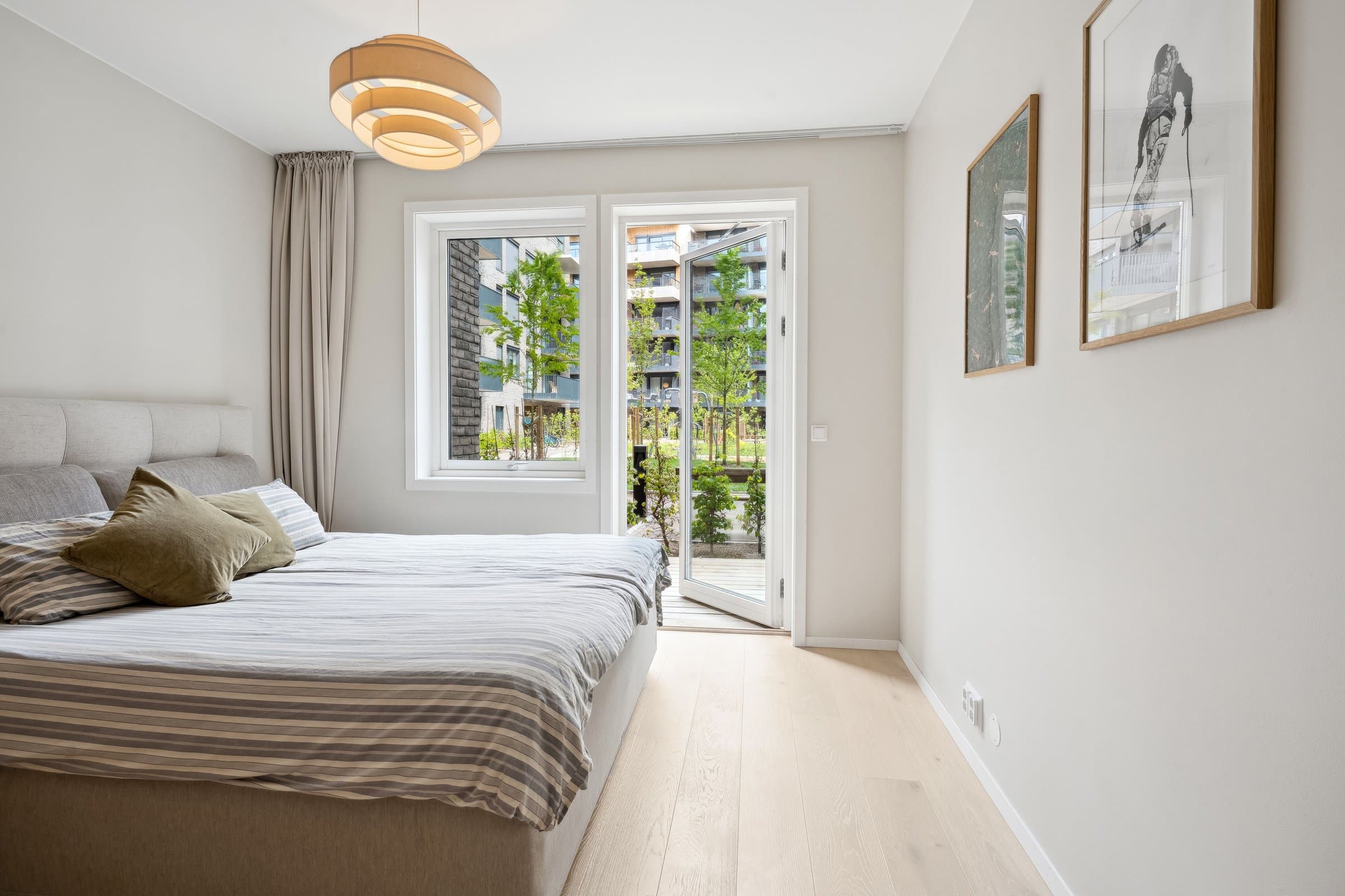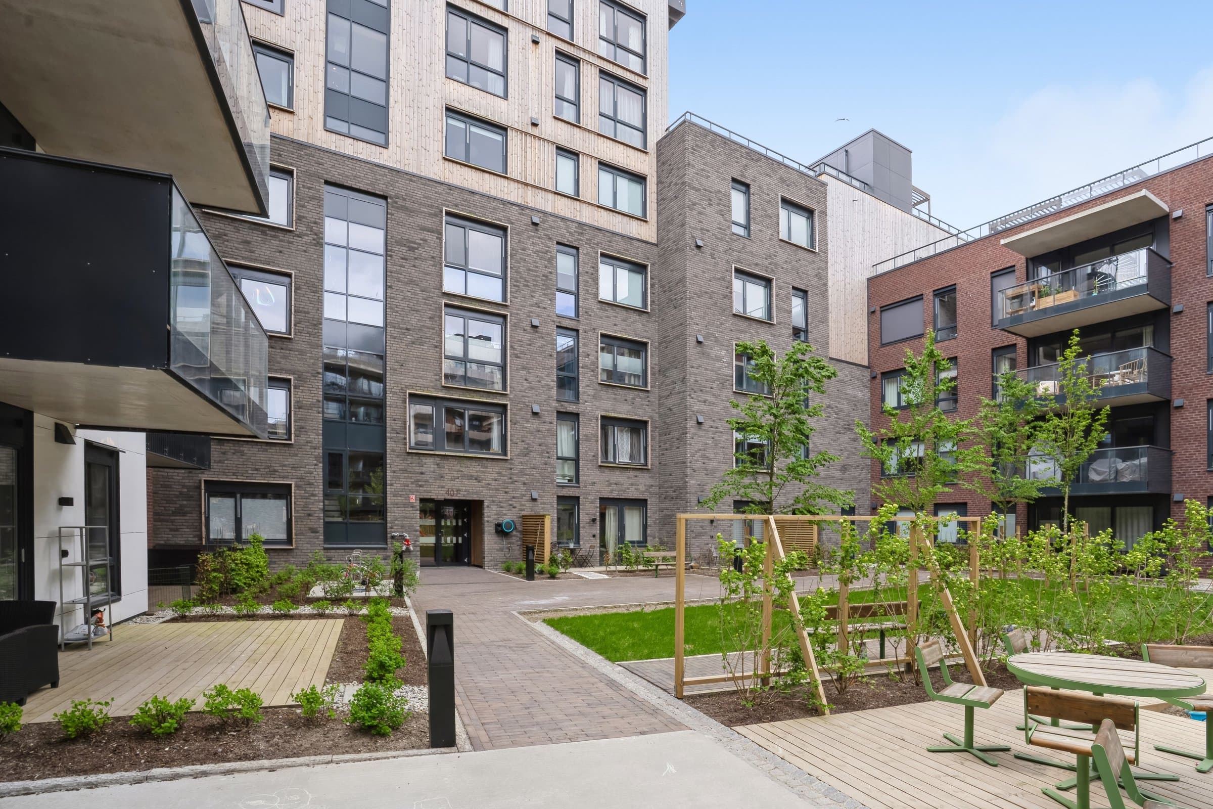 Leilighet fra 2024 i 1. etasje. Leiligheten er gjennomgående med balkong mot kommende fellesareal og terrasse mot bakgård med gressplener. Frysjaparken er et spennende område under stor utvikling. Her har man marka som nærmeste nabo, tilgang på felles sykkelbod, smørebod og takterrasser. Boligen bærer preg av stilrene materialvalg med en-stavs eikeparkett, nordisk uttrykk, gjennomtenkte løsninger og optimal planløsning. Leiligheten inneholder entré, åpen kjøkken- og stueløsning, innvendig bod, to soverom og ett bad. Her får du: - Store vindusflater. - Takhøyde på 2,6 m i stue og soverom. - Moderne kjøkkeninnredning fra HTH med ekstra kjøkken halvøy og integrerte hvitevarer. - Baderom med store fliser. - To lyse soverom med vindu ut i rolig bakgård. - Balkong 8 kvm + terrasse 9 kvm (TBA 17 kvm). - Felles takterrasser med flott utsikt. - Innvendig bod + sportsbod i kjelleren. - Meny-butikk, apotek, frisør og blomsterbutikk i underetasjen. - Mulighet for kjøp av garasjeplass med elbil-lader. - Nybygg garanti fra utbygger. - IN-ordning. Her skal du kunne nyte tid med familien, invitere til hyggelige lag eller trekke deg tilbake i rolige omgivelser.