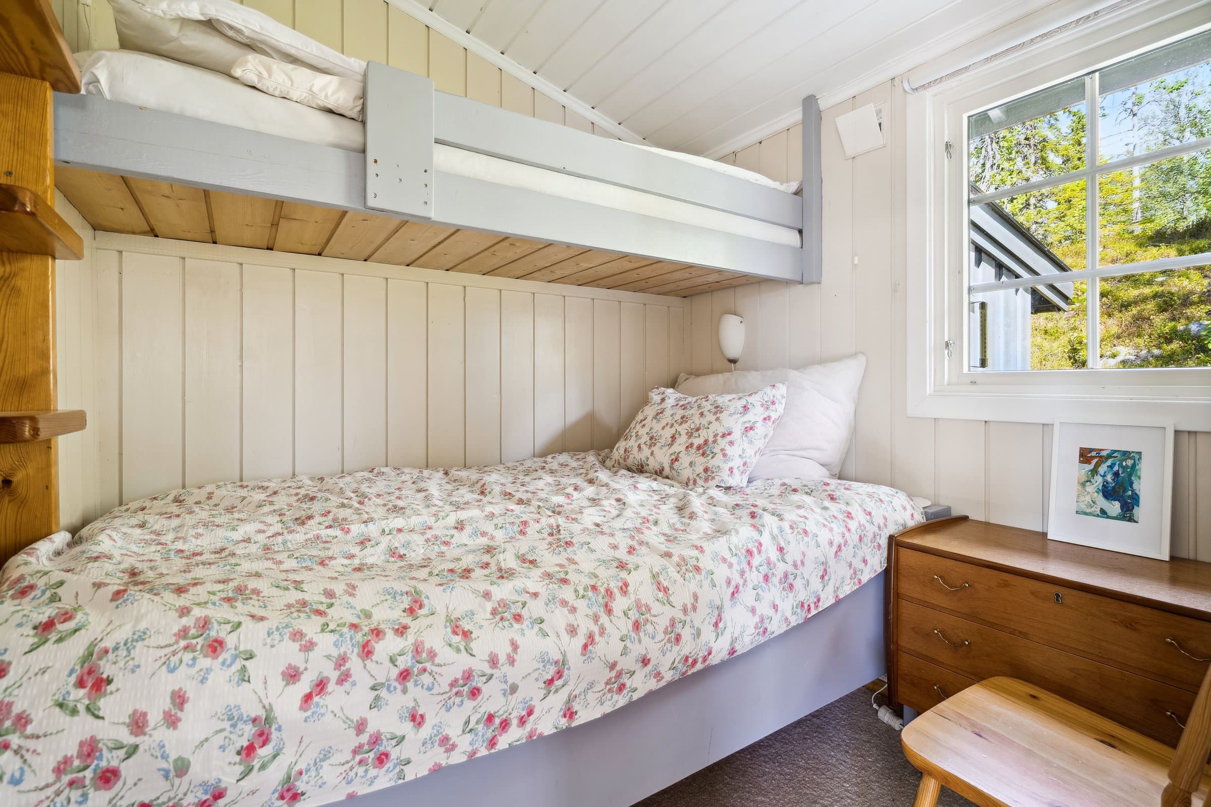 Velholdt og attraktiv 4-roms hytte, nær turterreng. Innlagt strøm. Bilvei frem. Idyllisk beliggenhet!