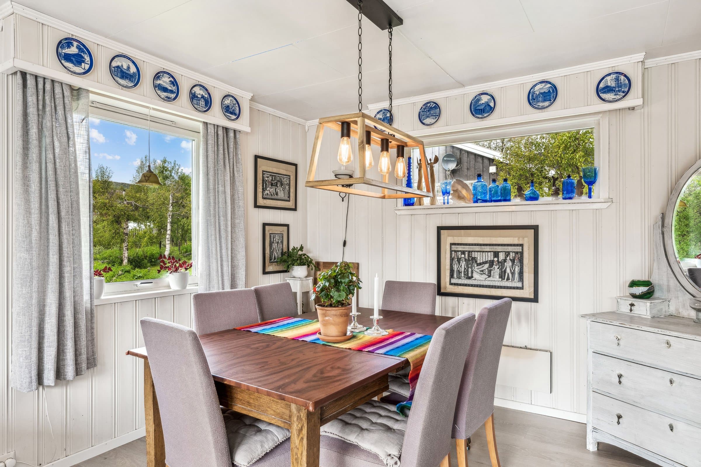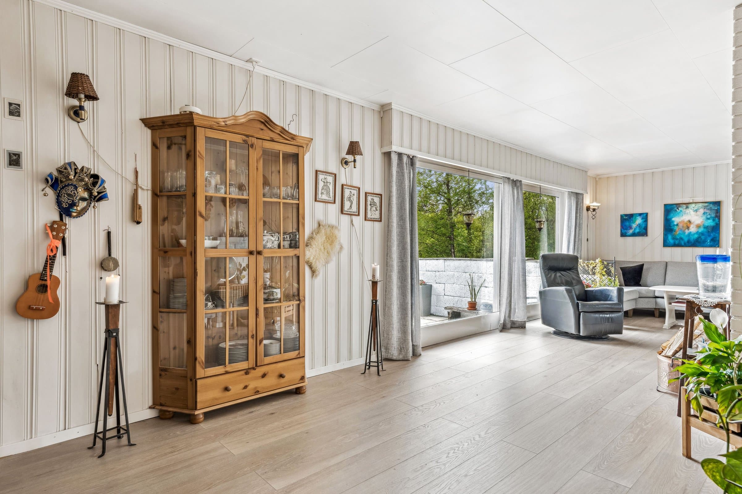 Koselig enebolig på eiet tomt fra 1981. Boligen består av entre, kjøkken, stue, bad, liten gang, tre soverom. Trapp til kjeller har lukket dør. Delvis oppusset, sist nytt gulv og ildsted i stue. Dobbelt skyvedørsvindu i stue med flott utsikt til fineste naturen. Oppussing må beregnes