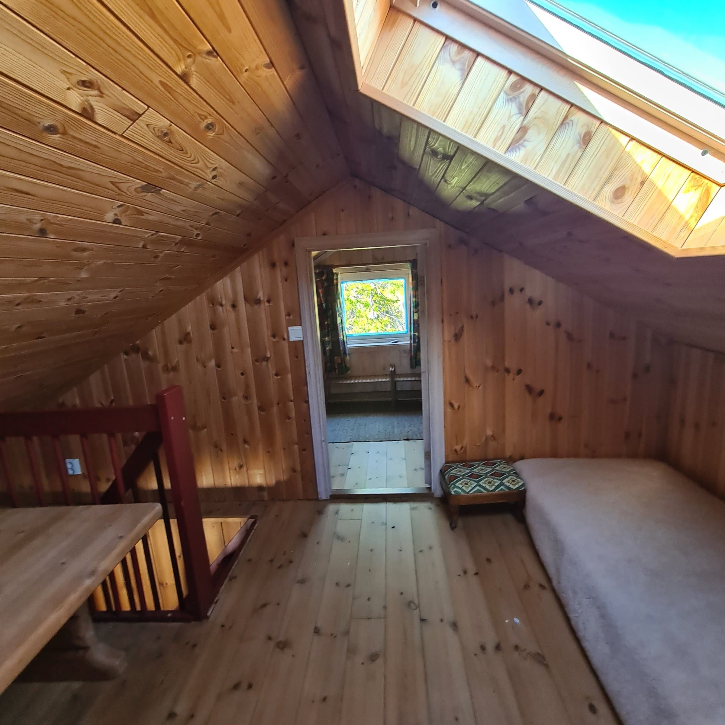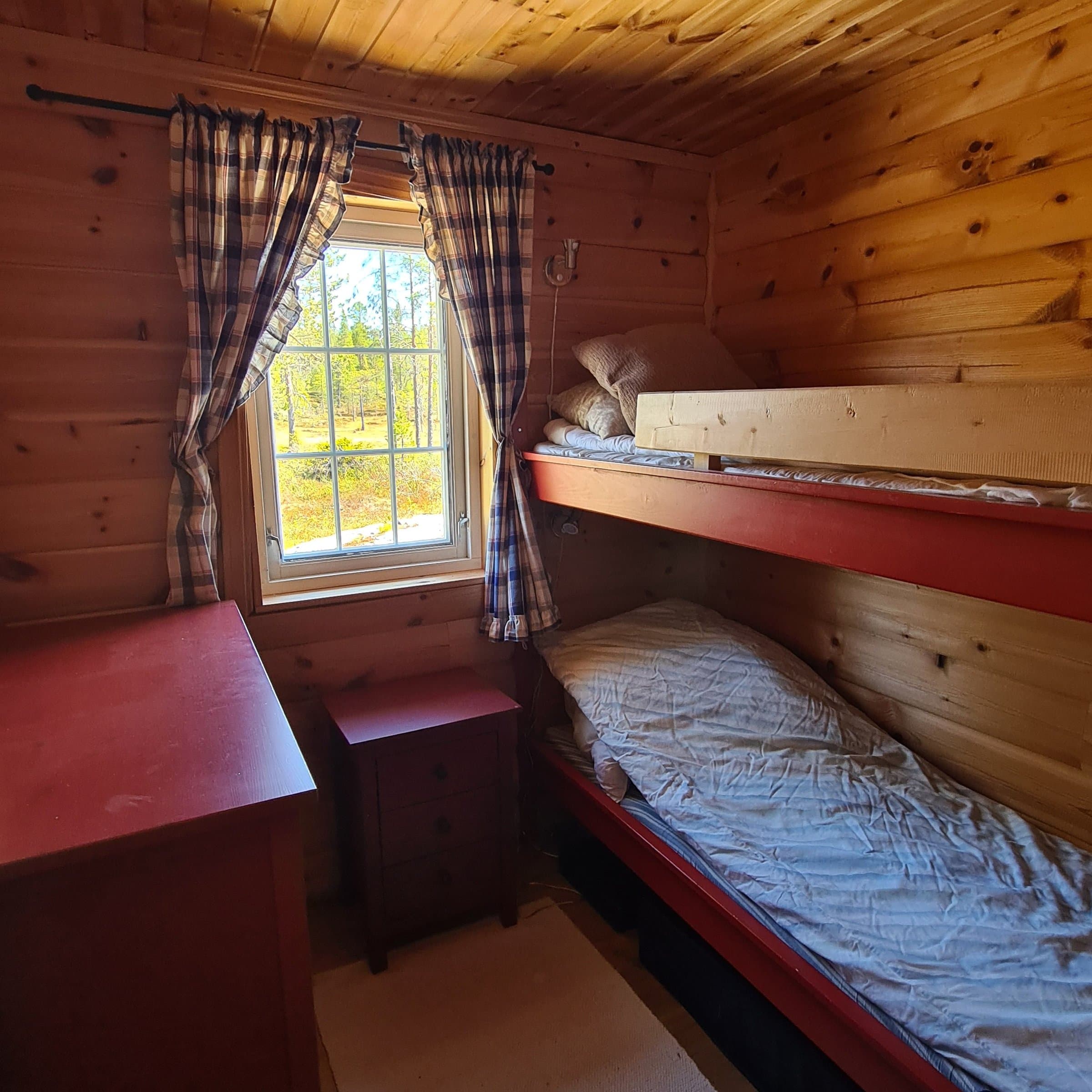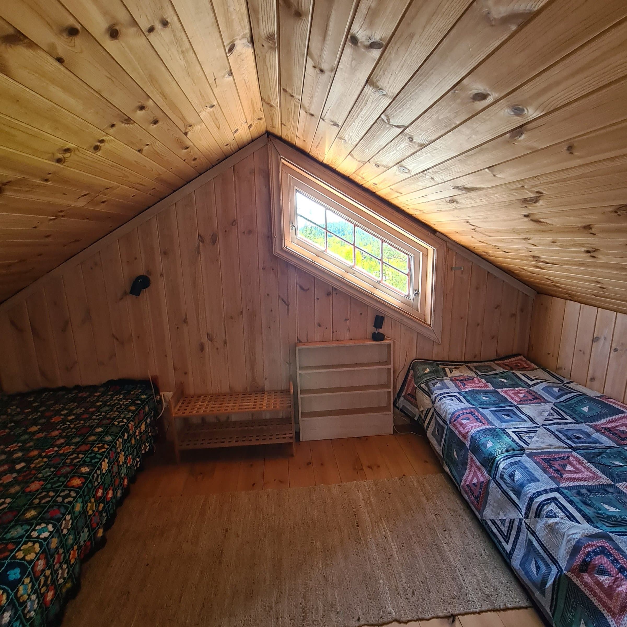 Panoramautsikt, sol hele dagen, tett inntil Trillemarka/Rollagsfjell nasjonalpark, 10 minutter å gå langs sti til badevann, en mengde større fiskevann, skiløypa går 3 meter bak hytta, tomta ble valgt bl.a på grunn av områdets kanskje største molteområde. Snurredass. 5 soverom, 2 av dem med dobbeltseng (ikke avbildet), 10 sengeplasser. Nytt ubrukt kjøleskap. Nybeiset. Plass til flere biler inntil hytteveggen. Ubegrenset vann fra egen borebrønn. Strøm i alle lamper og stikkontakter. Sunwind 400W Solcellepanel, 1000 Ah batteribank, 1500W 12V / 230V inverter, dieselaggregat i utebod med fjernstartpanel i hytta. Sunwind Kentaur 70A lader til batteribank starter samtidig med aggregatet. Bredbåndsantenne for WiFi-router på yttervegg. Ring/sms-start på forhånd av Wallas cc40 parafinovn med 120 liters tank under veranda. Trykkvann fra sisterner i bod og gang for kraner på bad og kjøkken. (Kun kaldt vann på kjøkken). Fylles fra kran på yttervegg fra eget borevann. Gass vann-varmere for varmt vann til dusj og vask på bad. Uteboden er ikke avbildet fordi den ikke er tømt.