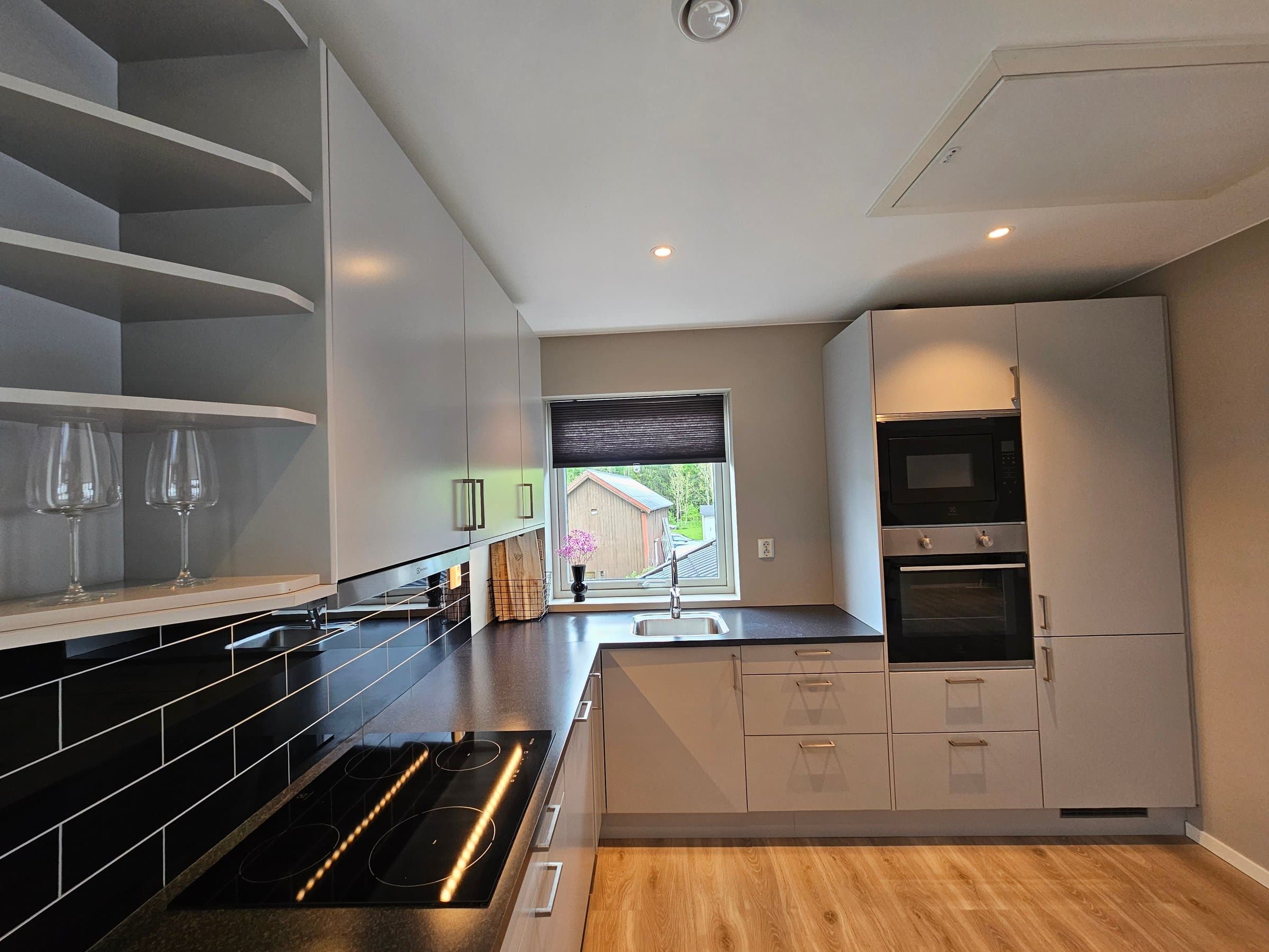 Velkommen til Brustugguvegen 12 - og denne stilige halvparten ferdigstilt i 2020. Eiendommen ligger fint til i et barnevennlig boligområde med gangavstand til skole og barnehage. Fra boligen tar det ca. 20 minutter til Melhus og ca. 40 minutter til Sentrum av Trondheim. Togstasjonen og E6 gjør det enkelt å pendle til/fra. Kvaliteter du vil sette pris på: - Praktisk planløsning og utstrakte vindusflater som sikrer rikelig med naturlig dagslys. - Lekkert kjøkken fra Norema med integrerte hvitevarer. - Romslig stue med god plass til både sitte- og spisegruppe. - Sørvestvendt balkong med gode solforhold. - To pent flislagte bad med gulvvarme, hvor et også har opplegg for vaskemaskin. - Tre store soverom med plass til garderobe. - Carport med sportsbod.