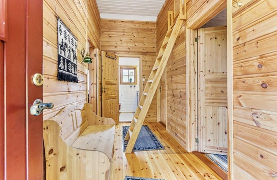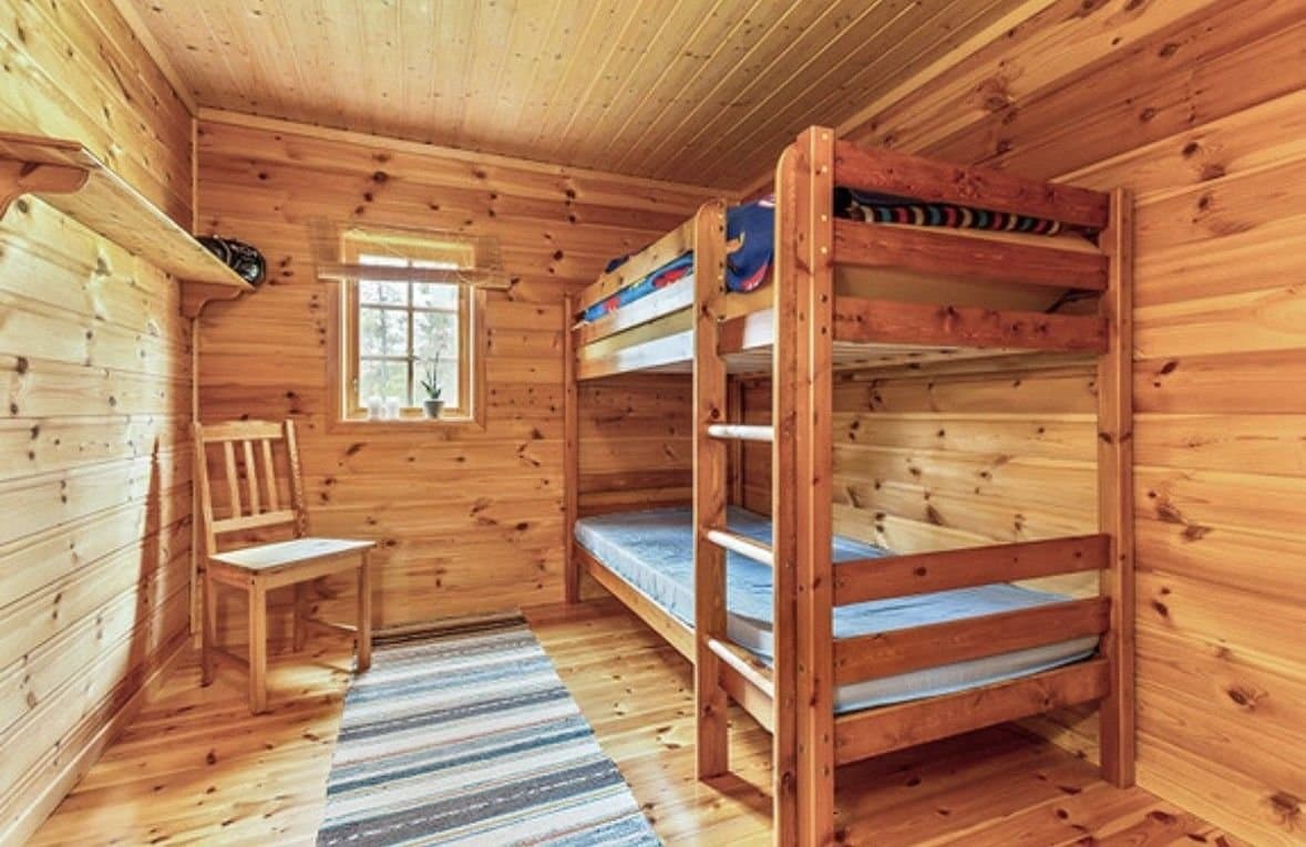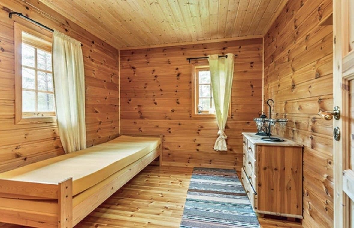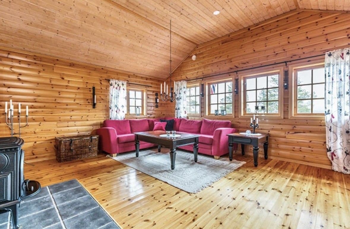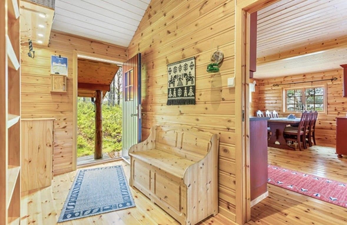 Hytten inneholder stue, kjøkken, entre, bad, hems og bod. Stuen har åpen løsning mot kjøkken. Hytten selges med innbo. Soverom 1 har ei dobbeltseng, soverom 2 har ei enkeltseng og ei køyeseng. Hems har 2 sengeplasser. Entre: Tregulv, trepanel på vegg og malt panel i himling. Soverom 1: Tregulv, trepanel på vegg og panel i himling. Soverom 2: Tregulv, trepanel på vegg og panel i himling. Bad: Tregulv, malt panel på vegg og malt panel i himling. Naturlig avtrekk, servant, servantskap og klosett. Stue: Tregulv, trepanel på vegg og panel i himling. Vedovn og utgang til veranda. Kjøkken: Tregulv, trepanel på vegg og panel i himling. Innredning med benkeplate i laminat og fronter av heltre. Utstyrt med oppvaskkum. Bod: Tregulv, panelplater på vegg og malt panel i himling.