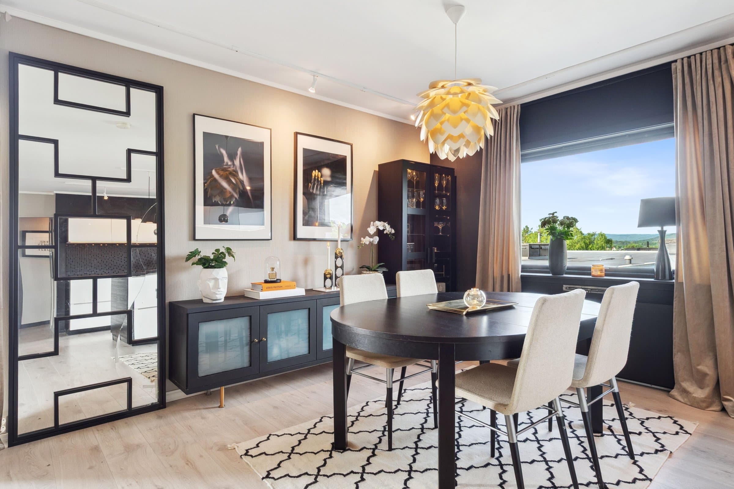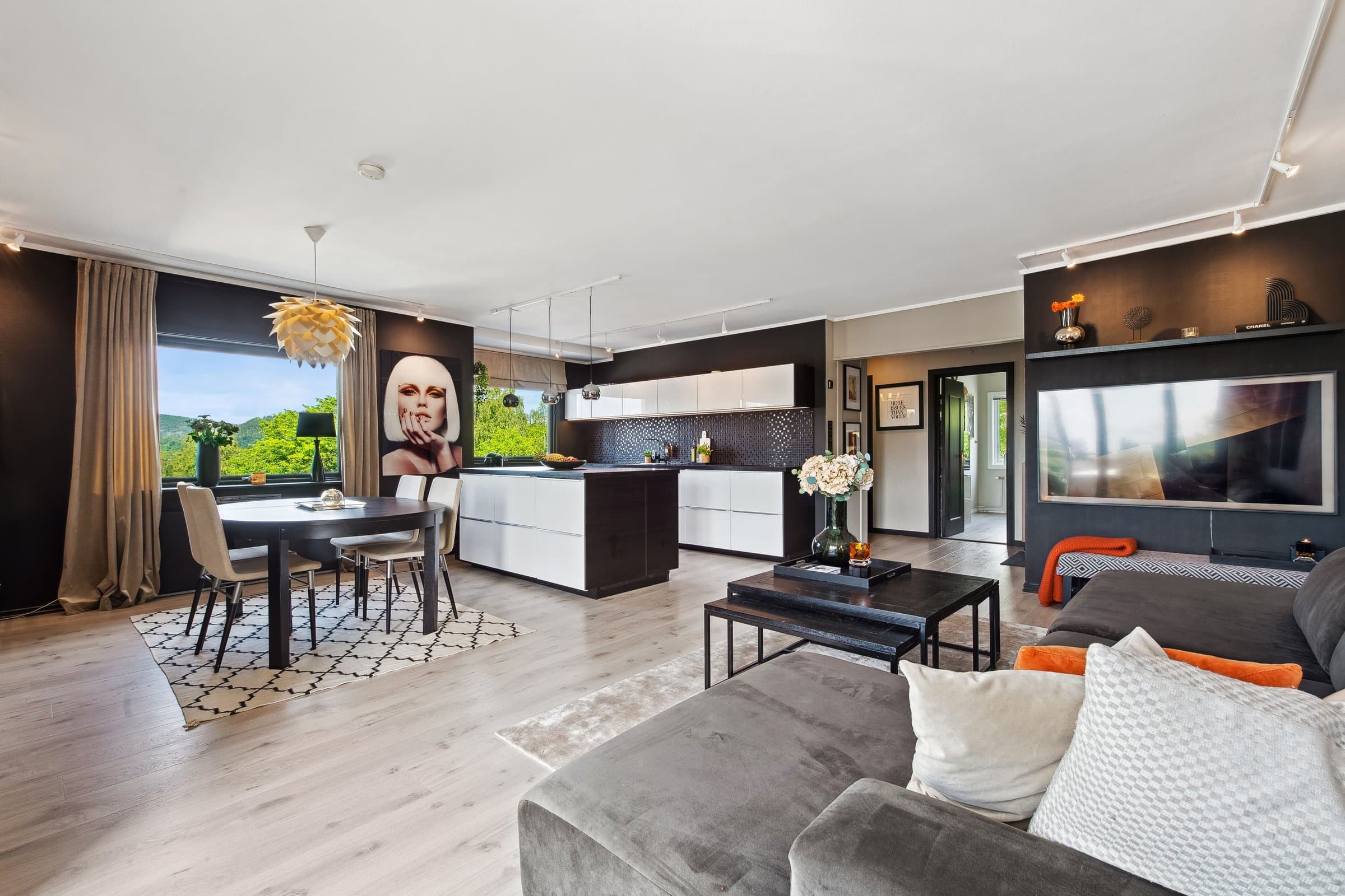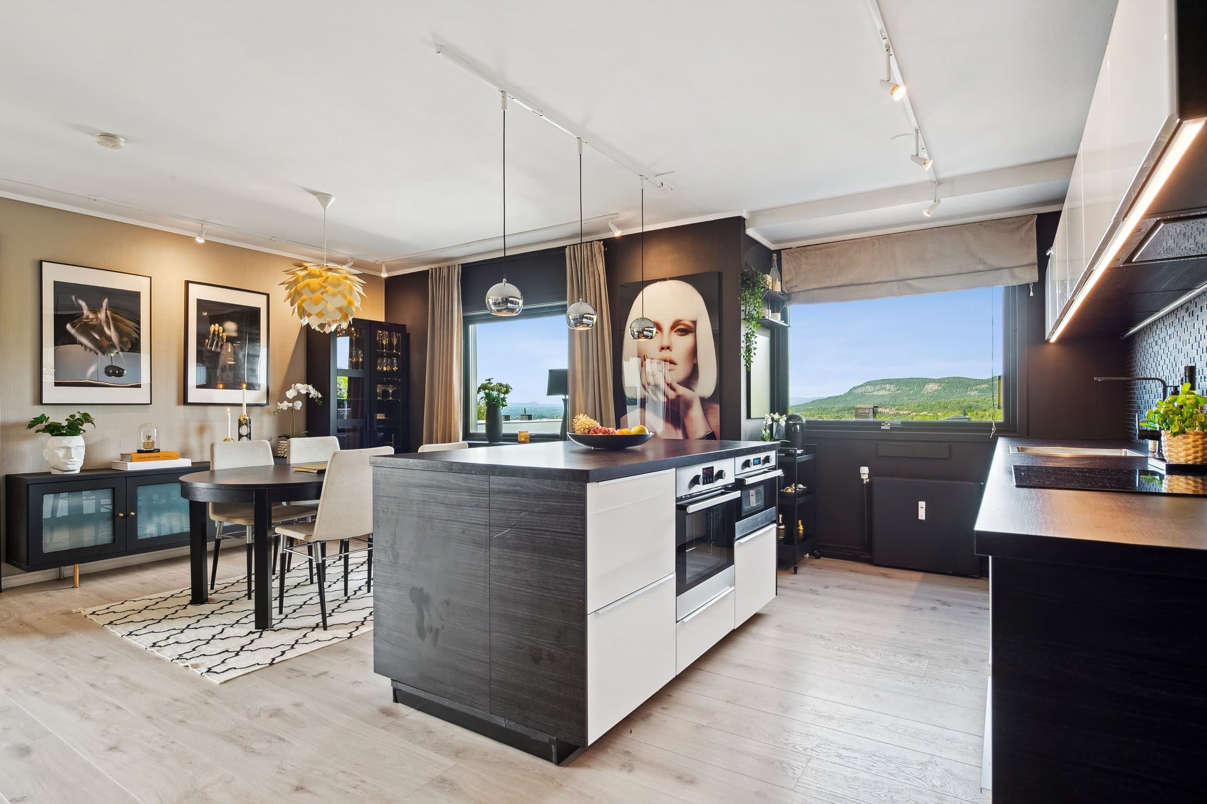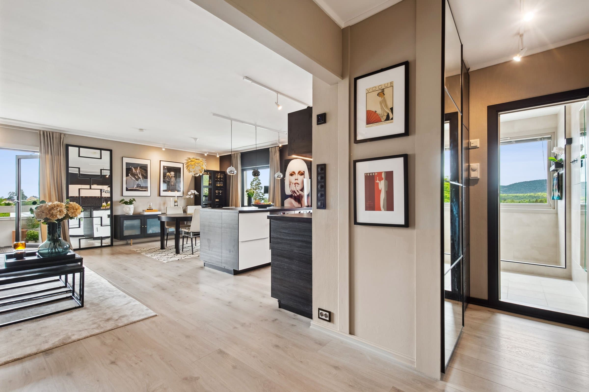 Unik 3-roms selveiet toppleilighet, med fantastisk utsikt, solrik balkong og garasjeplass. Leiligheten er lys med store vinduer mot tre himmelretninger. Flott planløsningen med entré, åpen stue- og kjøkkenløsning med spiseplass, to soverom og flott bad med varmekabler. Leiligheten oppleves moderne og romslig med god takhøyde, store vindusflater og masse naturlig lys. Flott solrik sydvendt balkong med fantastisk panoramautsikt. I tillegg til garasjeplass følger også egen biloppstillingsplass.