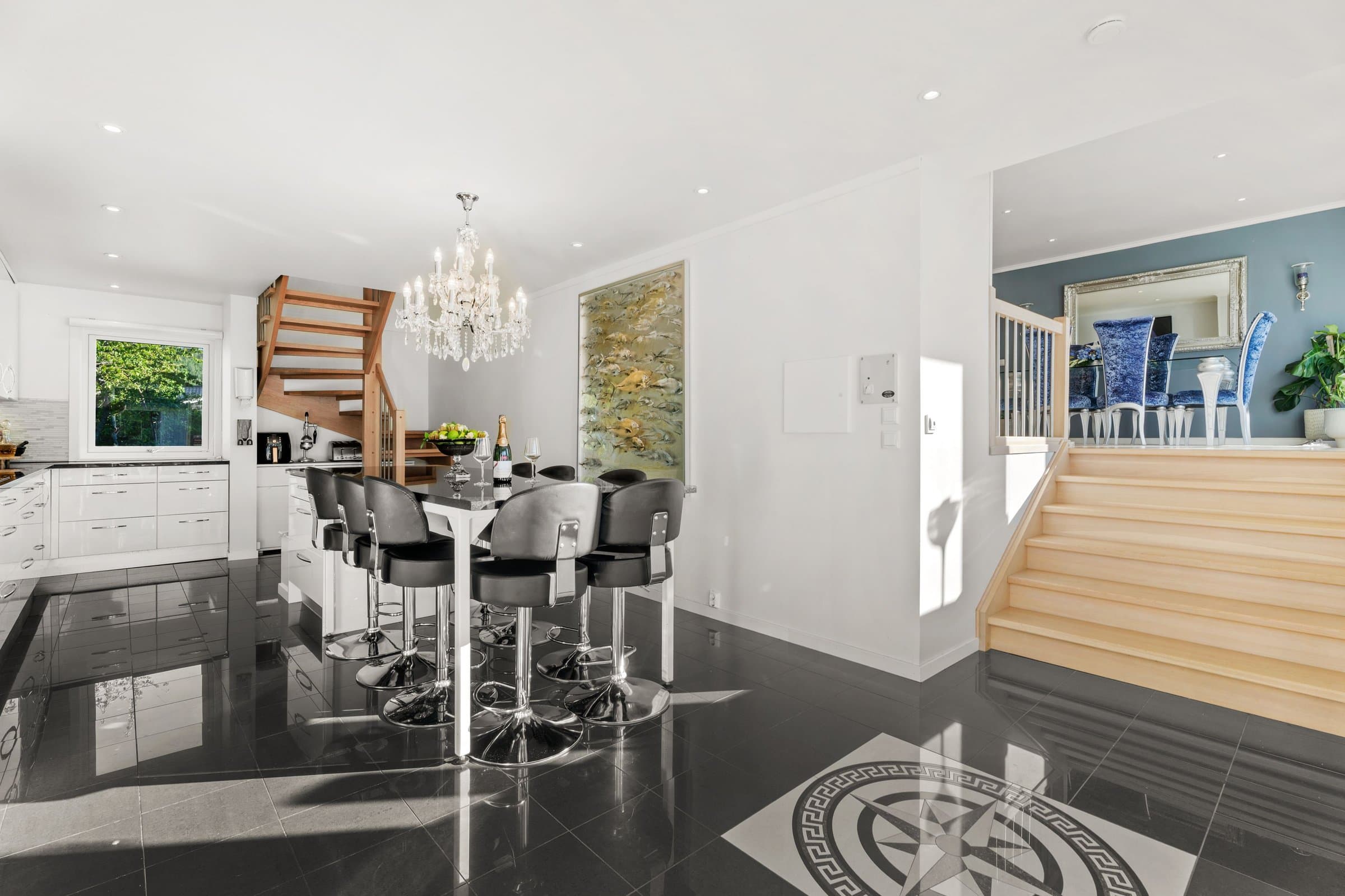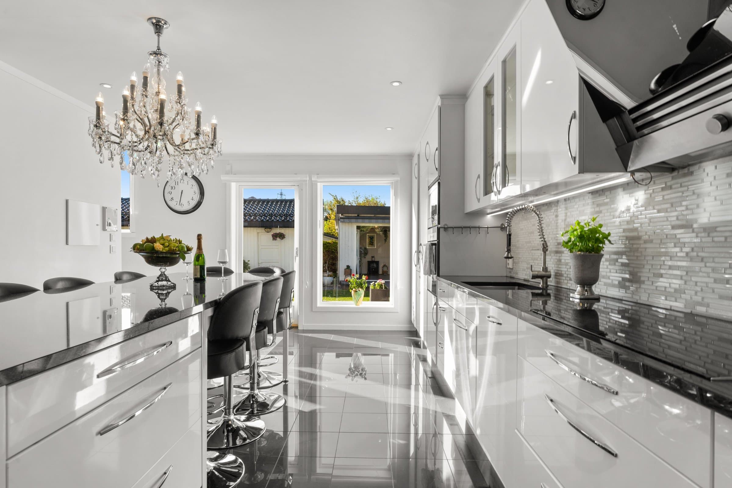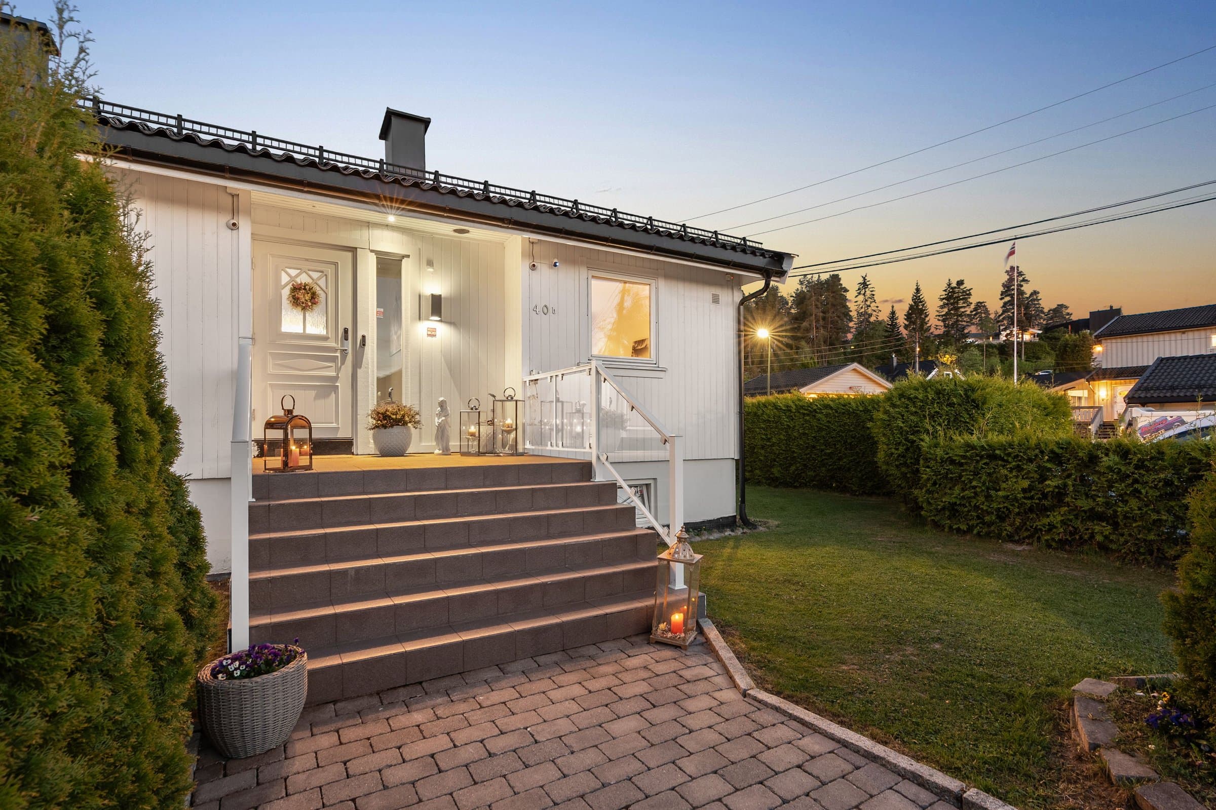 Velkommen til Kurlandsveien 40B - En flott og velholdt enebolig som går over 3 plan med tilbygg og utehus. Boligen har god standard og ligger på en solrik tomt på ca. 769 kvm, og det tilhører to stor adkomsterrasser og platting. Det tilhører også en stor garasje med mulighet for elbillader. Boligen har en trivelig beliggenhet i et etablert og barnevennlig nabolag på Kurland, med flotte turområder rett utenfor og kort vei til alt av skole, barnehage, butikk og kollektivtransport. Kort fortalt: - Stue med gode vindusflater og stemningsfull uteplasser - Stilrent kjøkken med steinplater og spisebord - To flislagte bad, badstue og vaskerom - MasterBedrom m. eget bad og badekar - Meget flott Lyshus med glasssdører og uteplass - Solrik tomt og stor hage - Garasje og biloppstillingsplasser - Tillbygg med nytt kjøkken fra Blum - Mulighet for innredning av stor utleiedel - Gulvvarme i store deler av huset - Sentral støvsuger - Nærhet til nesten alt!