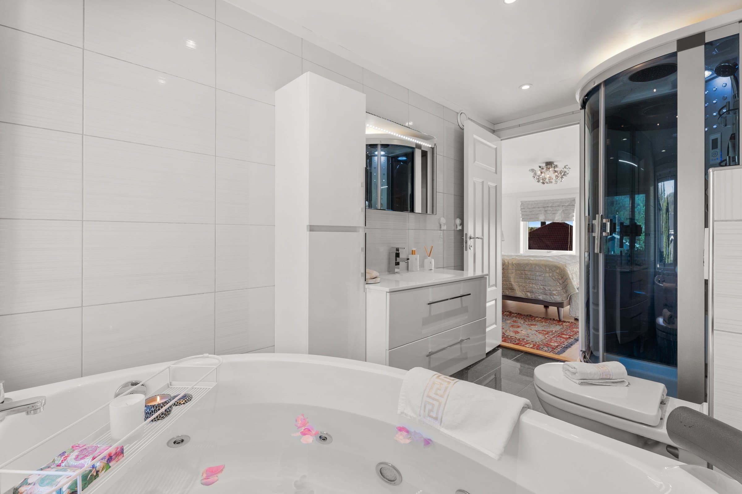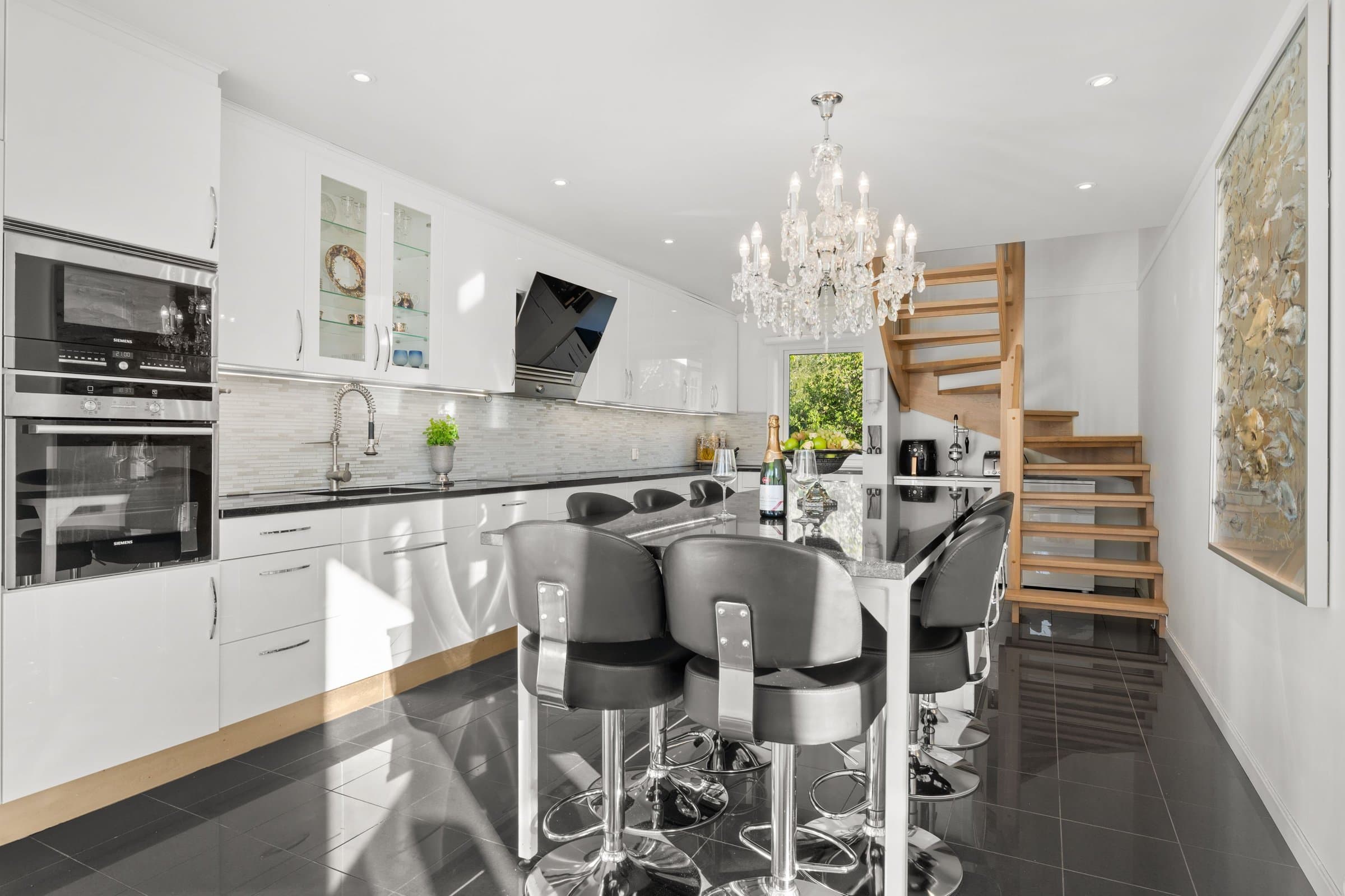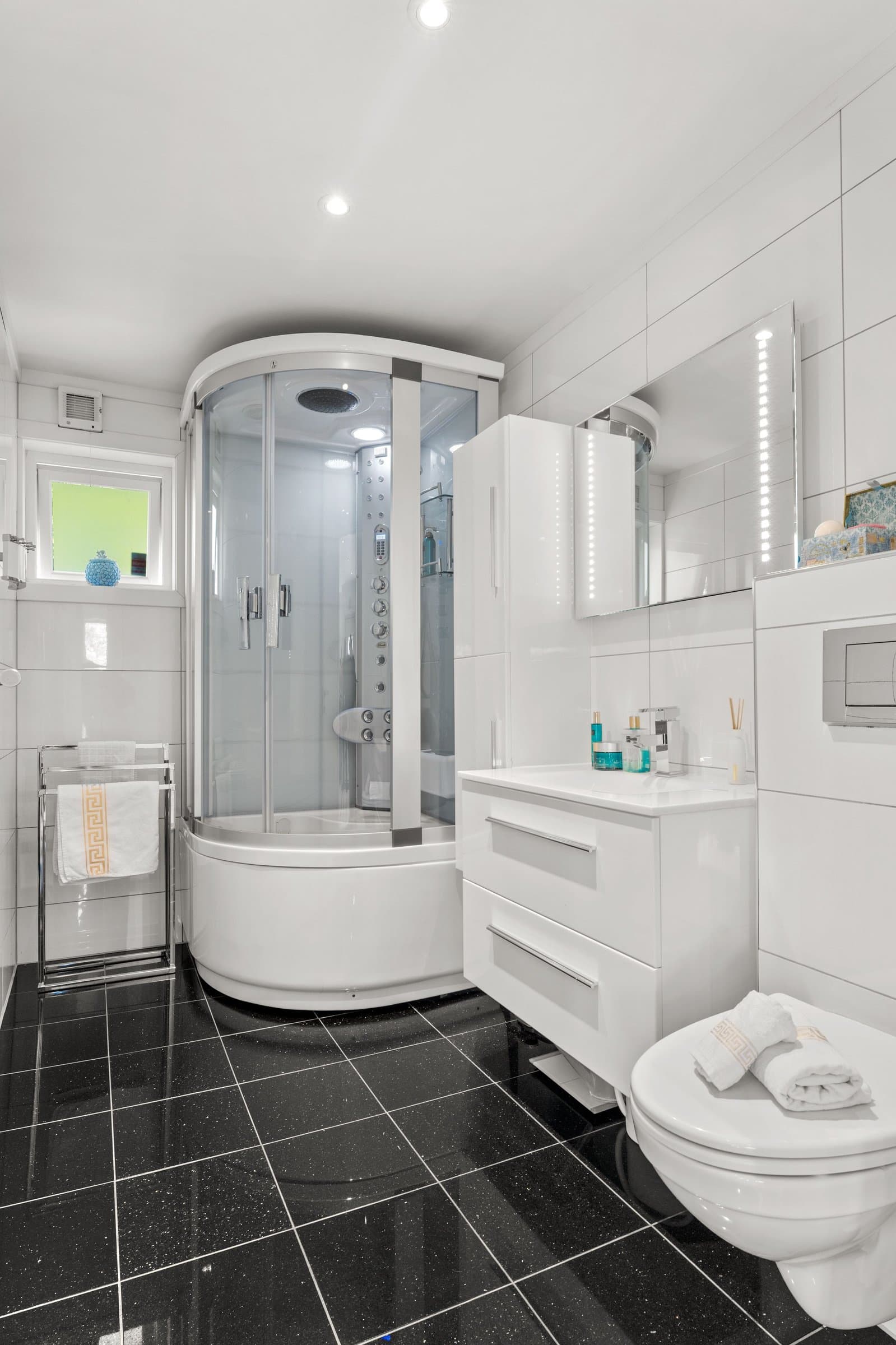 Velkommen til Kurlandsveien 40B - En flott og velholdt enebolig som går over 3 plan med tilbygg og utehus. Boligen har god standard og ligger på en solrik tomt på ca. 769 kvm, og det tilhører to stor adkomsterrasser og platting. Det tilhører også en stor garasje med mulighet for elbillader. Boligen har en trivelig beliggenhet i et etablert og barnevennlig nabolag på Kurland, med flotte turområder rett utenfor og kort vei til alt av skole, barnehage, butikk og kollektivtransport. Kort fortalt: - Stue med gode vindusflater og stemningsfull uteplasser - Stilrent kjøkken med steinplater og spisebord - To flislagte bad, badstue og vaskerom - MasterBedrom m. eget bad og badekar - Meget flott Lyshus med glasssdører og uteplass - Solrik tomt og stor hage - Garasje og biloppstillingsplasser - Tillbygg med nytt kjøkken fra Blum - Mulighet for innredning av stor utleiedel - Gulvvarme i store deler av huset - Sentral støvsuger - Nærhet til nesten alt!
