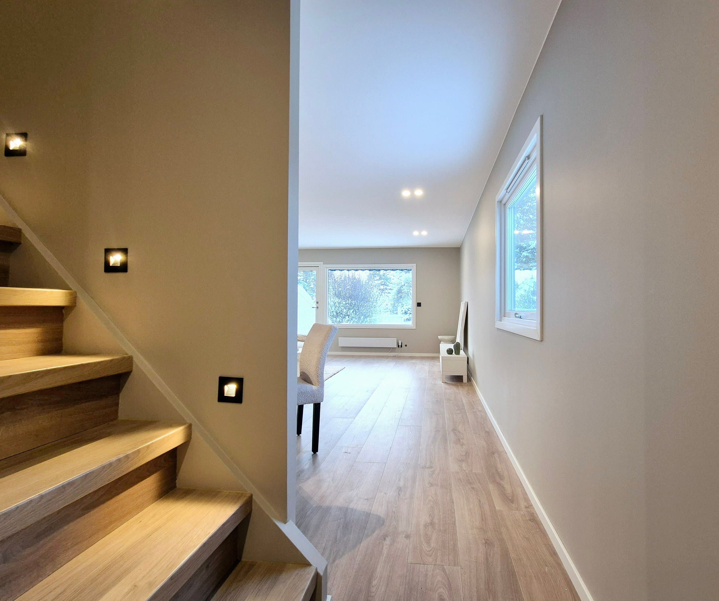 Et innholdsrikt og moderne enderekkehus renovert/påkostet i 2025/2026. Høydepunkter: • Lys og moderne stue med et tidsriktig preg og god plass til både spisegruppe og sofagruppe • Separat og pent kjøkken med integrerte hvitevarer (2025) • Flislagte bad med varmekabler og gjennomtenkte designelementer (2025) • Tre soverom med god størrelse og praktisk planløsning • Flislagt og romslig entré med slitesterke overflater • Separat vaskerom i kjeller (2025) • Hyggelig kjellerstue • Bod i kjeller • Oppgradert elektrisk anlegg og sikringsskap • Ny varmtvannsbereder • Mulighet med å ha peis • Solrik hage med flere uteplasser • Lekeplass i hagen • Mye lys og to balkonger med gunstig beliggenhet mot vest, sør og nord • Terrasse- og balkongareal på 40 m² • Garasje i eget bygg samt minimum to parkeringsplasser: • én rett foran boligen med mulighet for installasjon av elbillader • én foran garasjen Dette er et gjennomført hjem med moderne standard, gode og praktiske løsninger – perfekt for alle generasjoner som ønsker en bolig i rolige og attraktive omgivelser.