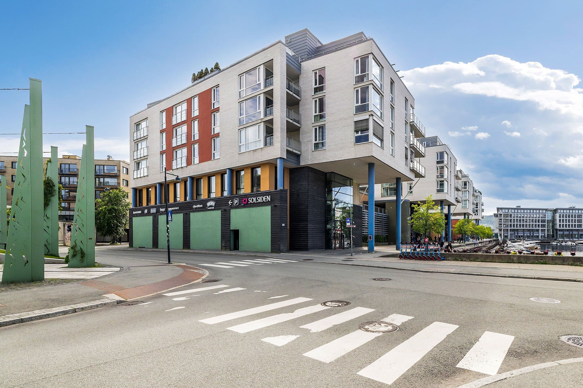 Leiligheten har en attraktiv beliggenhet på populære Solsiden – Trondheims kanskje mest urbane og levende bydel. Området byr på en perfekt kombinasjon av spennende byliv og rekreasjonsmuligheter, med kai og småbåthavn rett utenfor inngangspartiet, samt kort vei til både parker, badestrender og turstier. Området har god offentlig kommunikasjon, med bussforbindelser til viktige studie- og arbeidssteder som NTNU, BI, St. Olavs hospital, Sintef og Studentersamfundet. I tillegg er det kort vei til Lade og byens rekreasjonsområder. I umiddelbar nærhet finner du alt du trenger i hverdagen: Portalen senter med bl.a. 3T og stor Rema 1000 (åpent alle dager), samt kommunal barnehage bare 250 meter unna. Solsiden kjøpesenter byr på et bredt utvalg av butikker, apotek, vinmonopol og dagligvare, i tillegg til mange hyggelige restauranter, caféer og utesteder med liv og stemning både dag og kveld. Flybussen stopper på Solsiden, og både Trondheim sentralstasjon, Lademoen og bussforbindelser ligger bare en kort spasertur unna. Solsiden er ideelt for deg som ønsker nærhet til både byens puls samt å være tilbaketrukket.