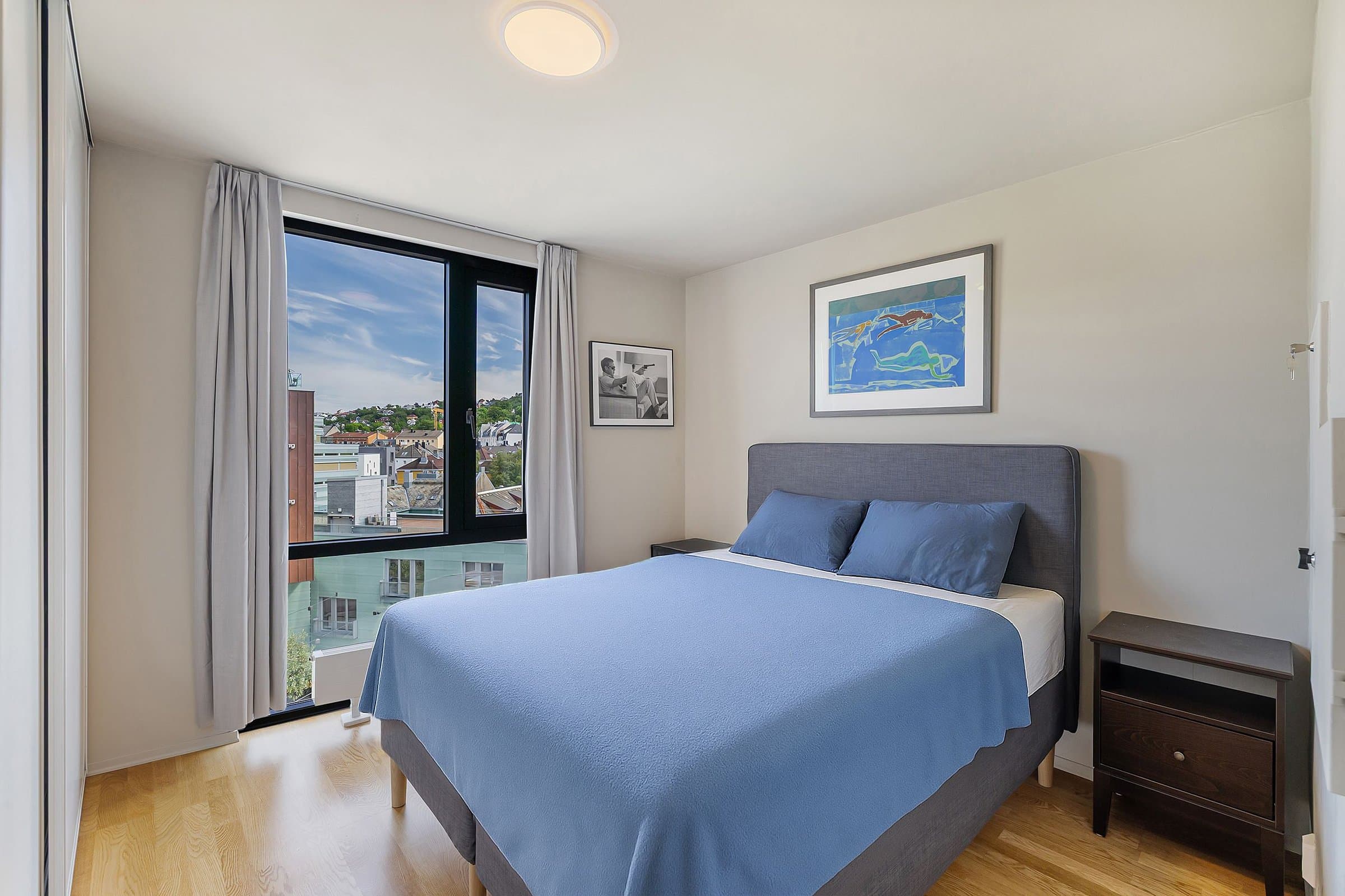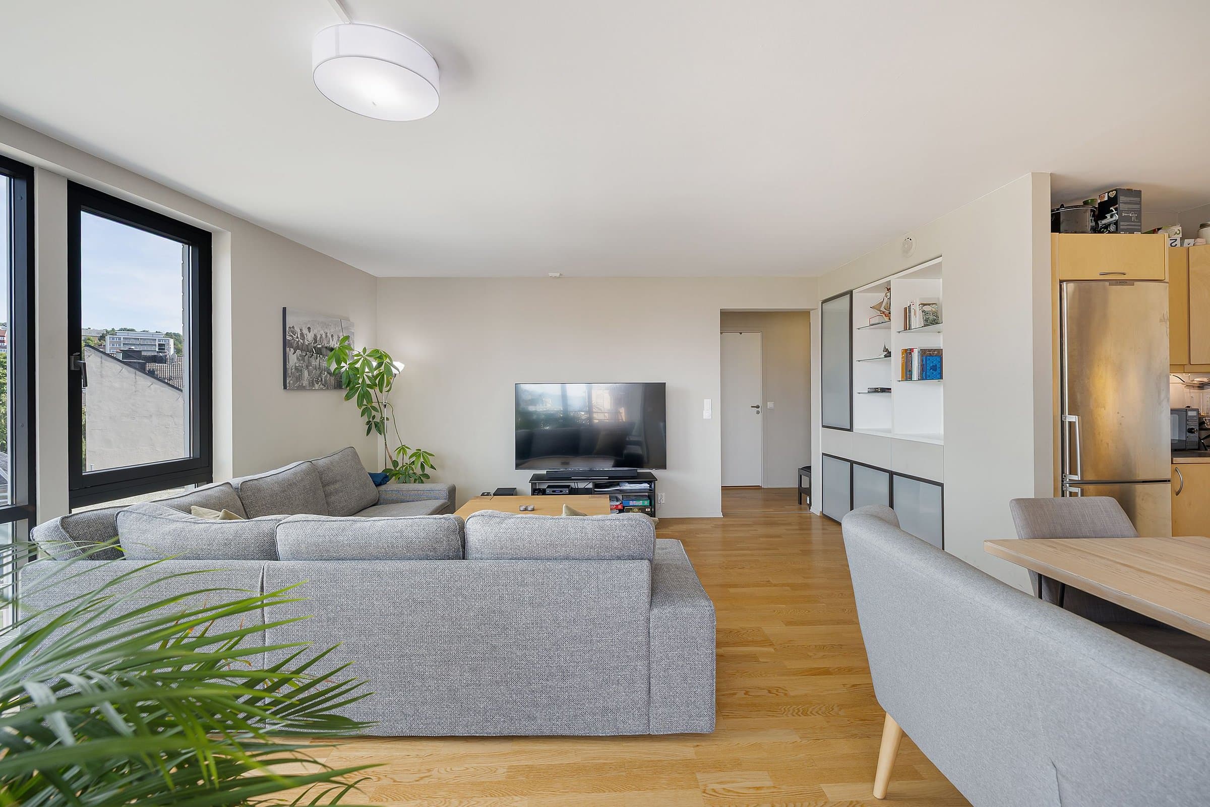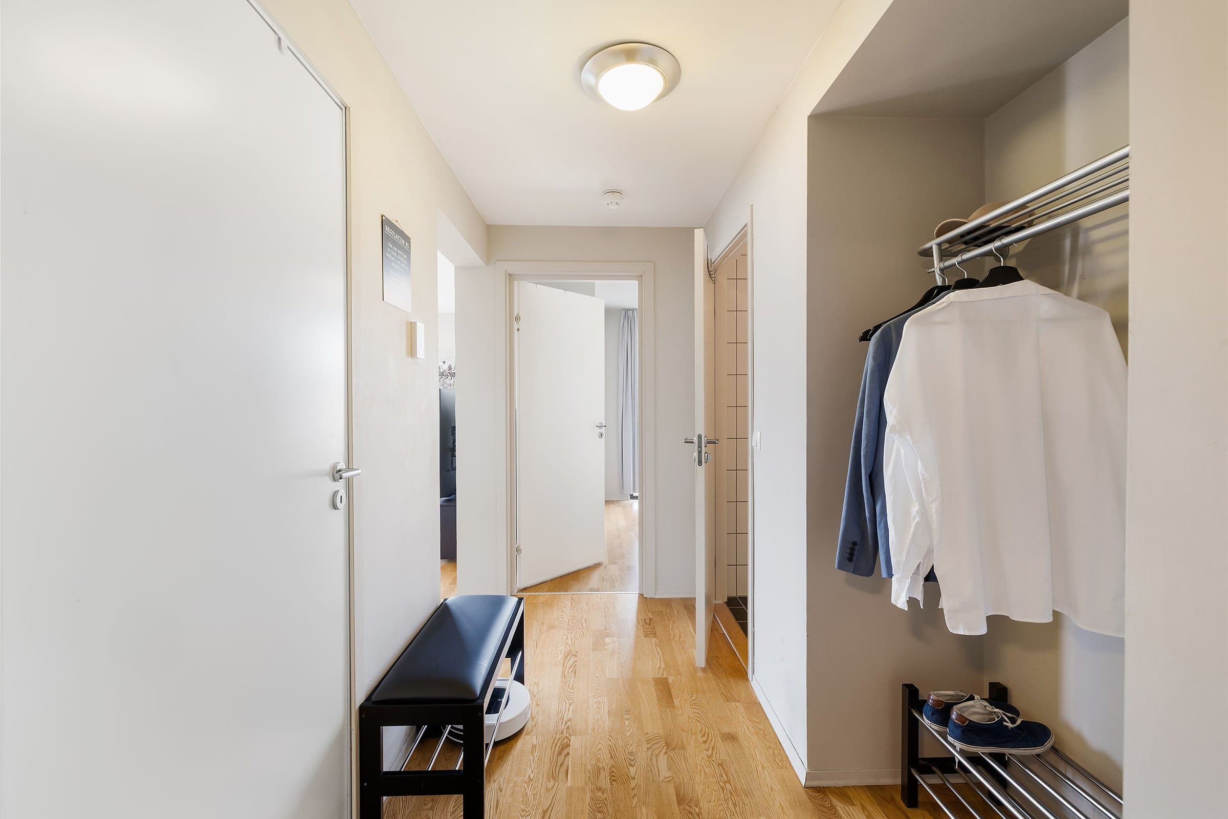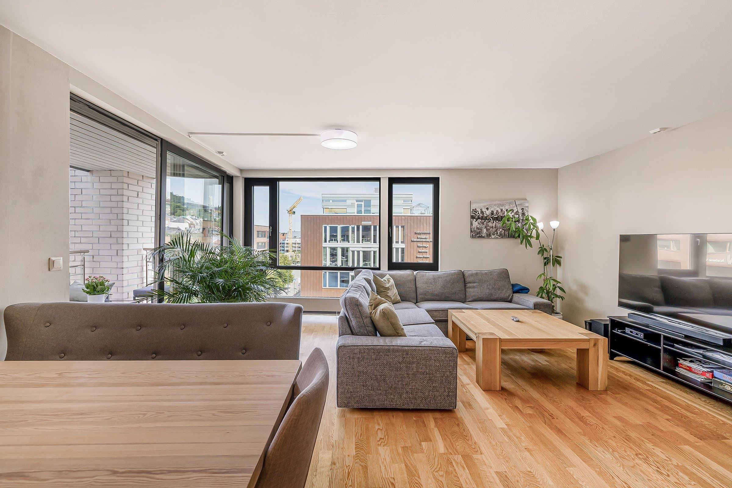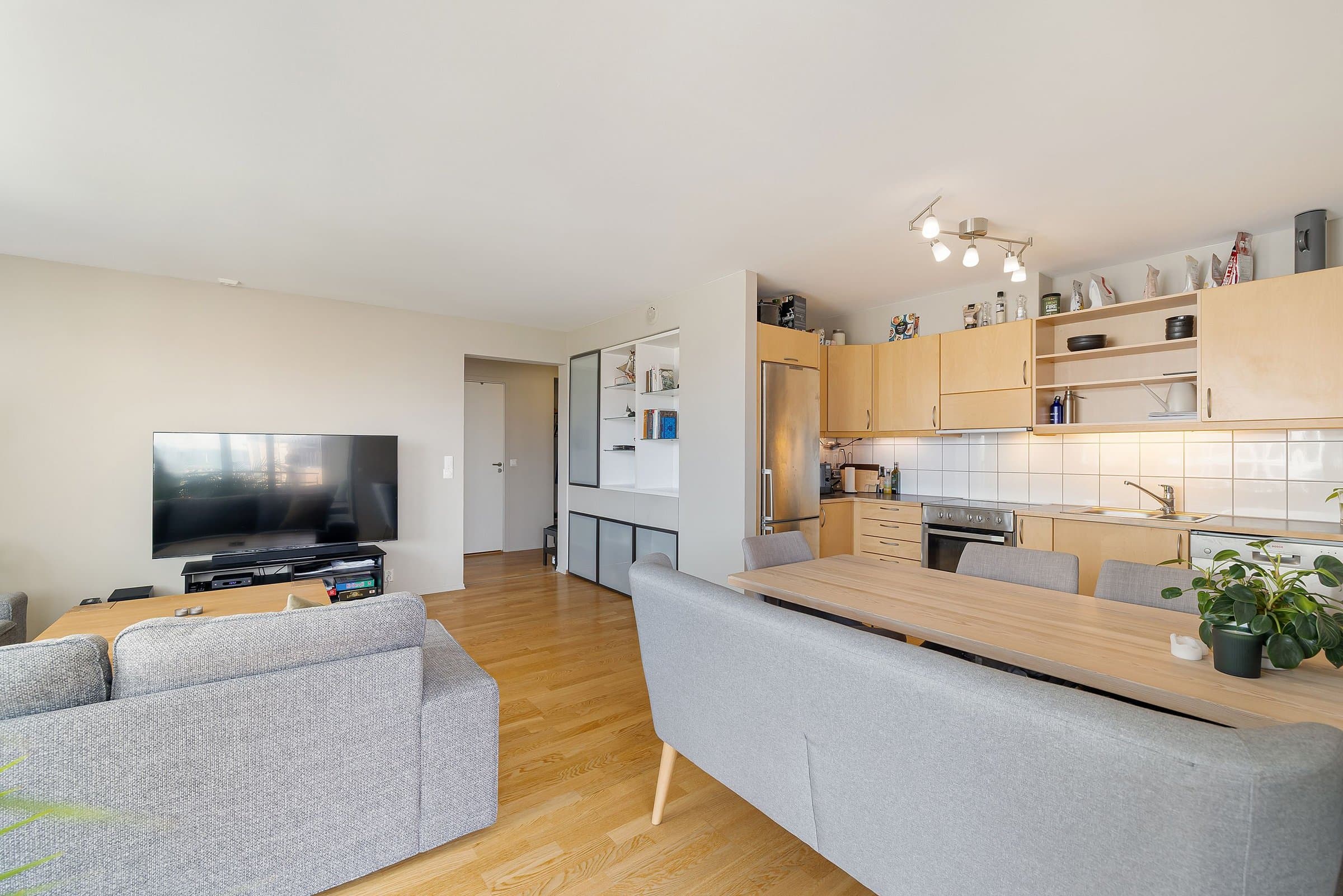 Fin og moderne leilighet sentralt på Solsiden – med kort vei til både tog, buss, restauranter og butikker. Leiligheten ligger i byggets 6. etasje og har en attraktiv hjørnebeliggenhet med lite innsyn og god utsikt. Her får du en smart planløsning med god størrelse på alle rom, samt en flott balkong med gode muligheter for ulik innredning og bruk. I byggets 4. etasje finner du en stor, parkmessig takhage eksklusivt for beboerne – med plenarealer, benker og stier som innbyr til både avslapning og sosiale sammenkomster. Det er heis i bygget, egen bod i kjelleren, og mulighet for parkeringsplass i Solsiden P-hus.