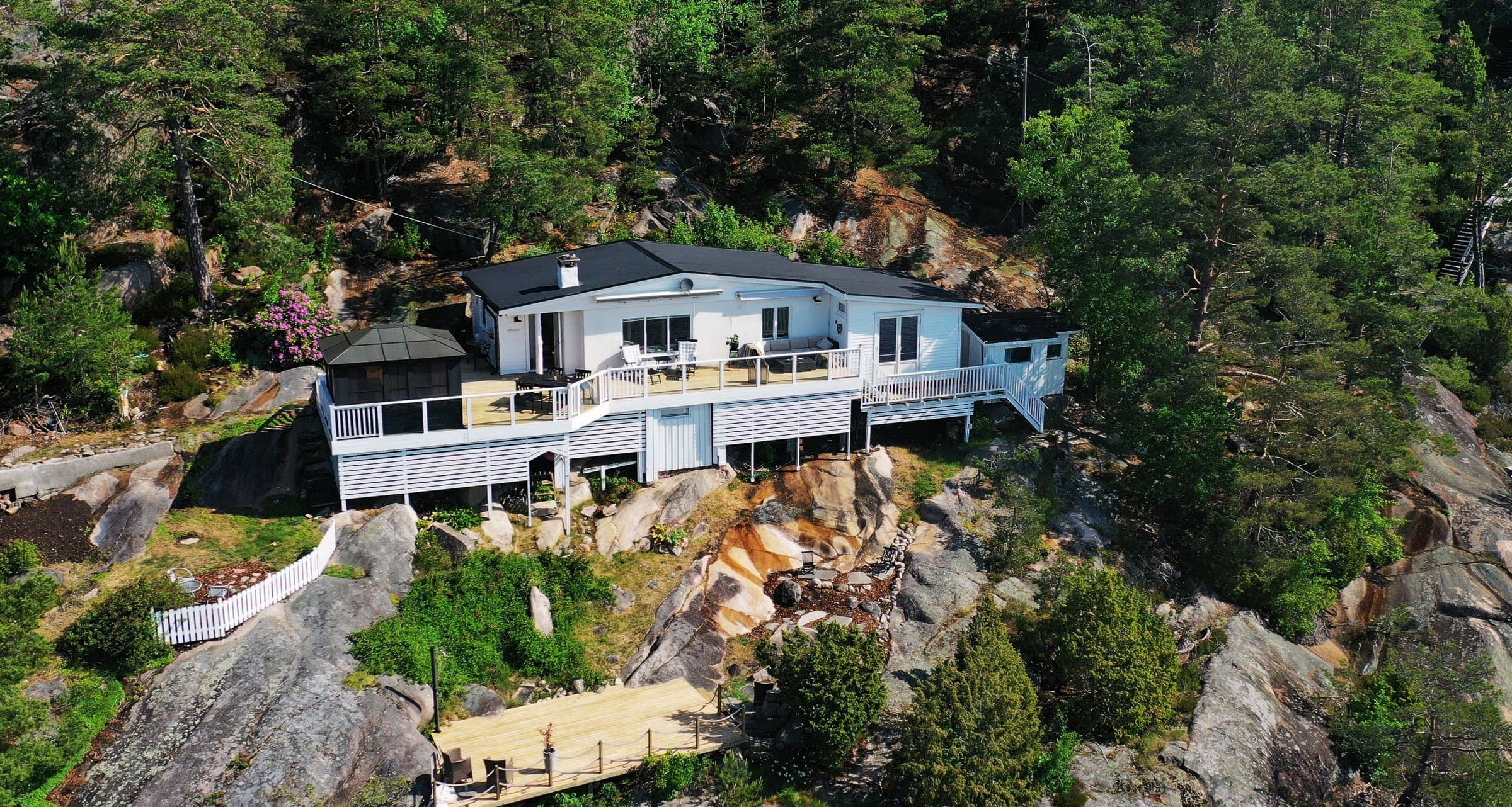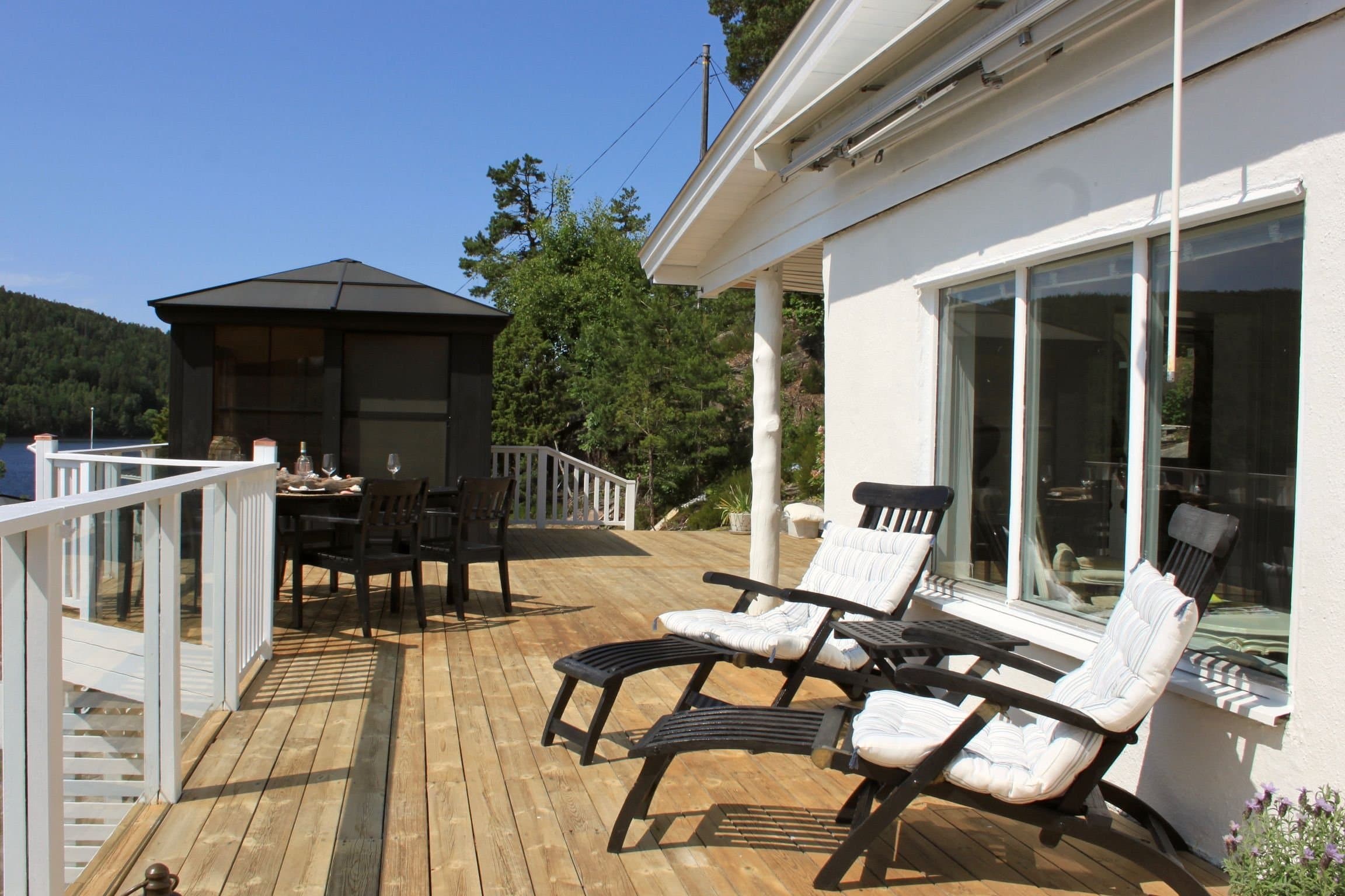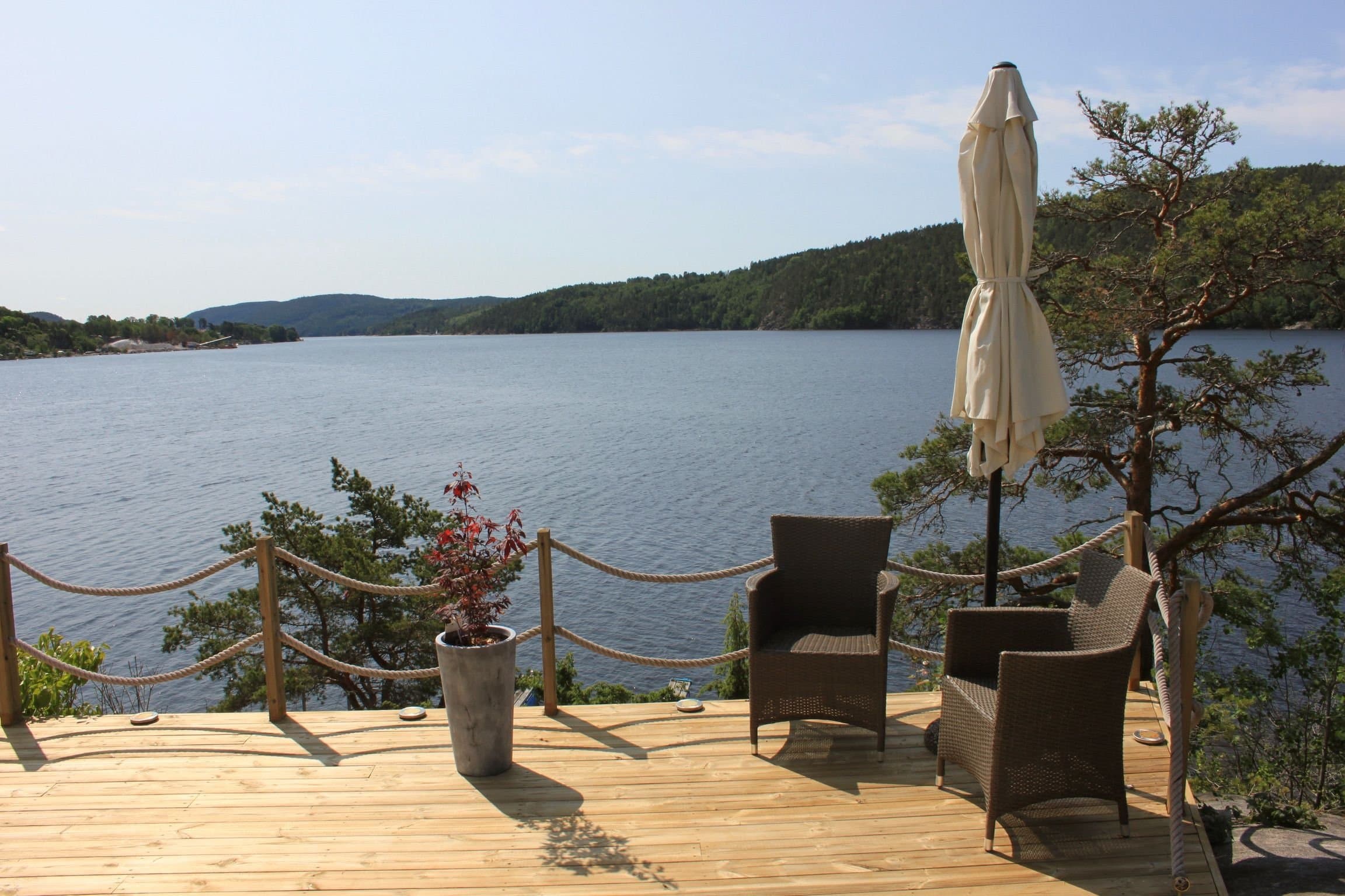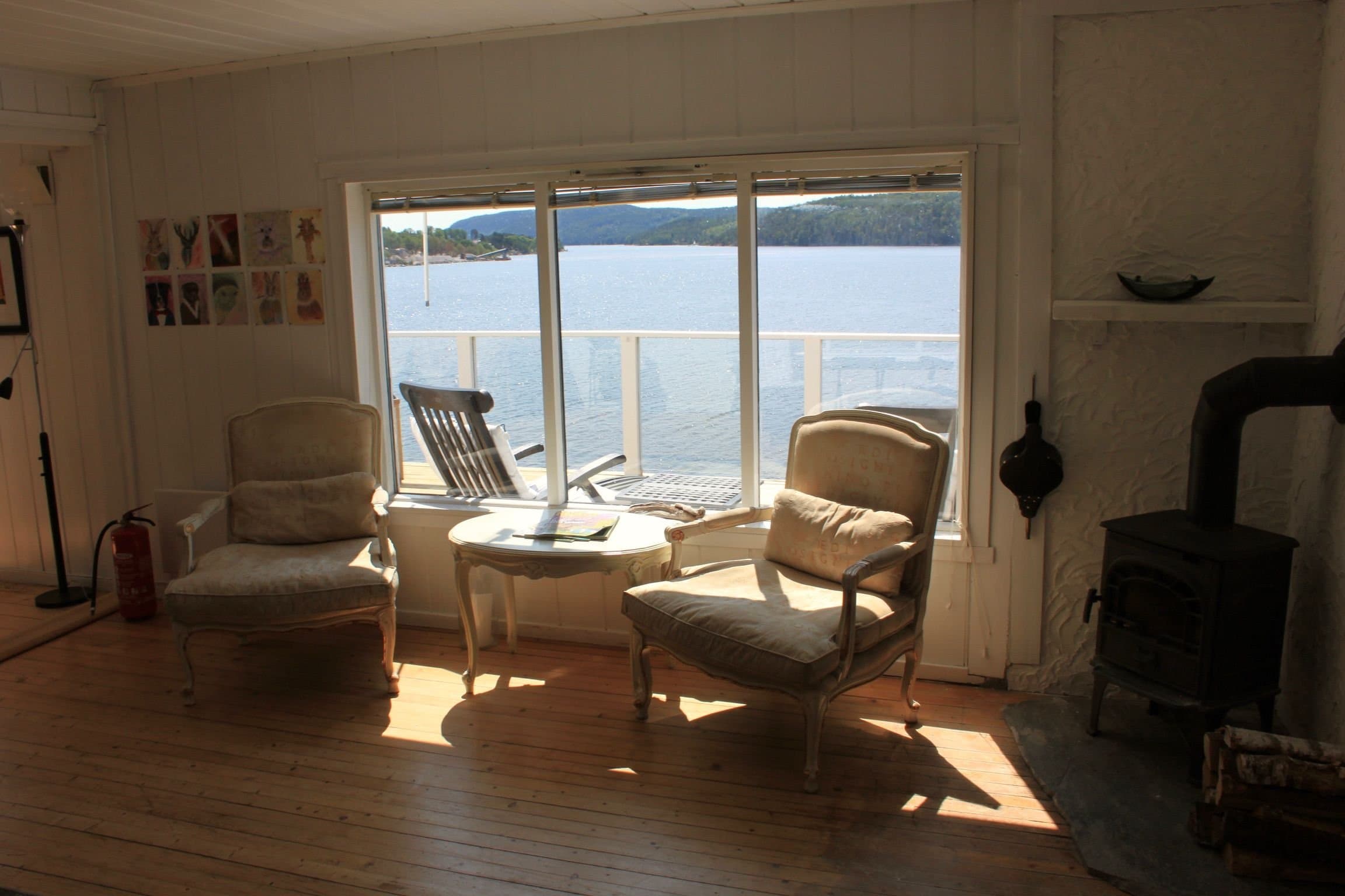 Innholdsrik og solrik hytte, ved strand og privat brygge. Idyllisk og skjermet beliggenhet ved fjorden og turterreng.