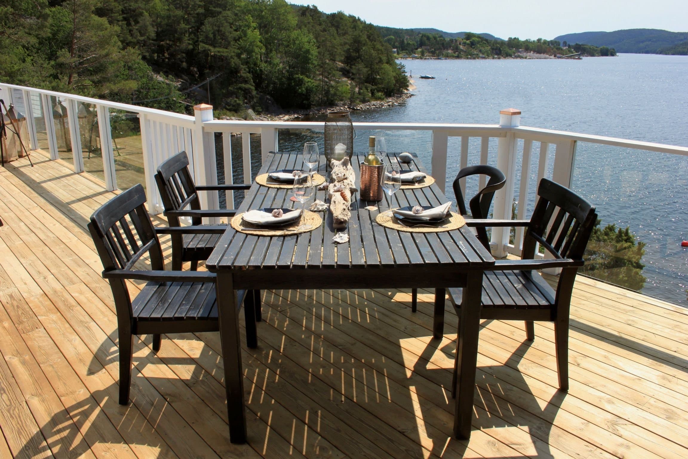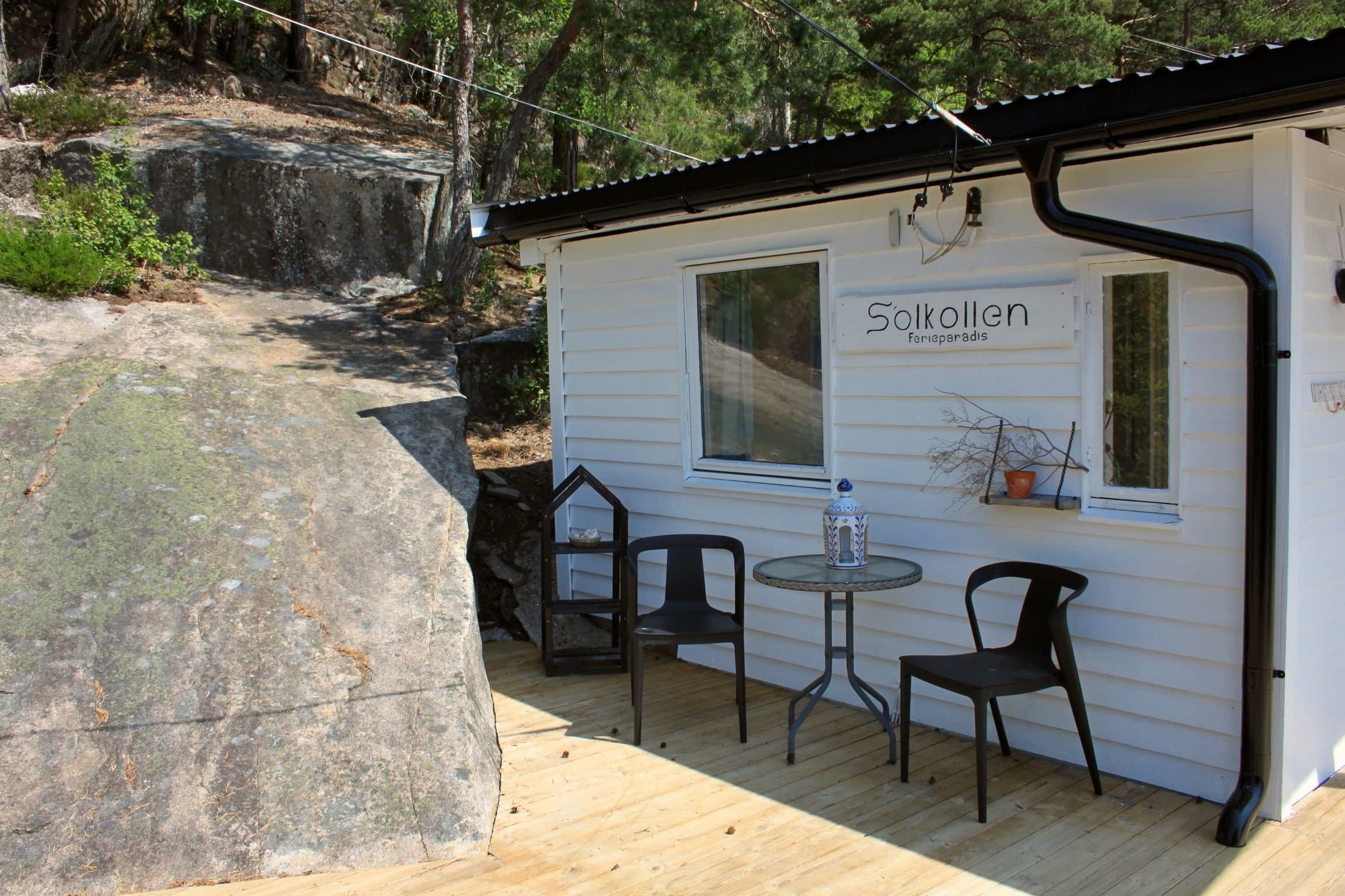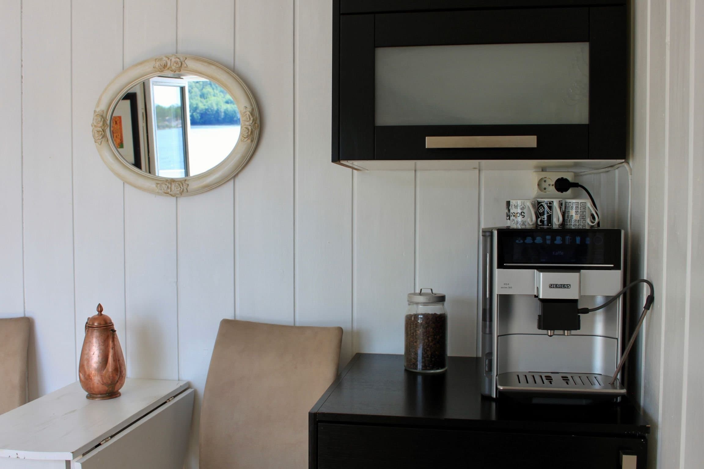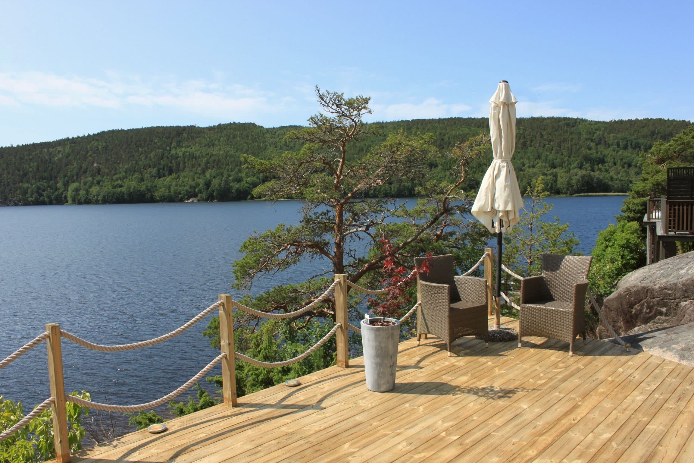 Innholdsrik og solrik hytte, ved strand og privat brygge. Idyllisk og skjermet beliggenhet ved fjorden og turterreng.