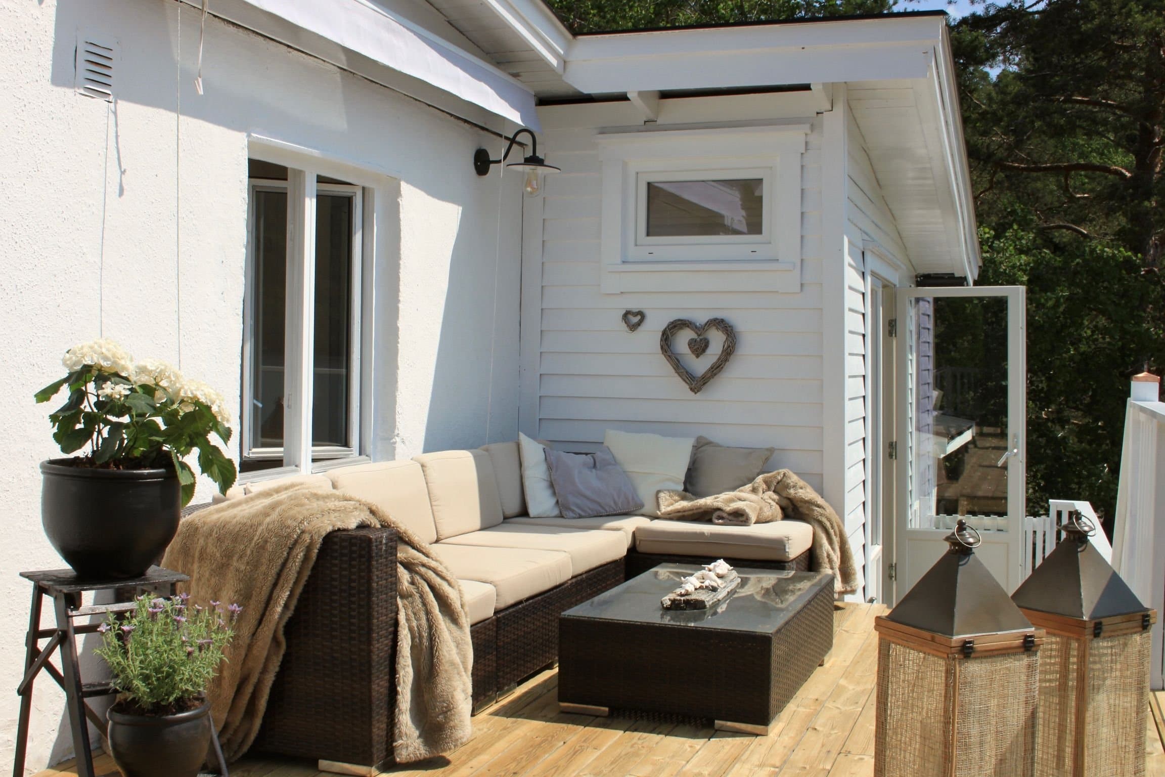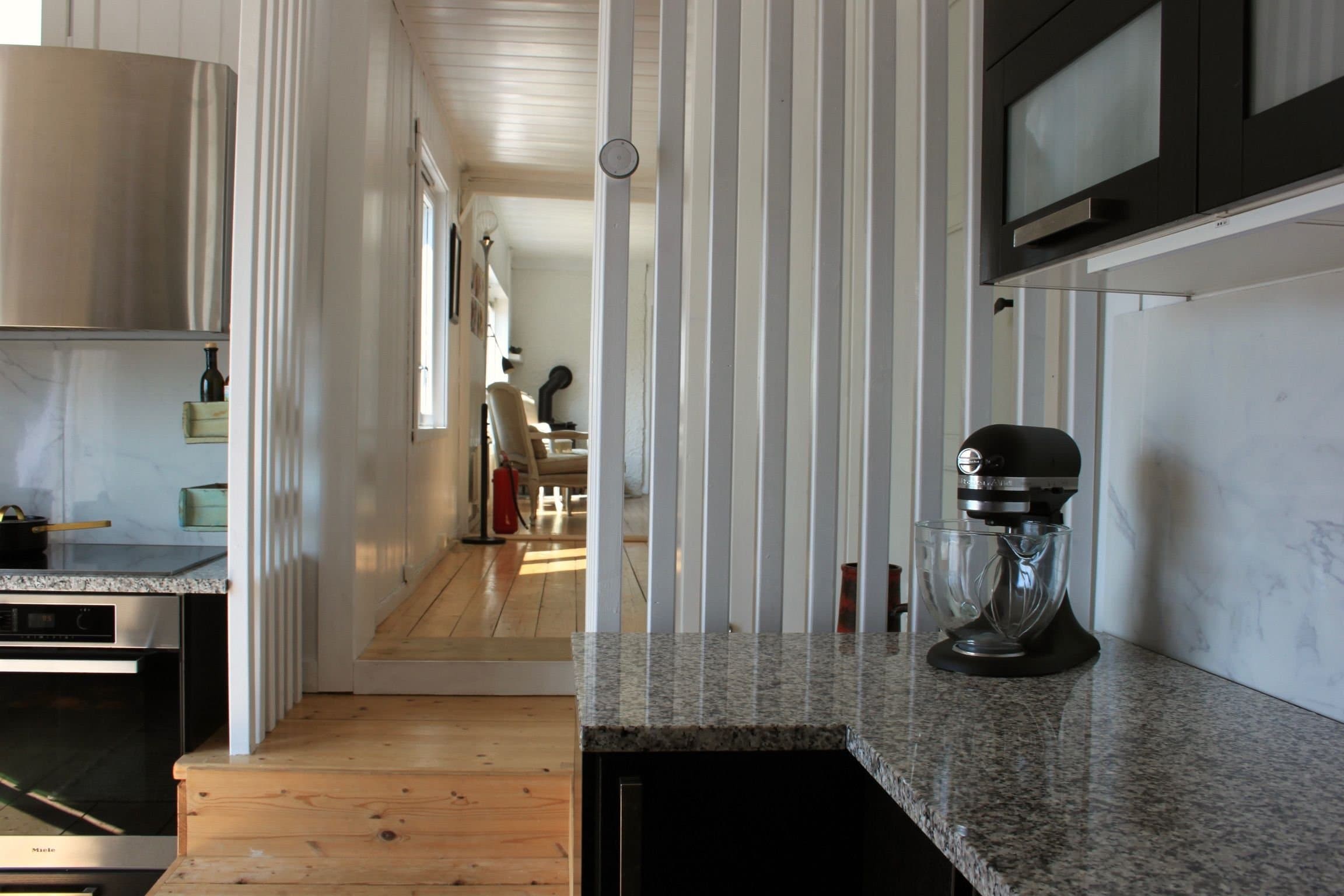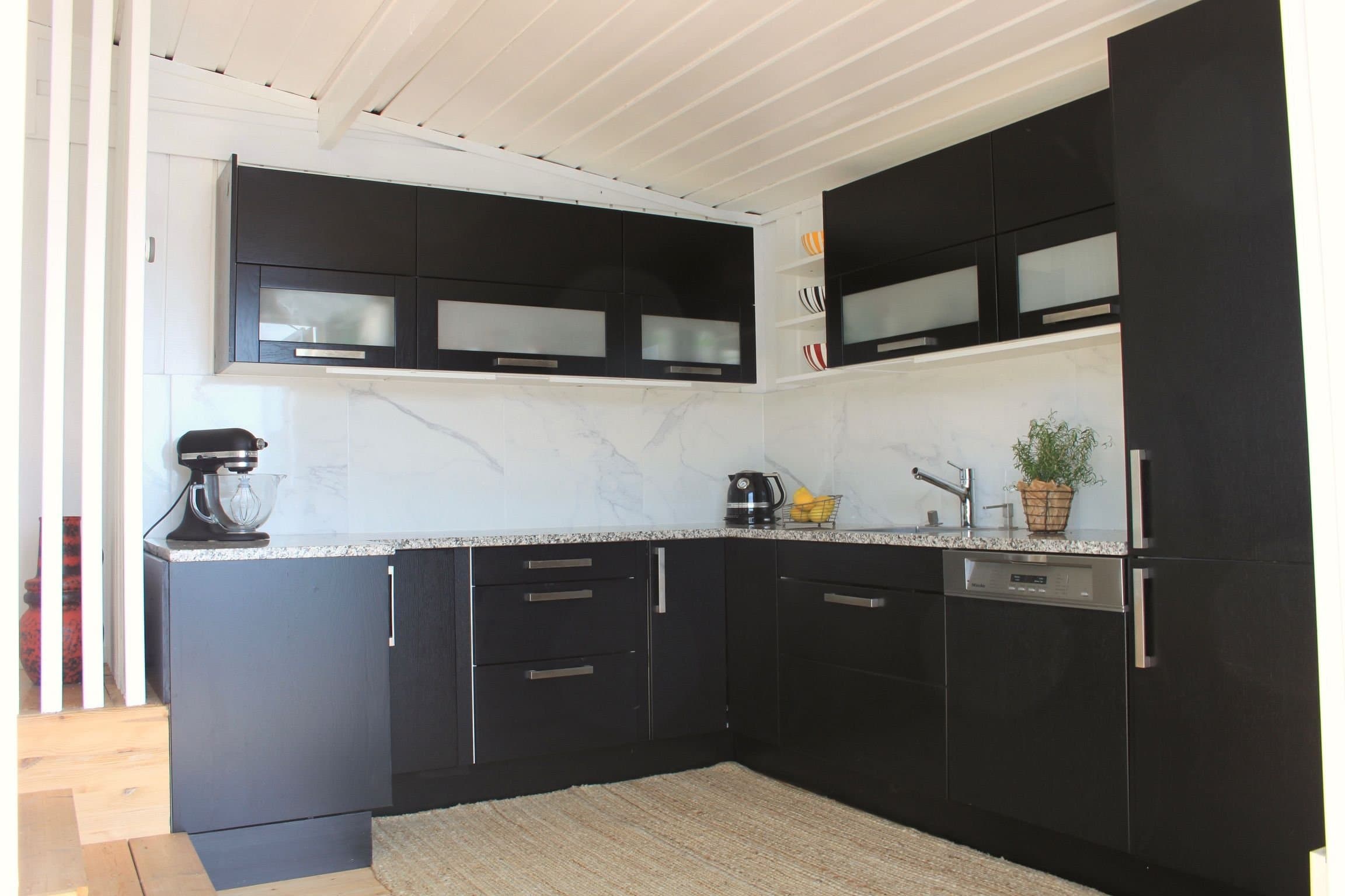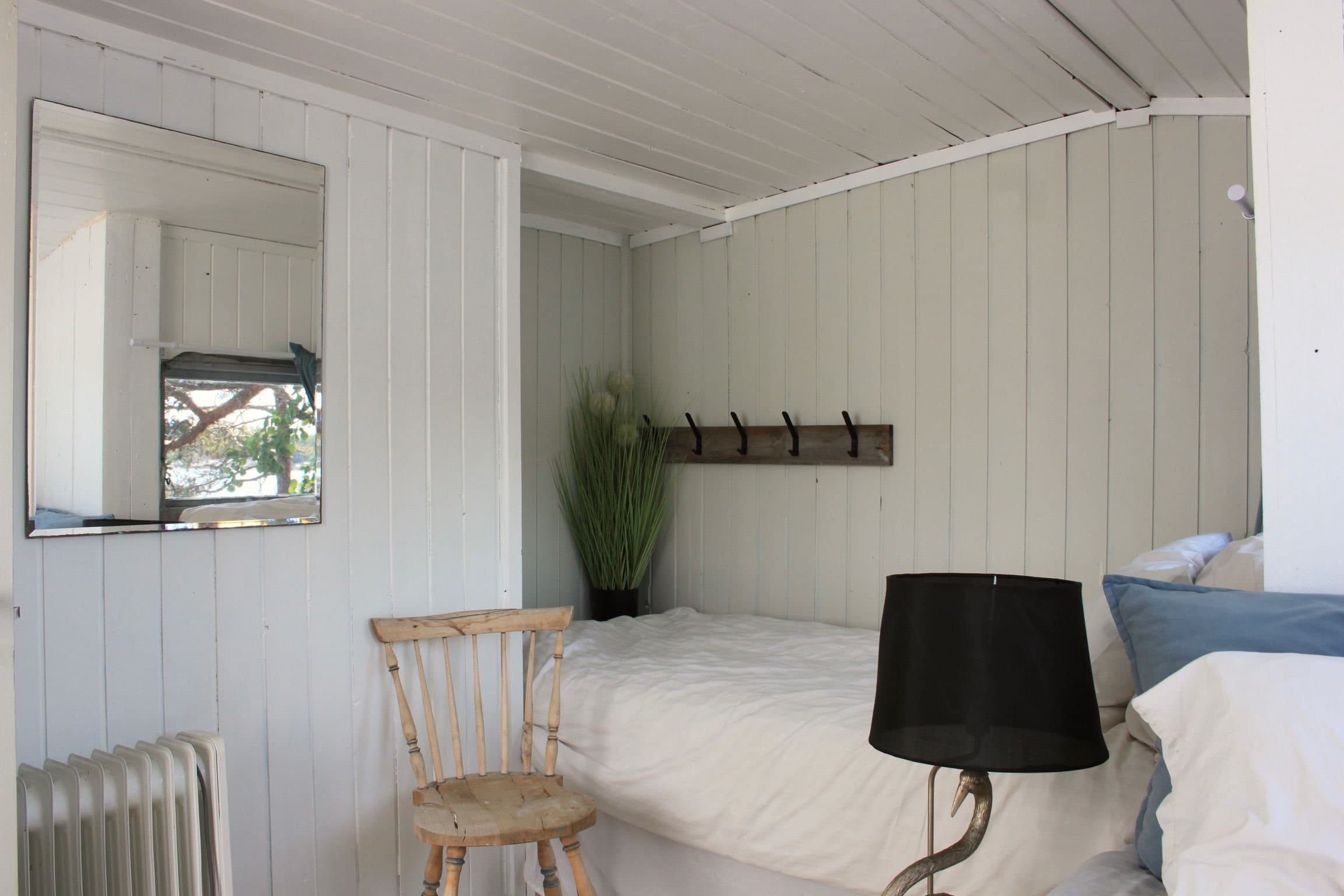 Innholdsrik og solrik hytte, ved strand og privat brygge. Idyllisk og skjermet beliggenhet ved fjorden og turterreng.