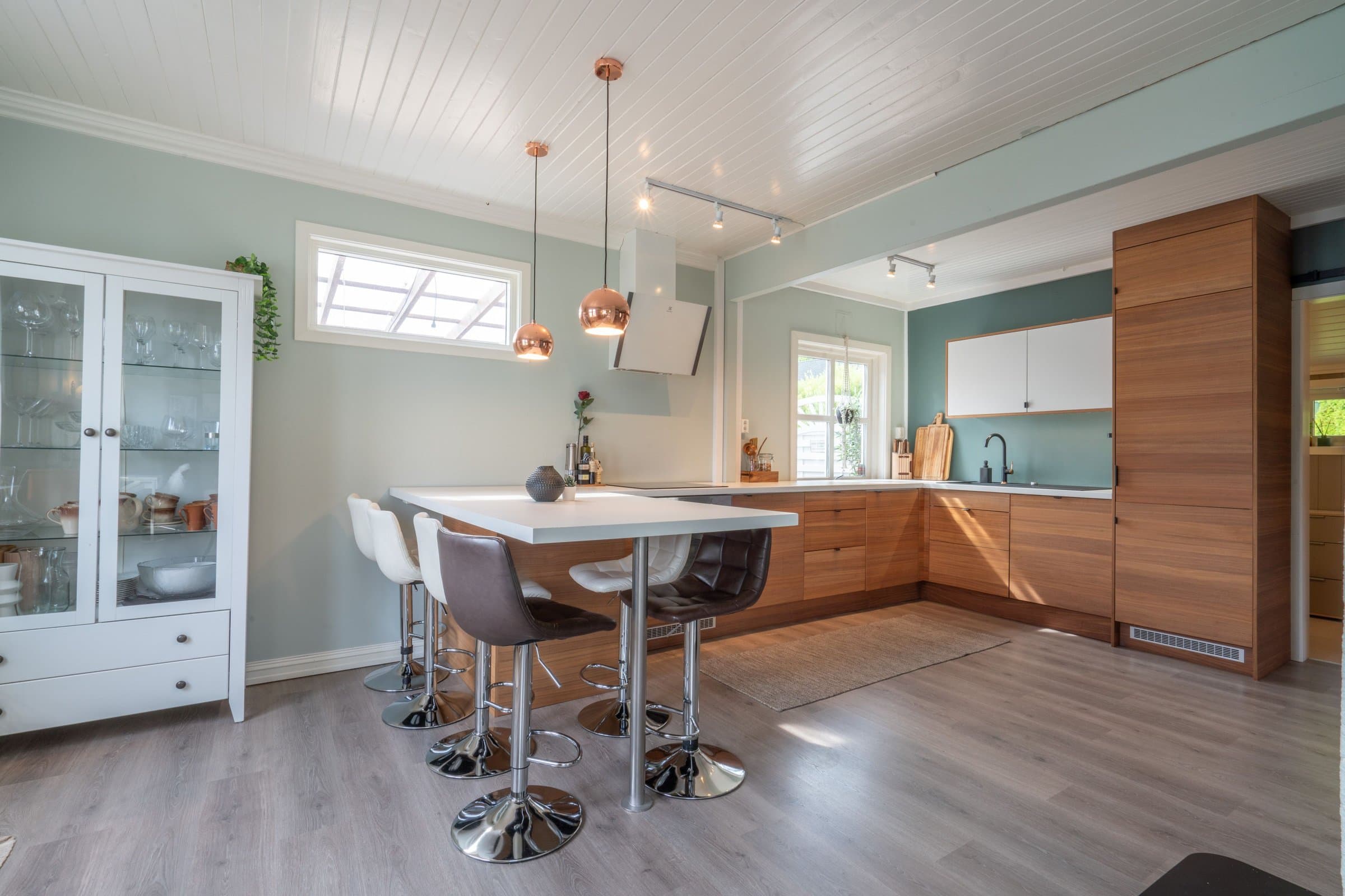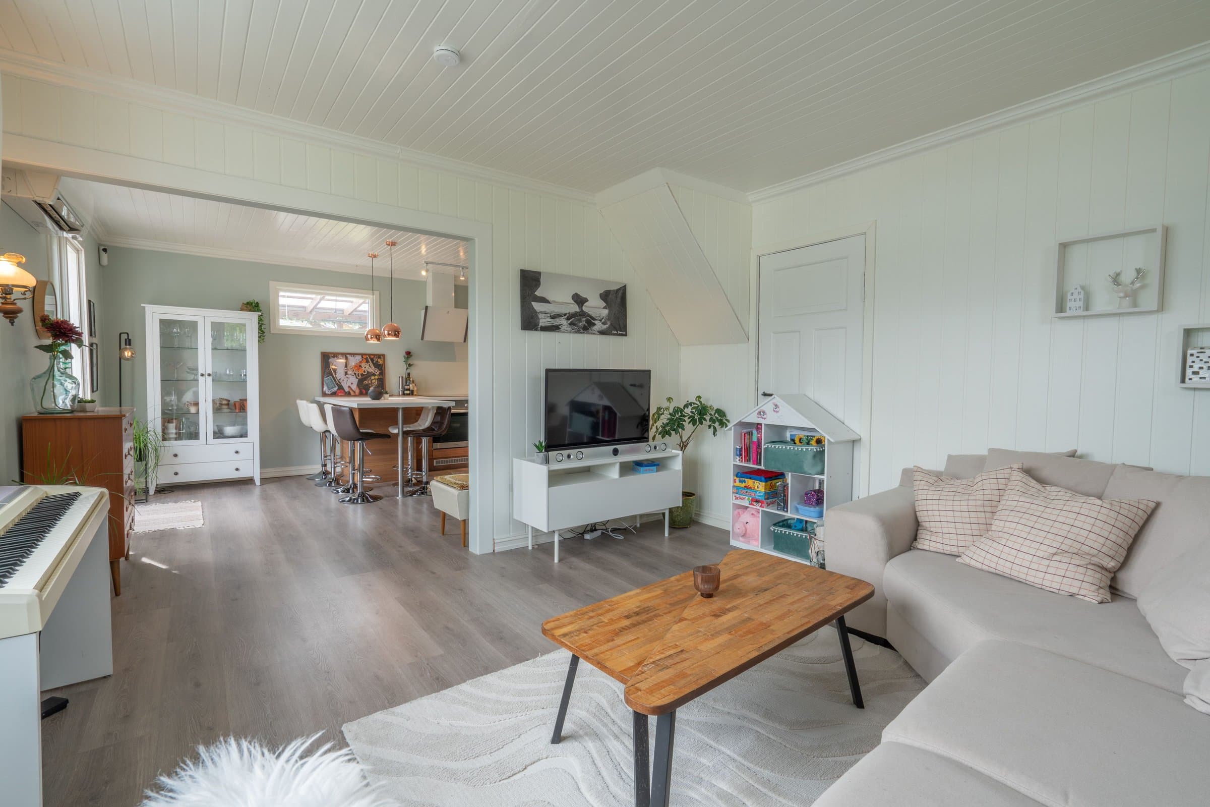 Dette er ikke bare en bolig. Bygget i 1936, var dette farmors barndomshjem, og i mange tiår fungerte det som familiens sommerhus – med utallige bærbusker i hagen og tærne i gresset. For seks år siden fikk huset nytt liv. Jeg tok over, og med kjærlighet og tålmodighet har jeg renovert det med respekt for både sjel og struktur. Nå står det klart for en ny eier som ser verdien i de små ting – som knirkende tregulv, skråtak med historier og en utsikt som tar pusten fra deg. Velkommen til et lite hus med stor personlighet! Huset er på ca. 53m² og består av: -Entré med god plass til yttertøy -Koselig og lys stue med vinduer mot fjorden -Kjøkken med både sjarm og moderne funksjon -Oppgradert bad med dusj og god lagringsplass -To romslige soverom i overetasjen -Skråtakene bak soverommene er utnyttet som boder med god lagringsplass Der er også to grovkjellere, begge innredet med hyllesystemer for maksimal plassutnyttelse. Her har du plass til både julepynten, syklene og hageredskapene.